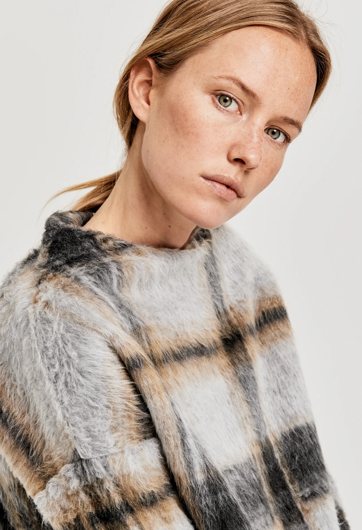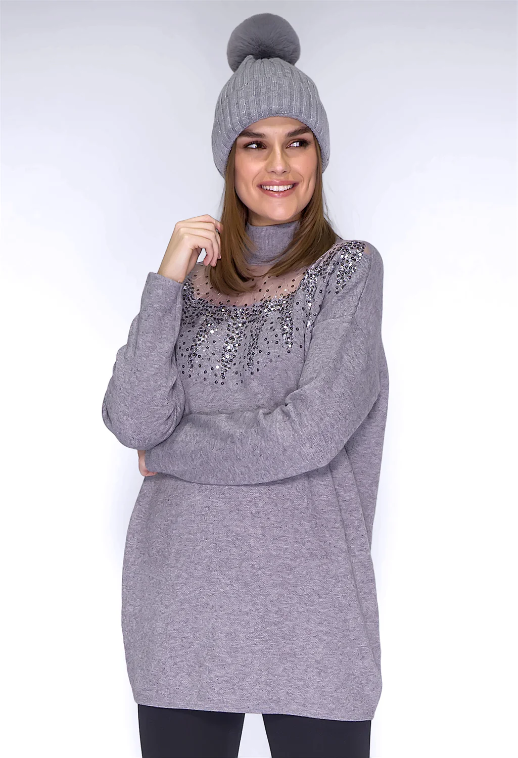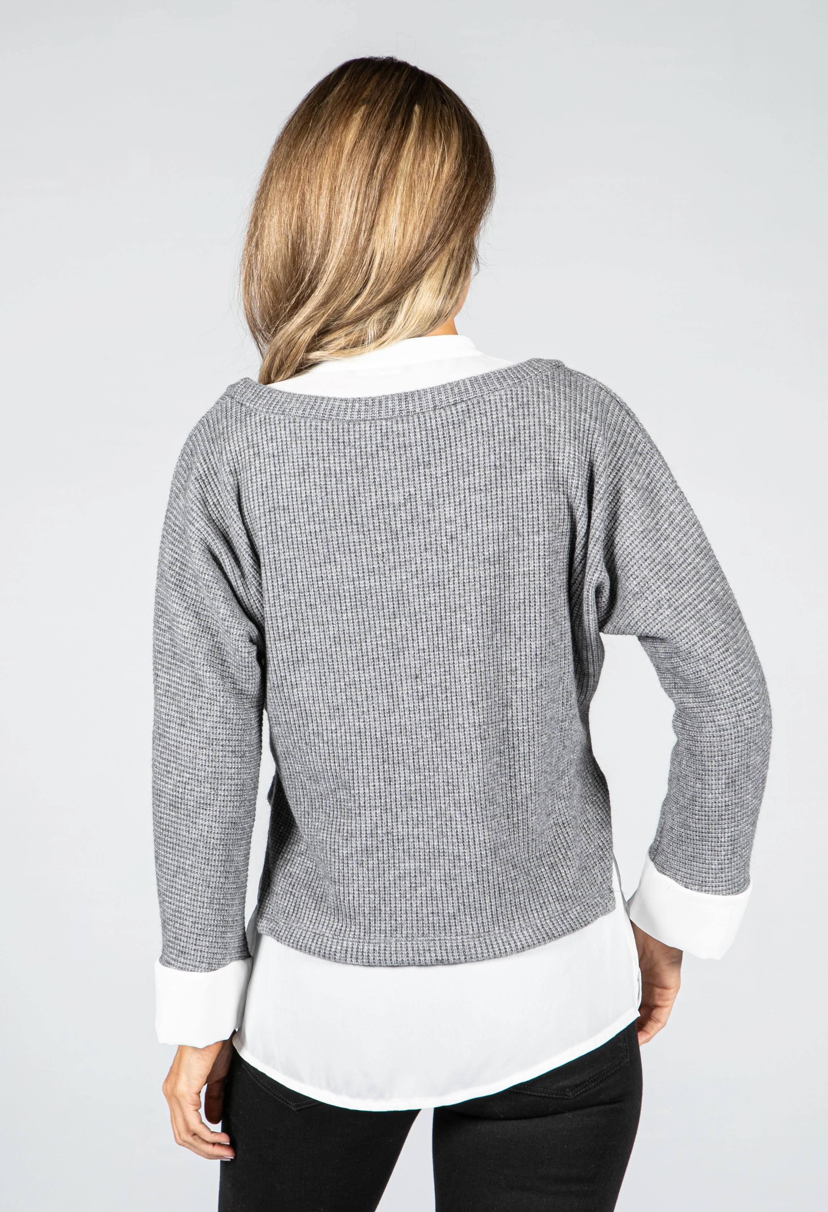 Grey Knit Jumper With Attached Off-White Under Shirt
