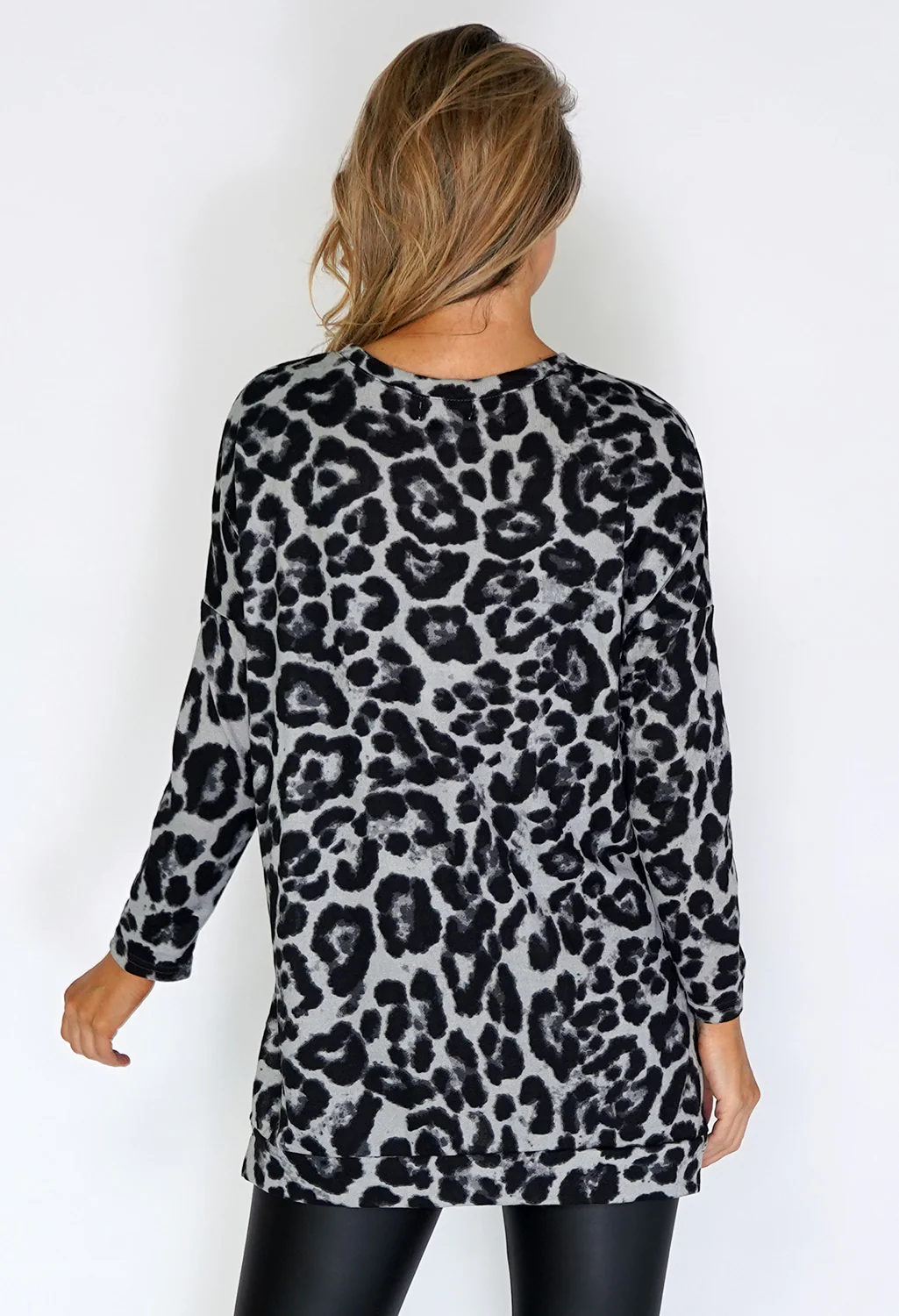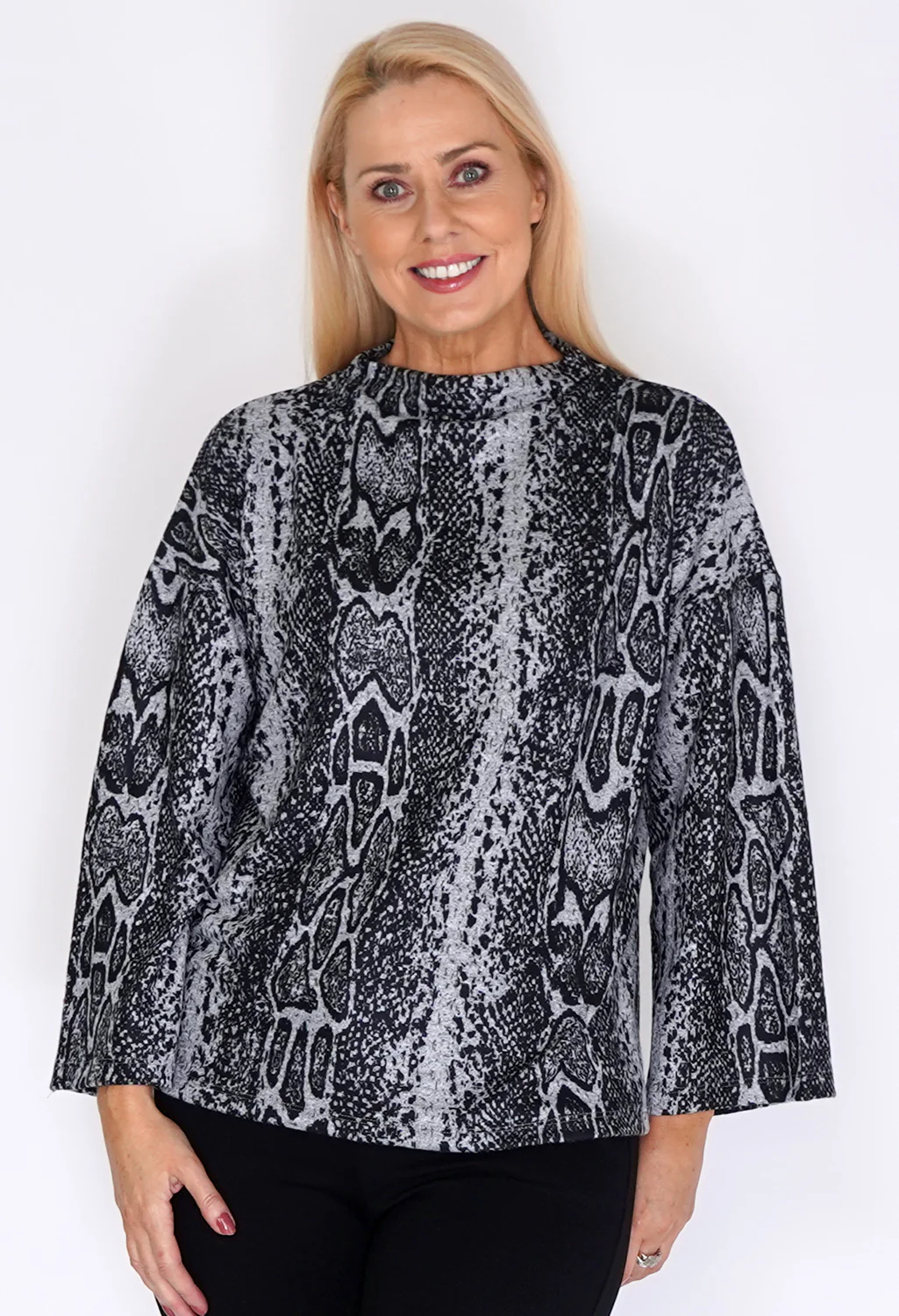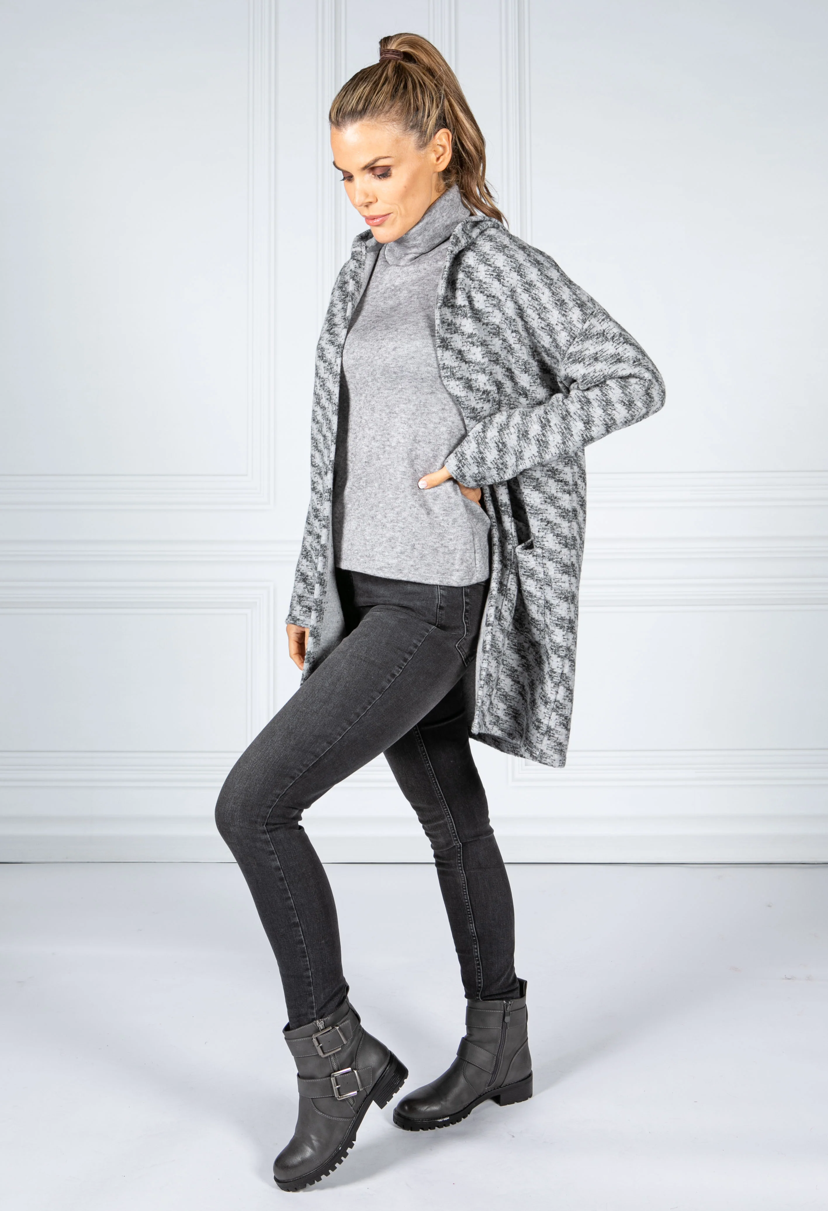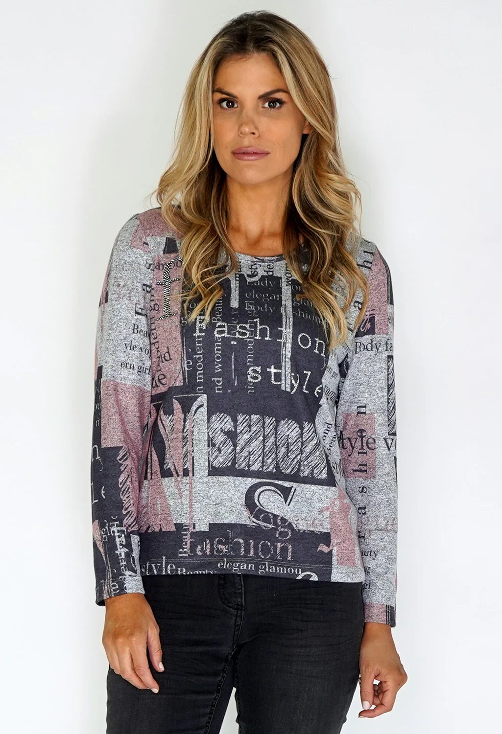 Grey Knit Jumper With Attached Off-White Under Shirt
