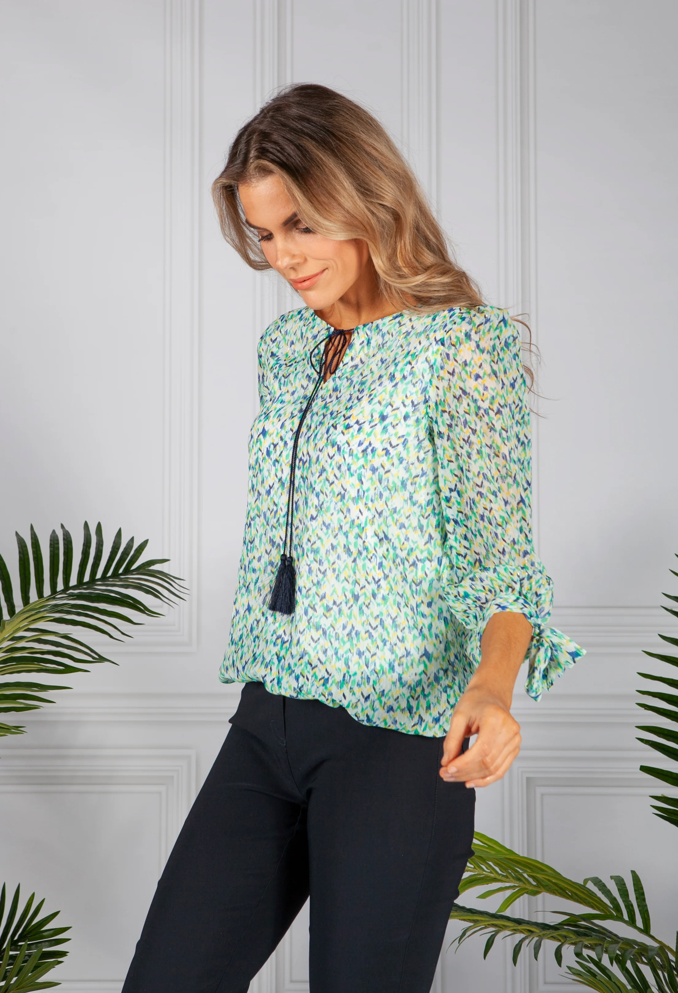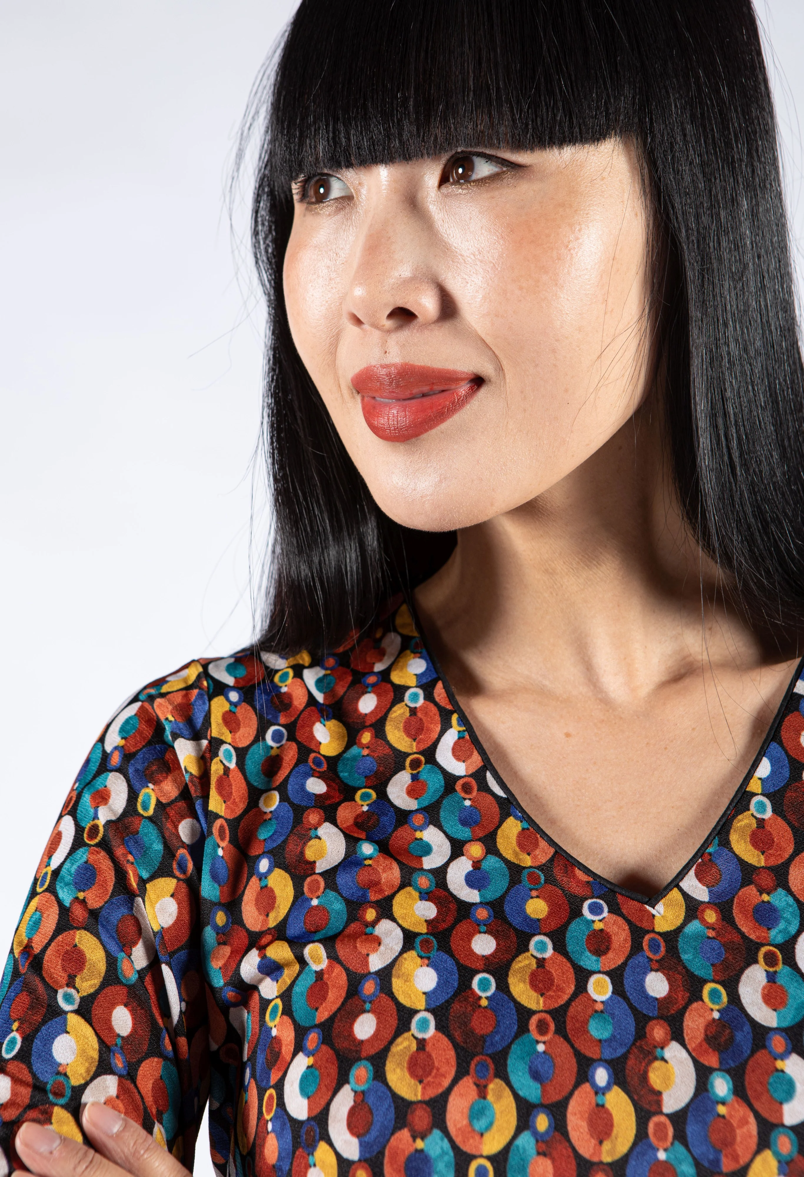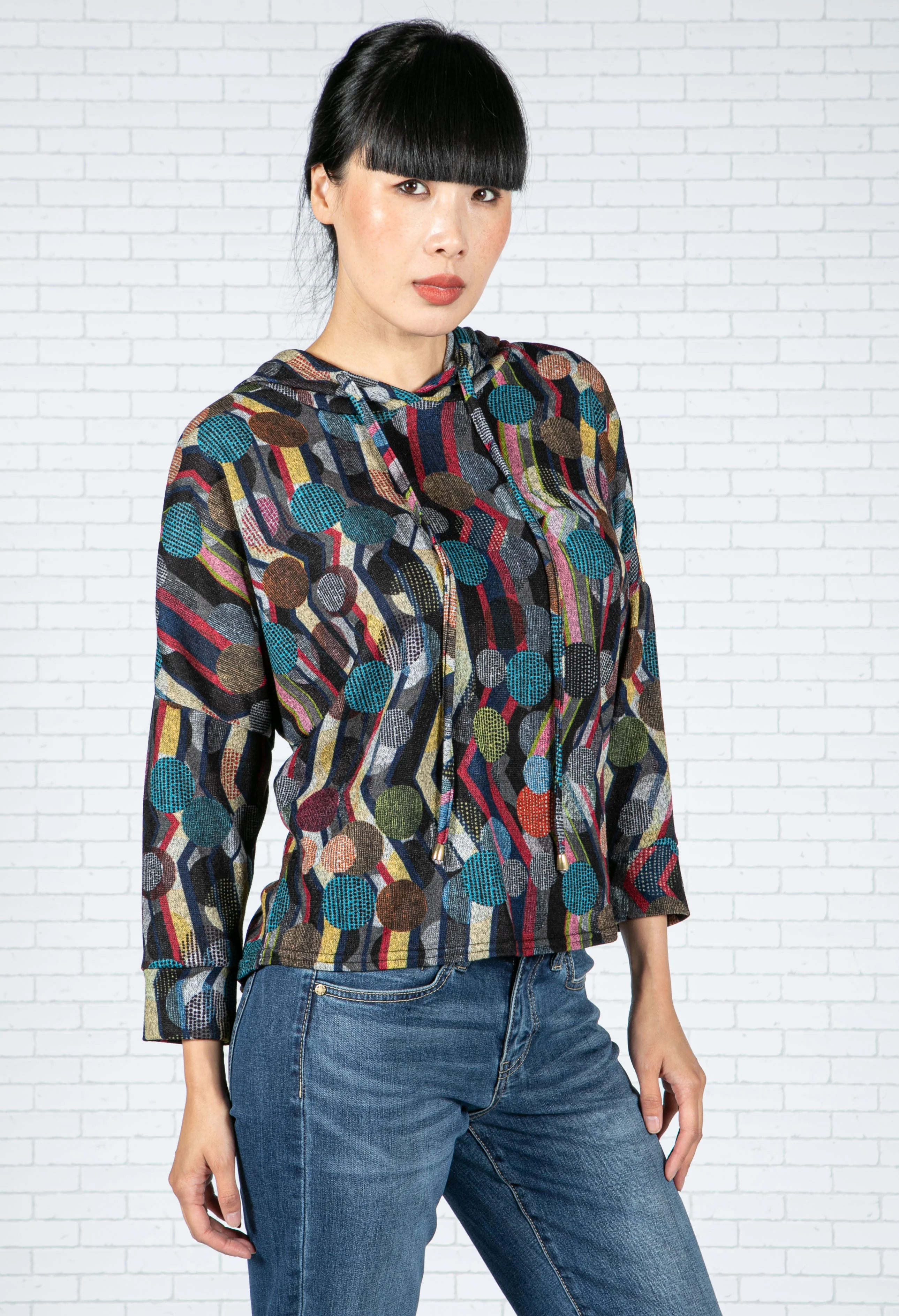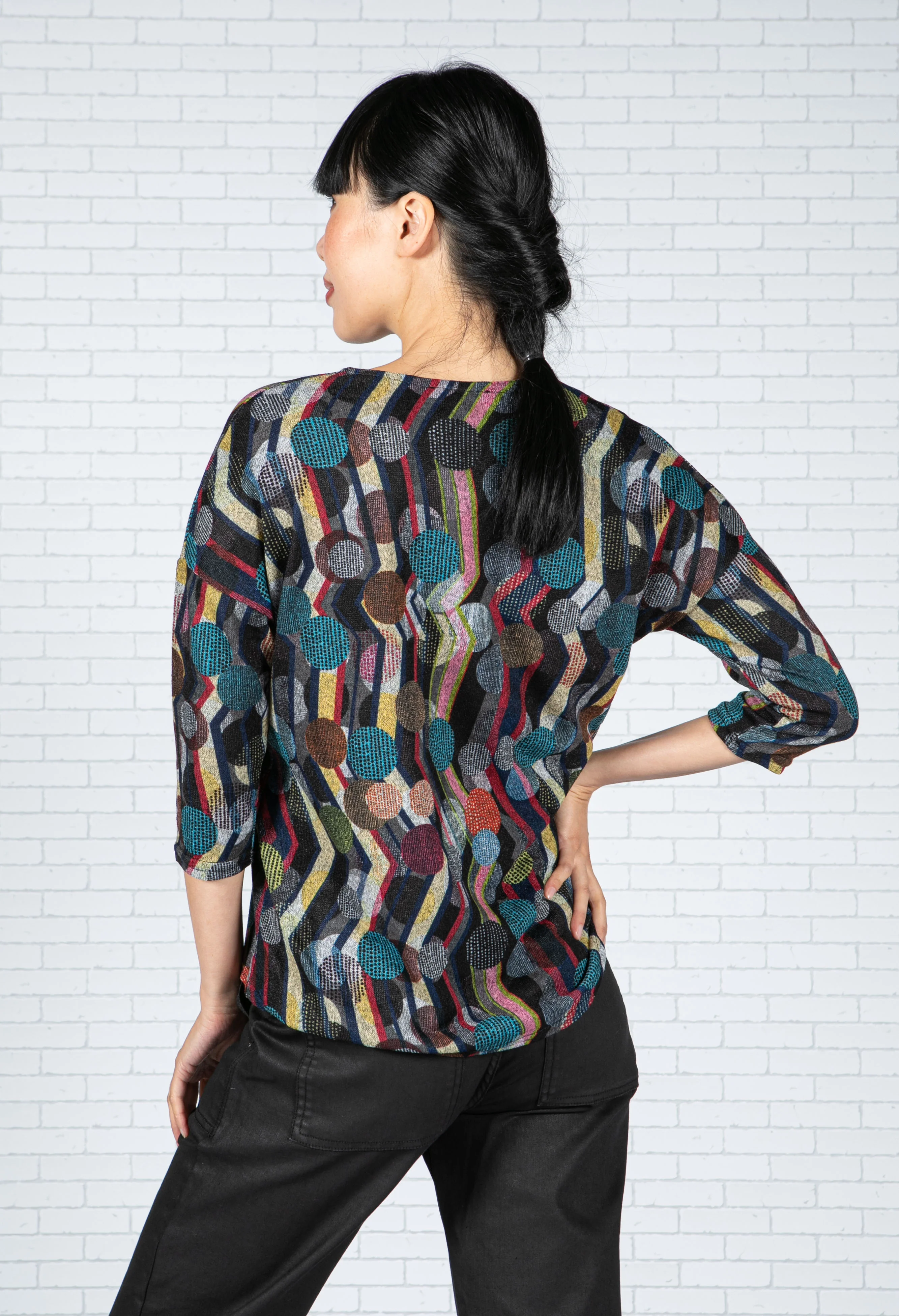 FUN PRINT TOP IN SOFT KNIT WITH DIAMONTE DETAILS