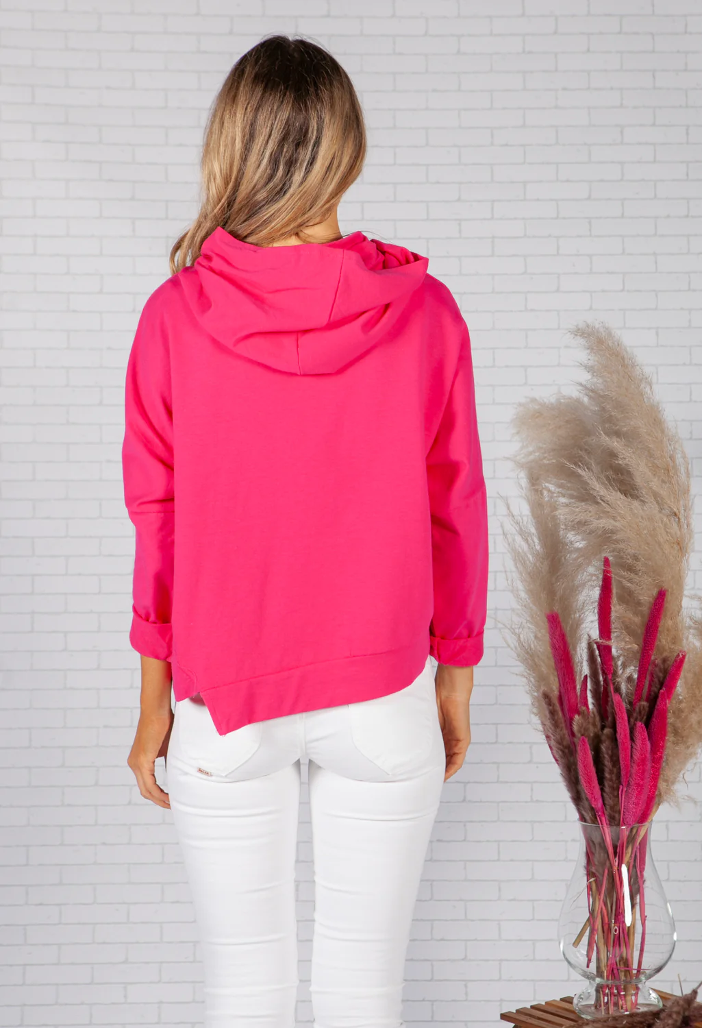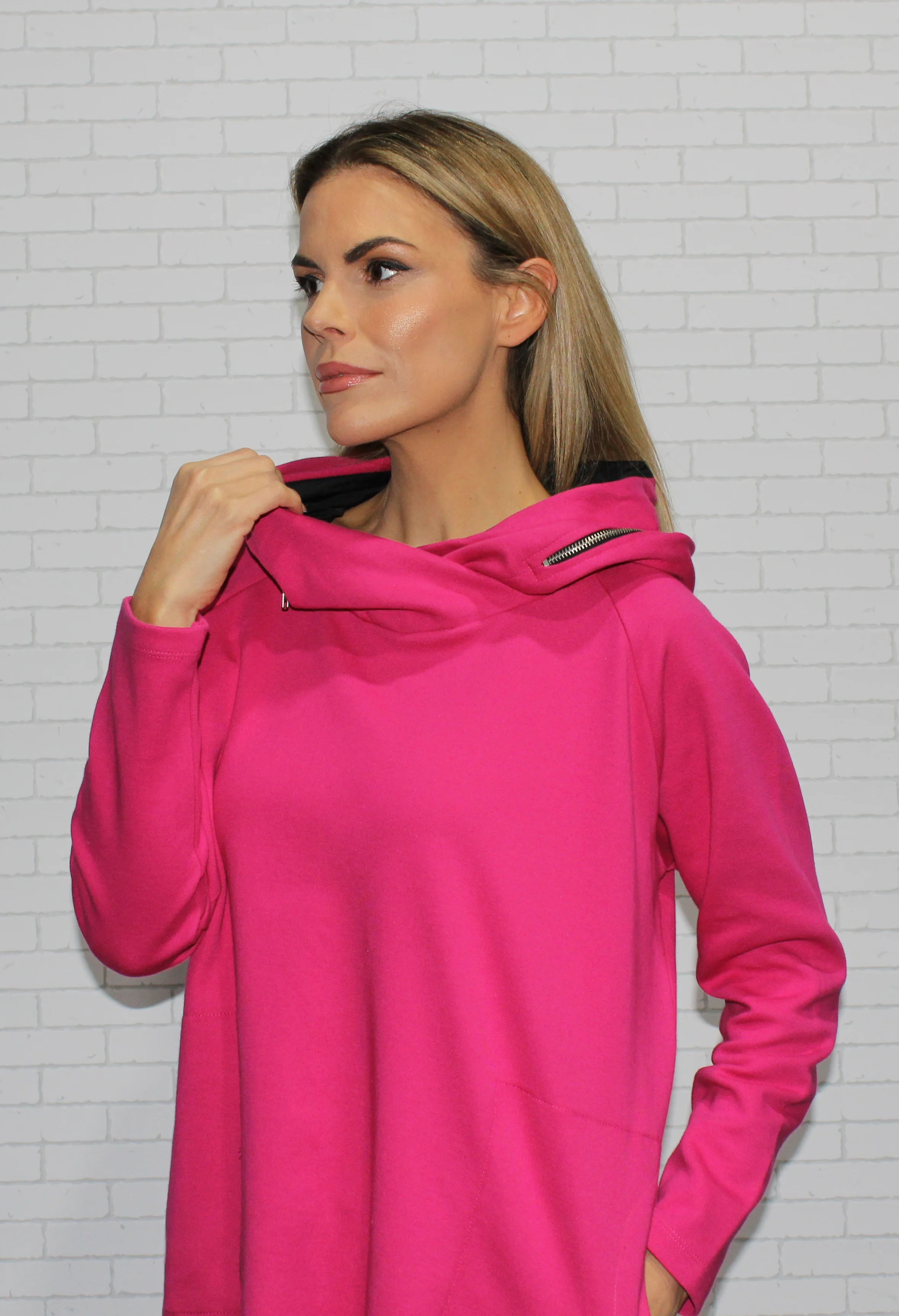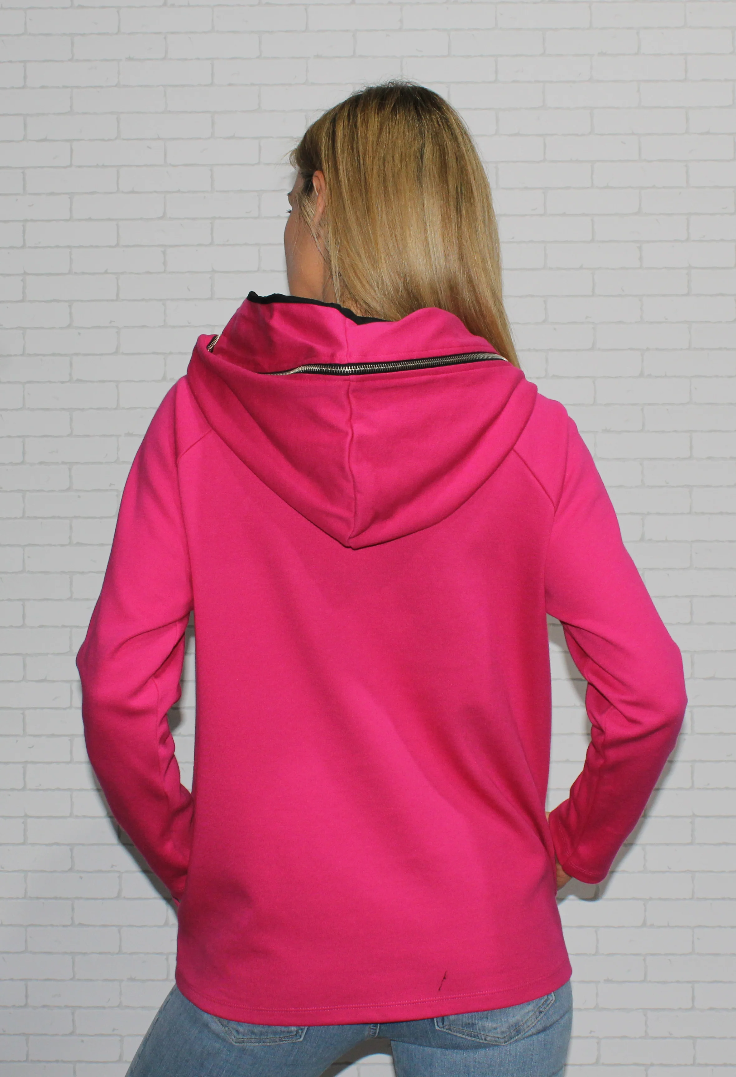 fuchsia hoodie with zipper detail