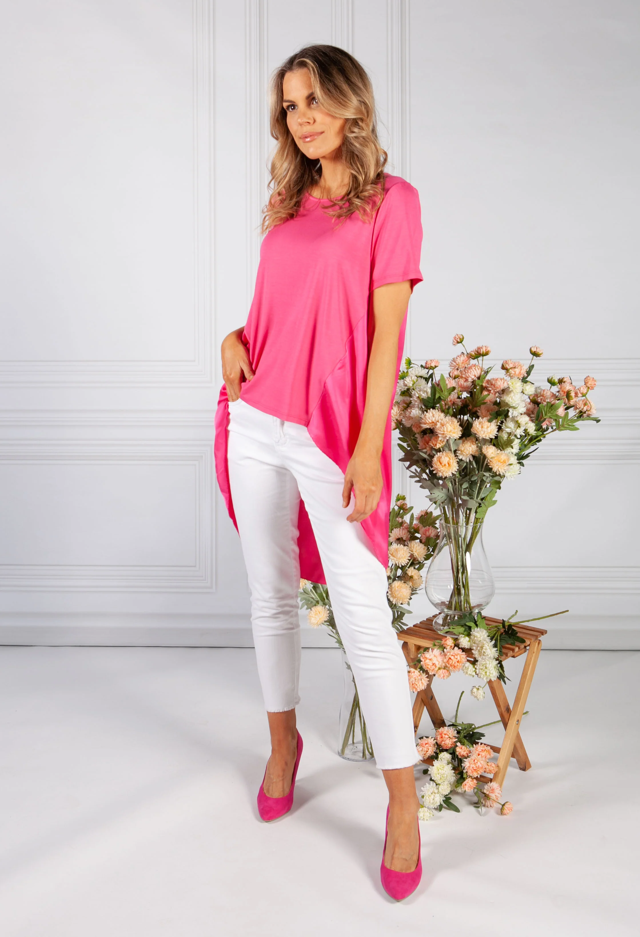 Fuchsia Hi-Low Hem Top