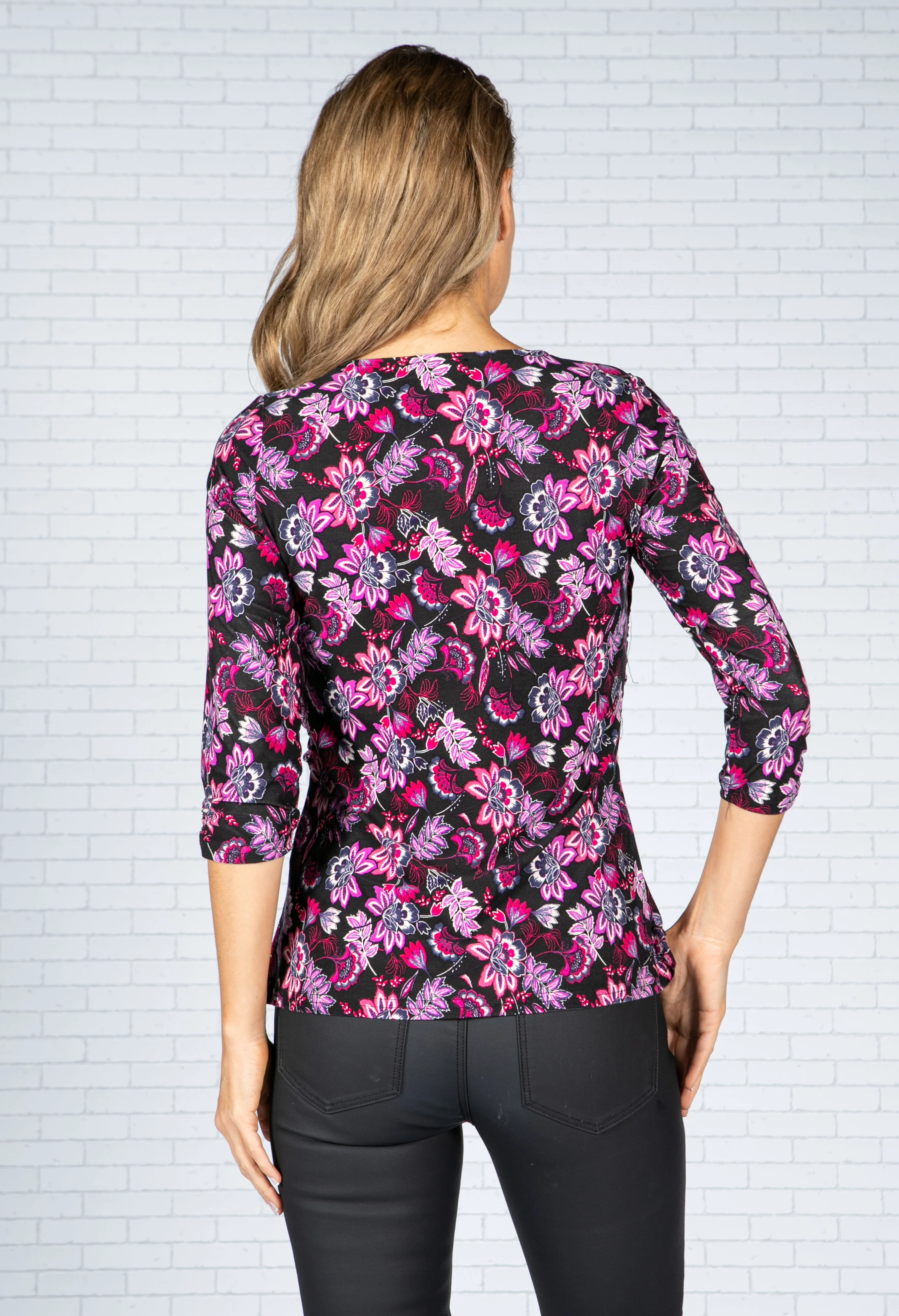 FUCHSIA AND LILAC BLOSSOM PRINT TOP