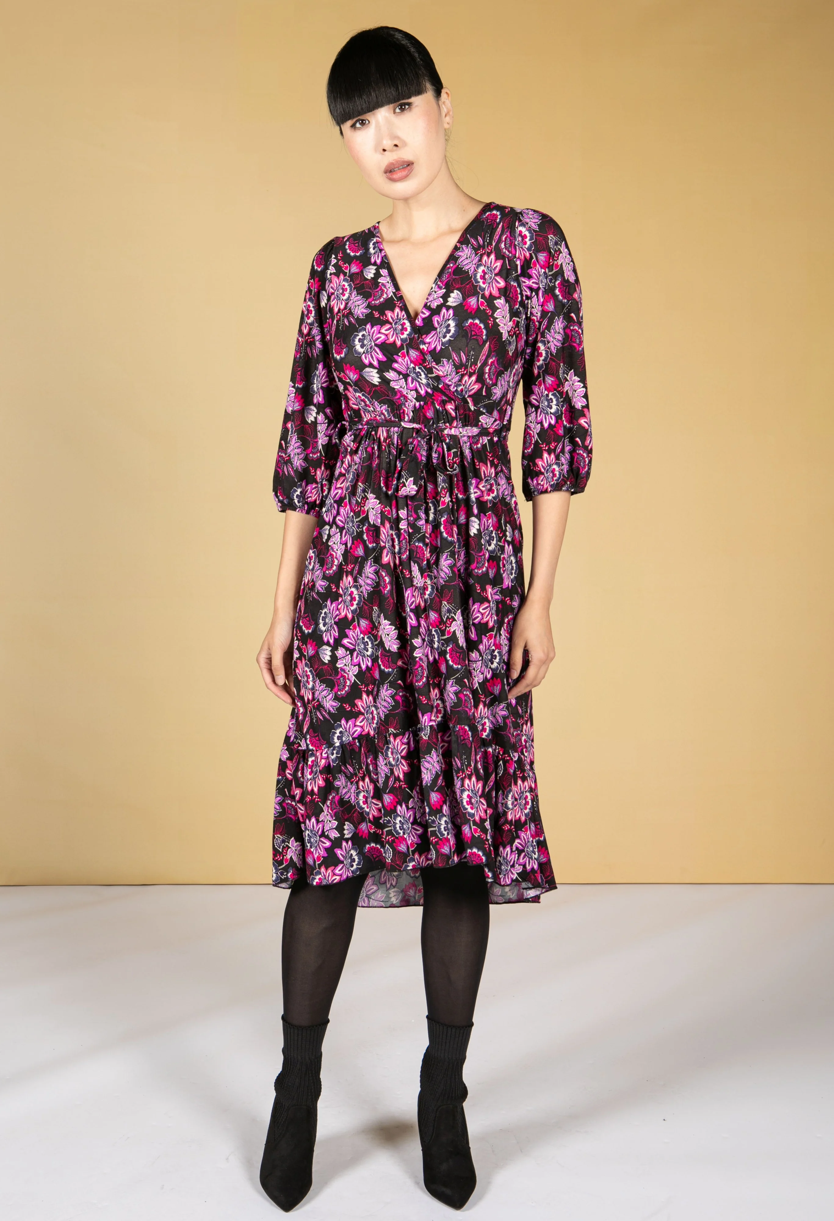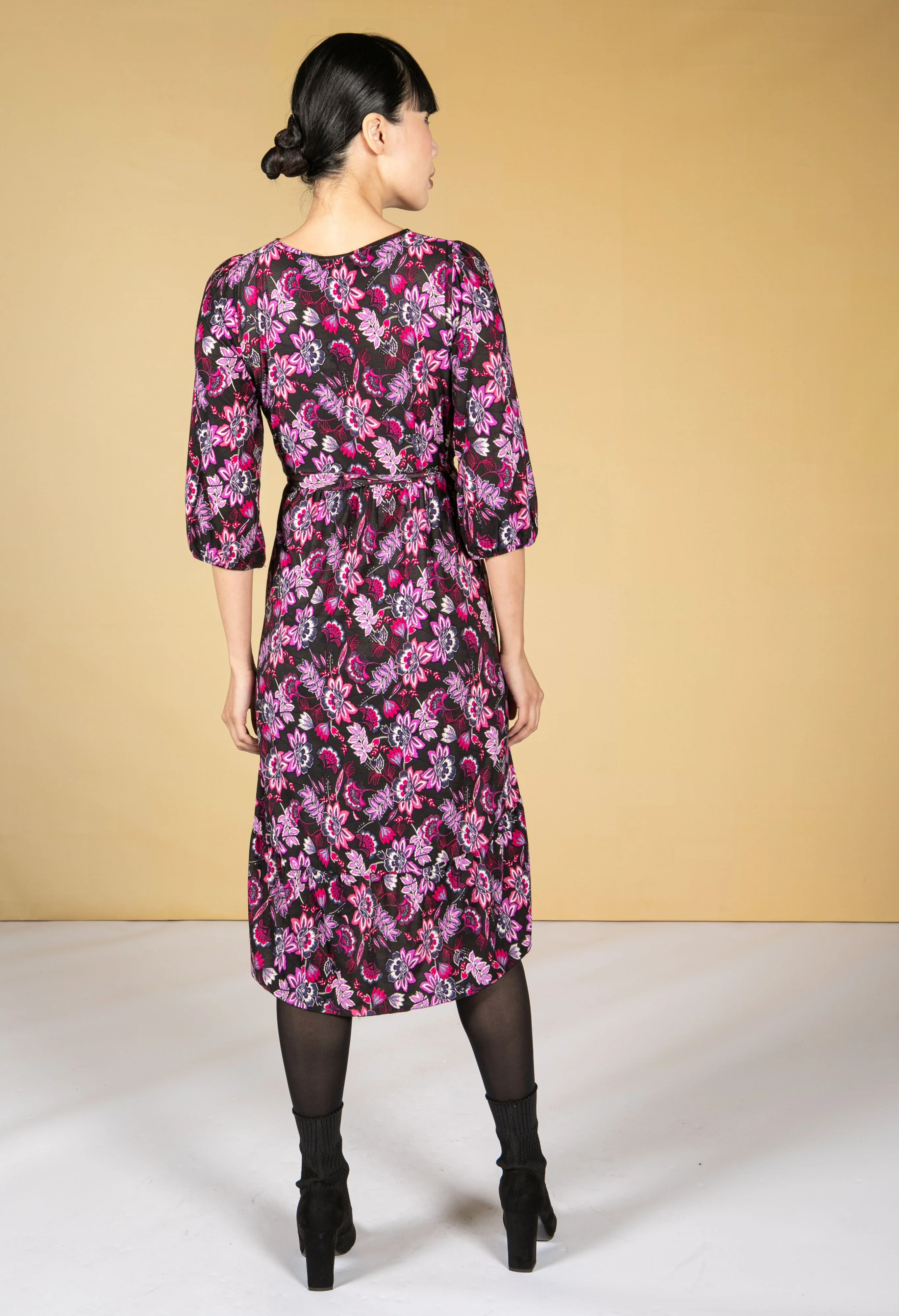 Fuchsia and Lilac Blossom Print Dress