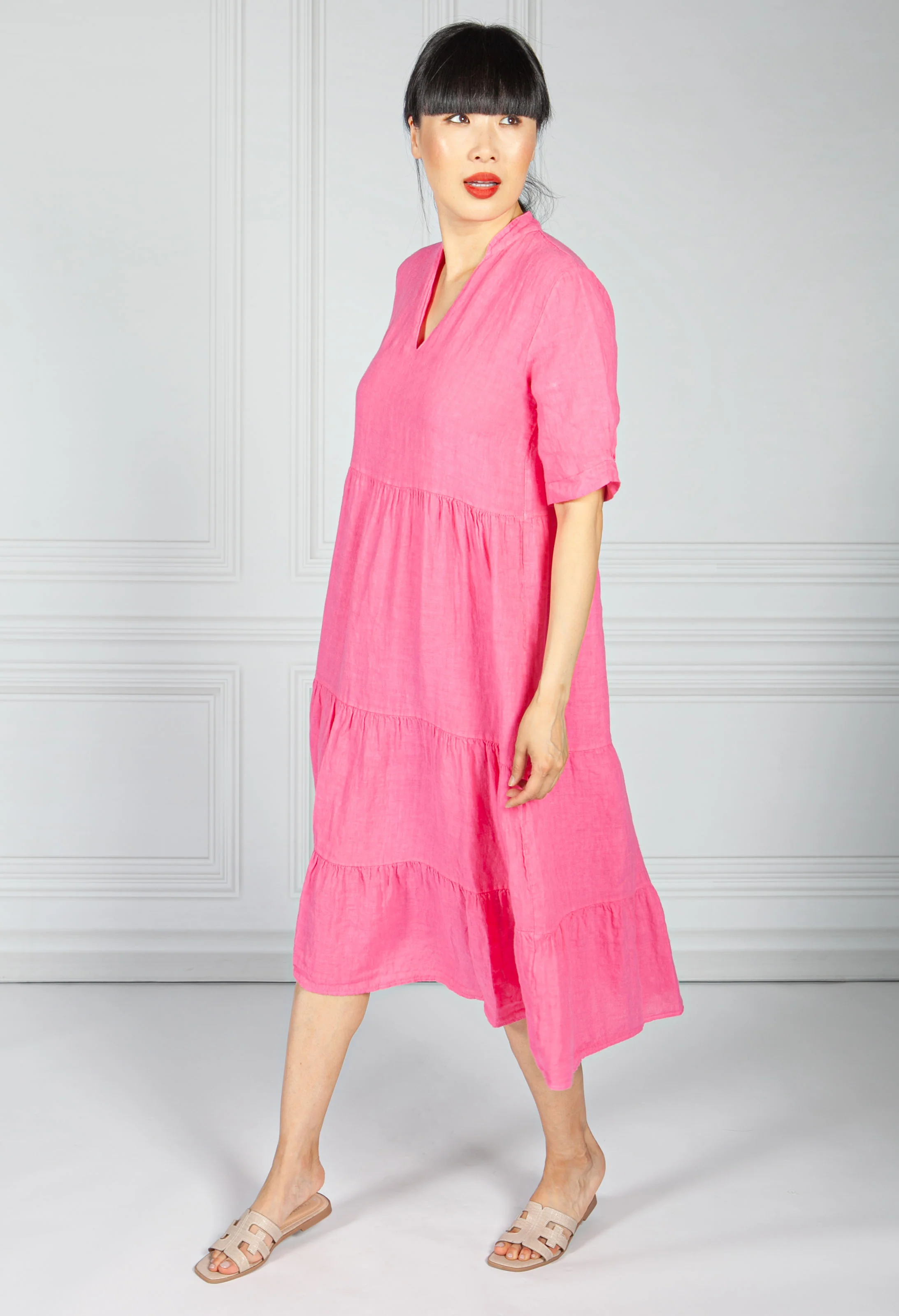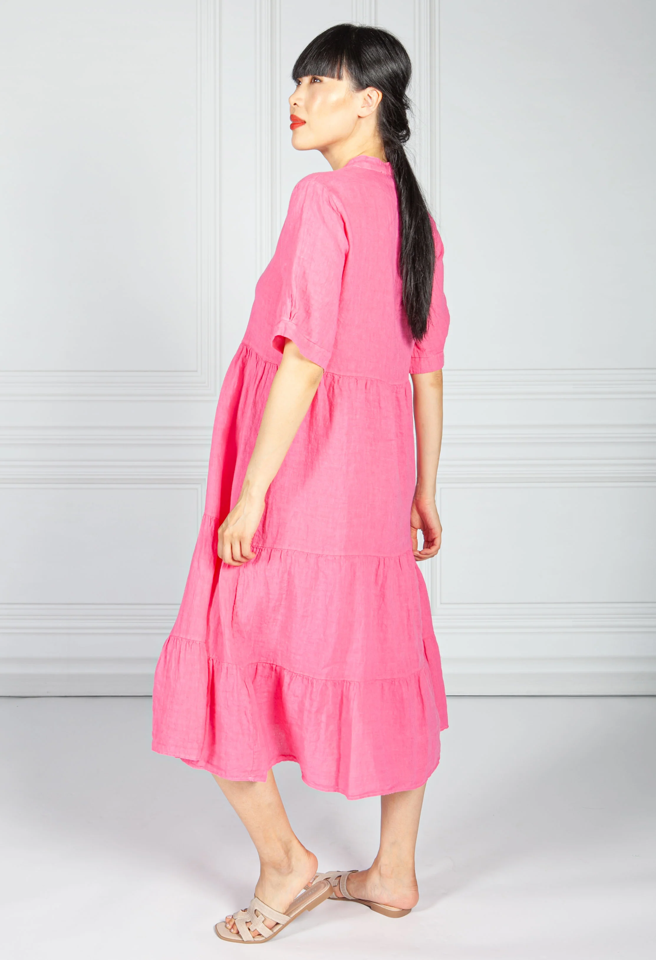 Fuchsia Linen Smock Dress