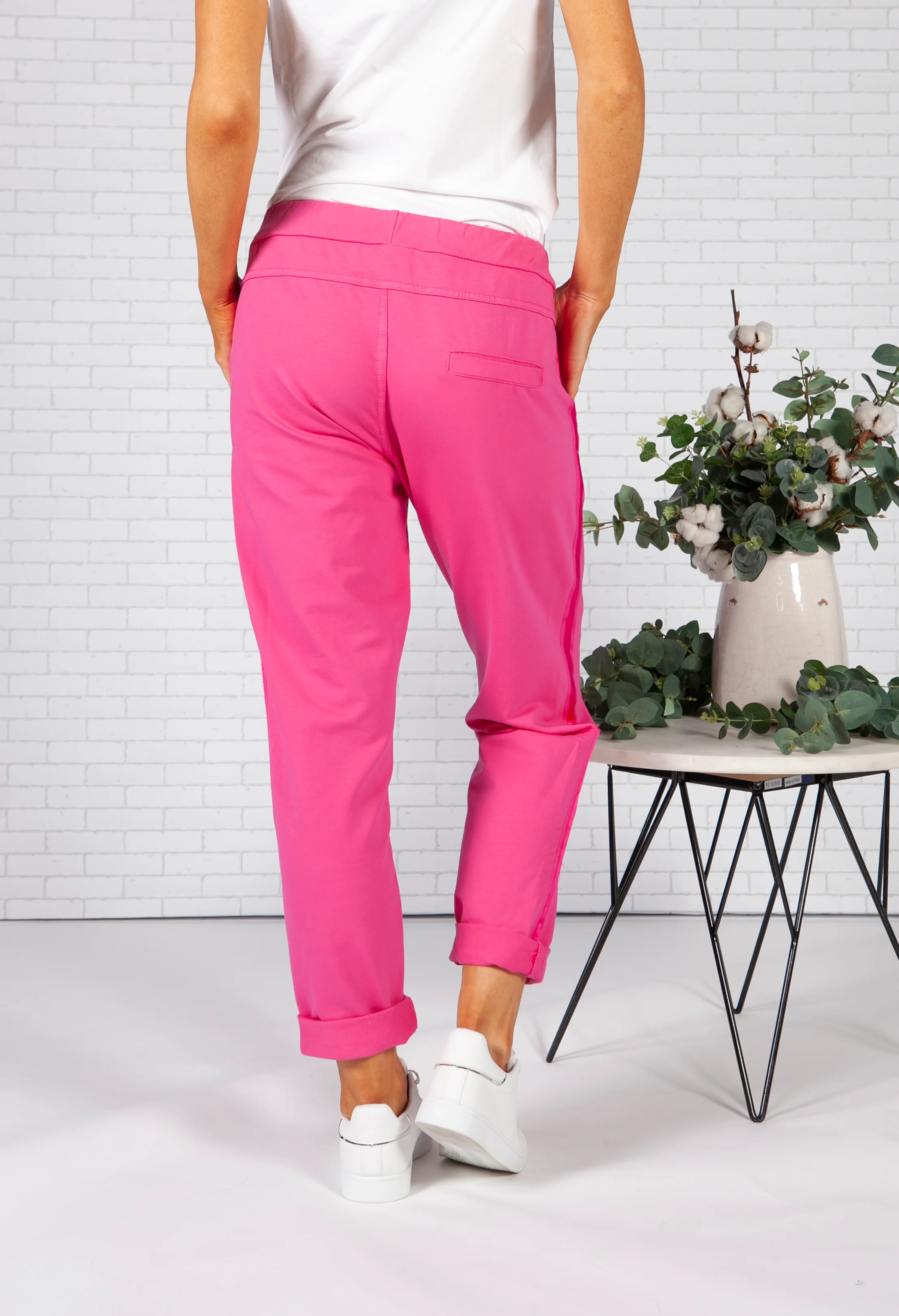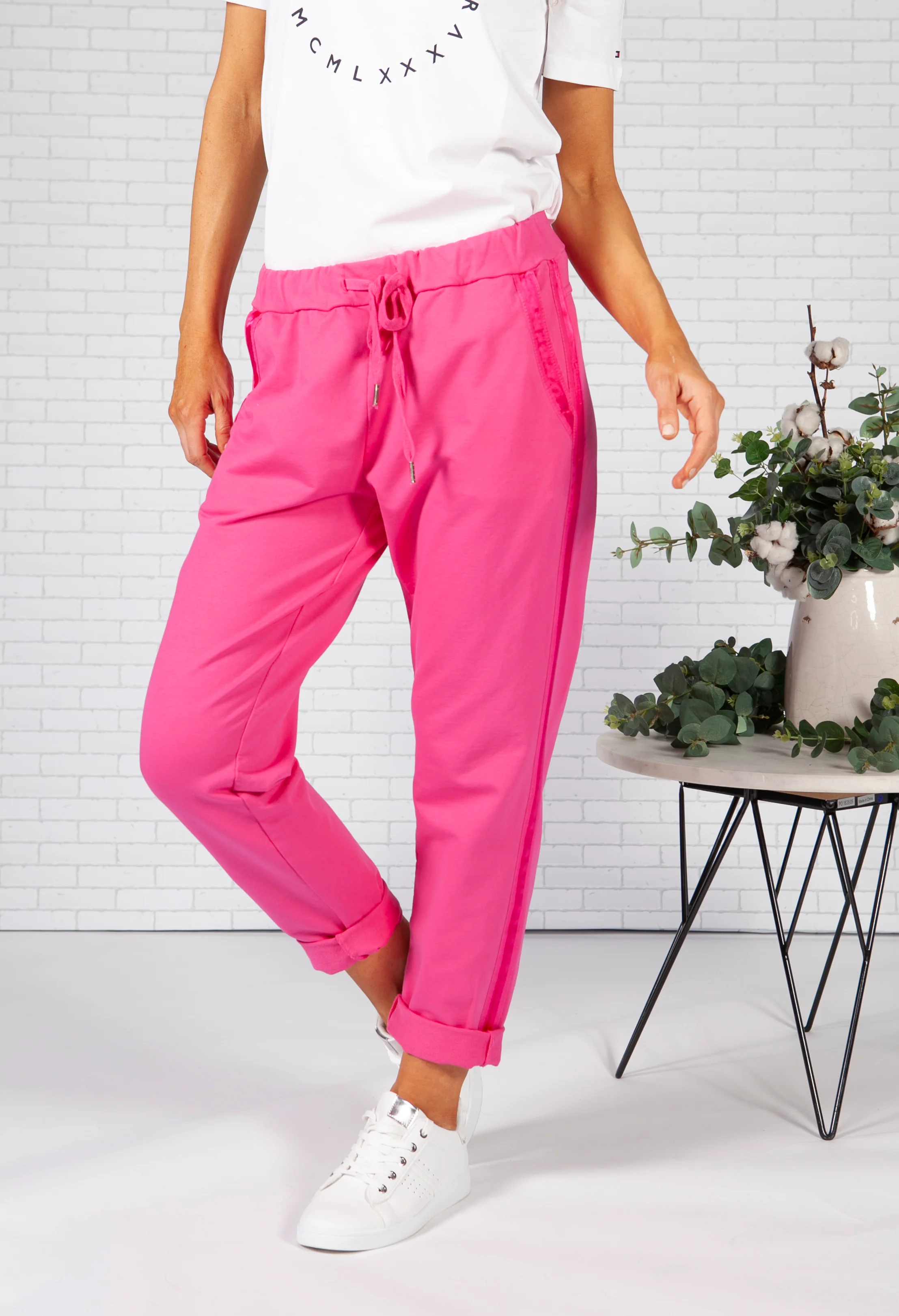 Fuchsia Joggers with Satin Detail Side Stripe