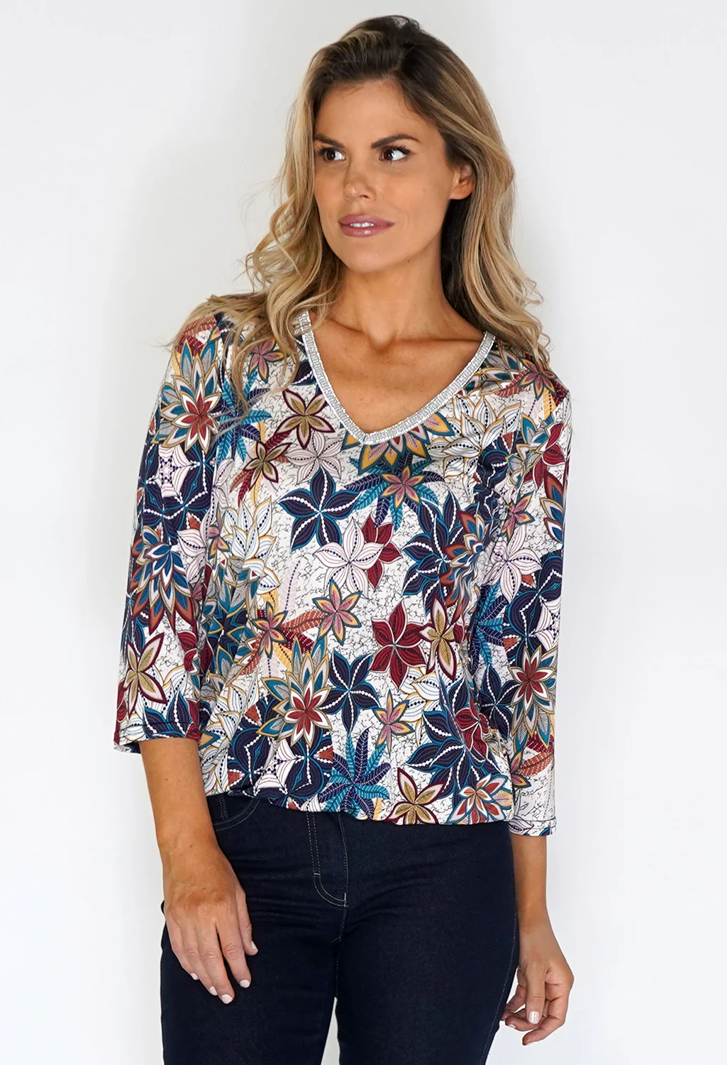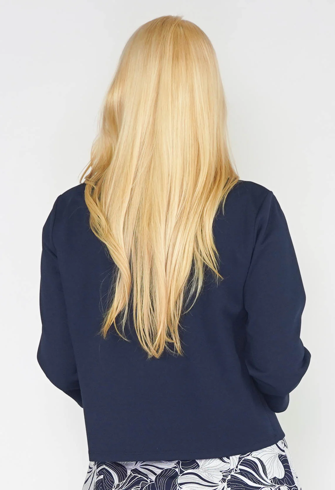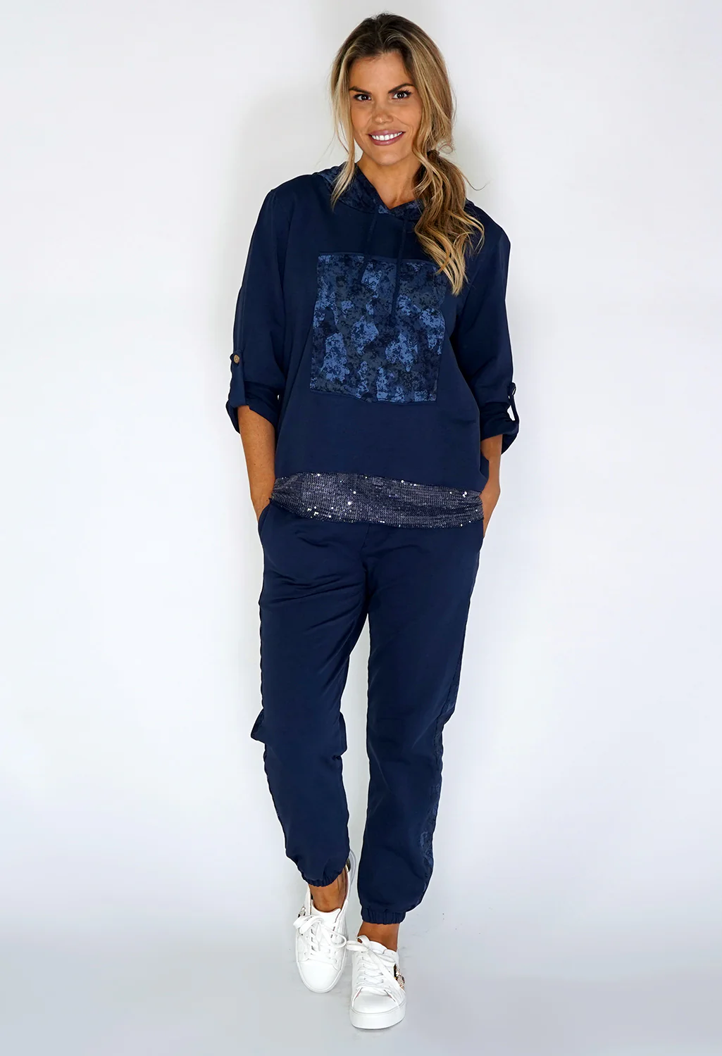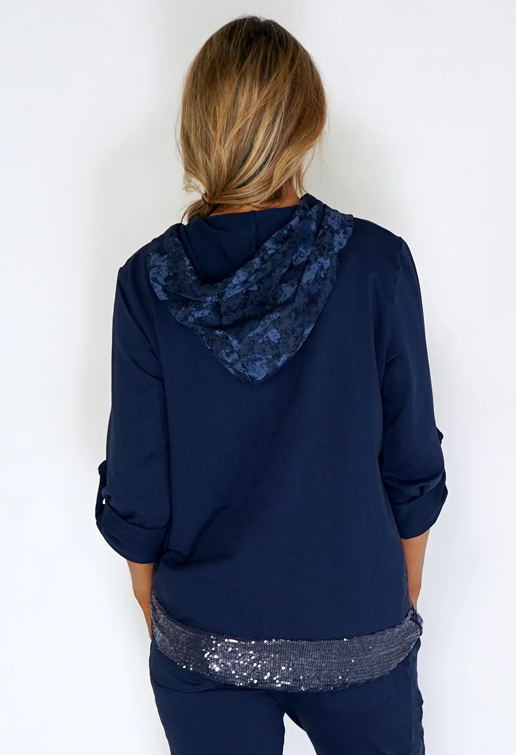 Zapara Navy Jumper with Glitter Hem and Camouflage Hood