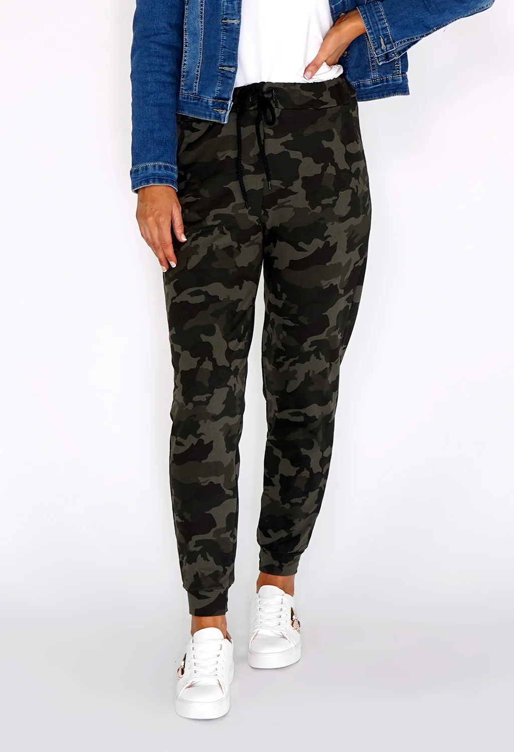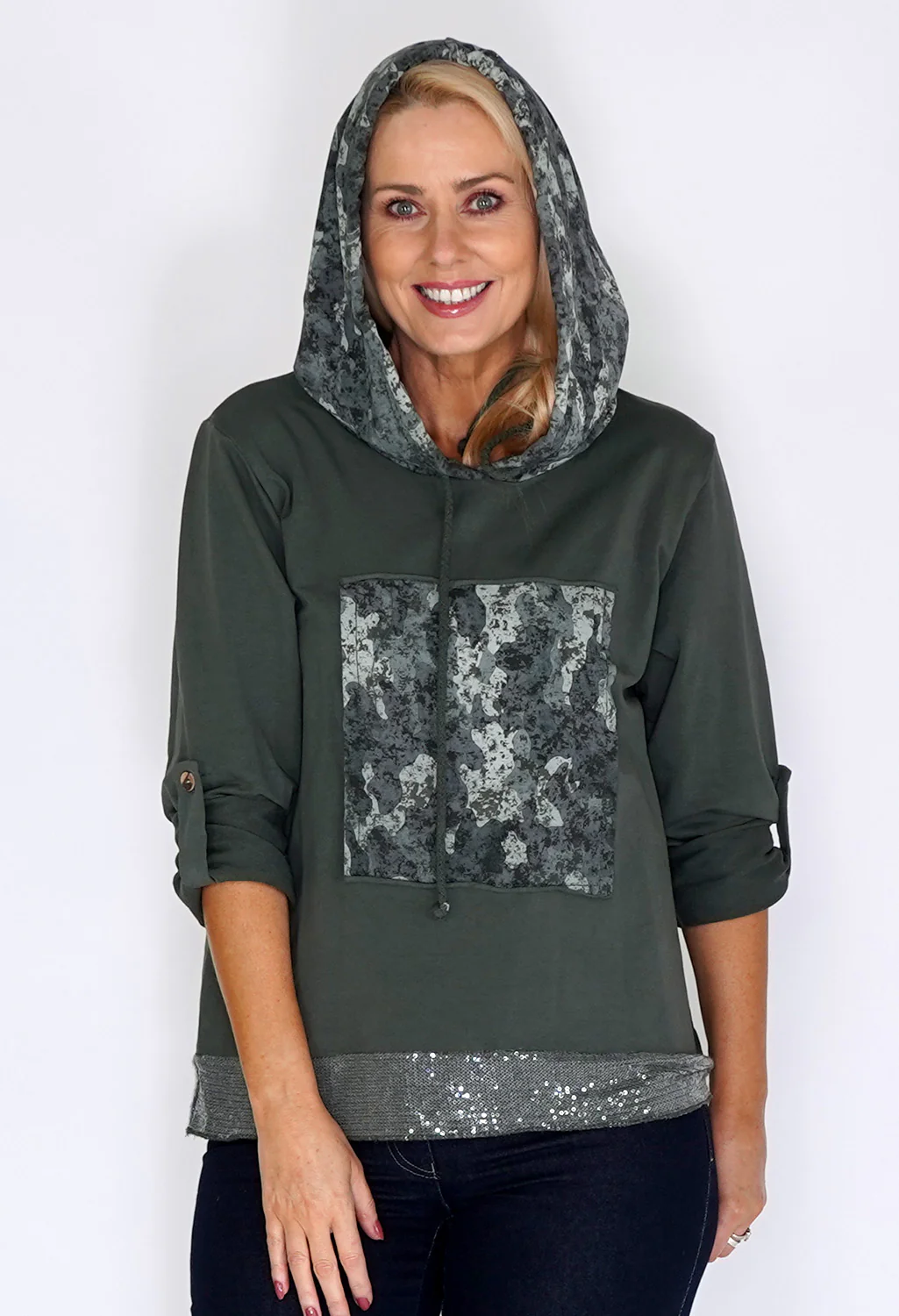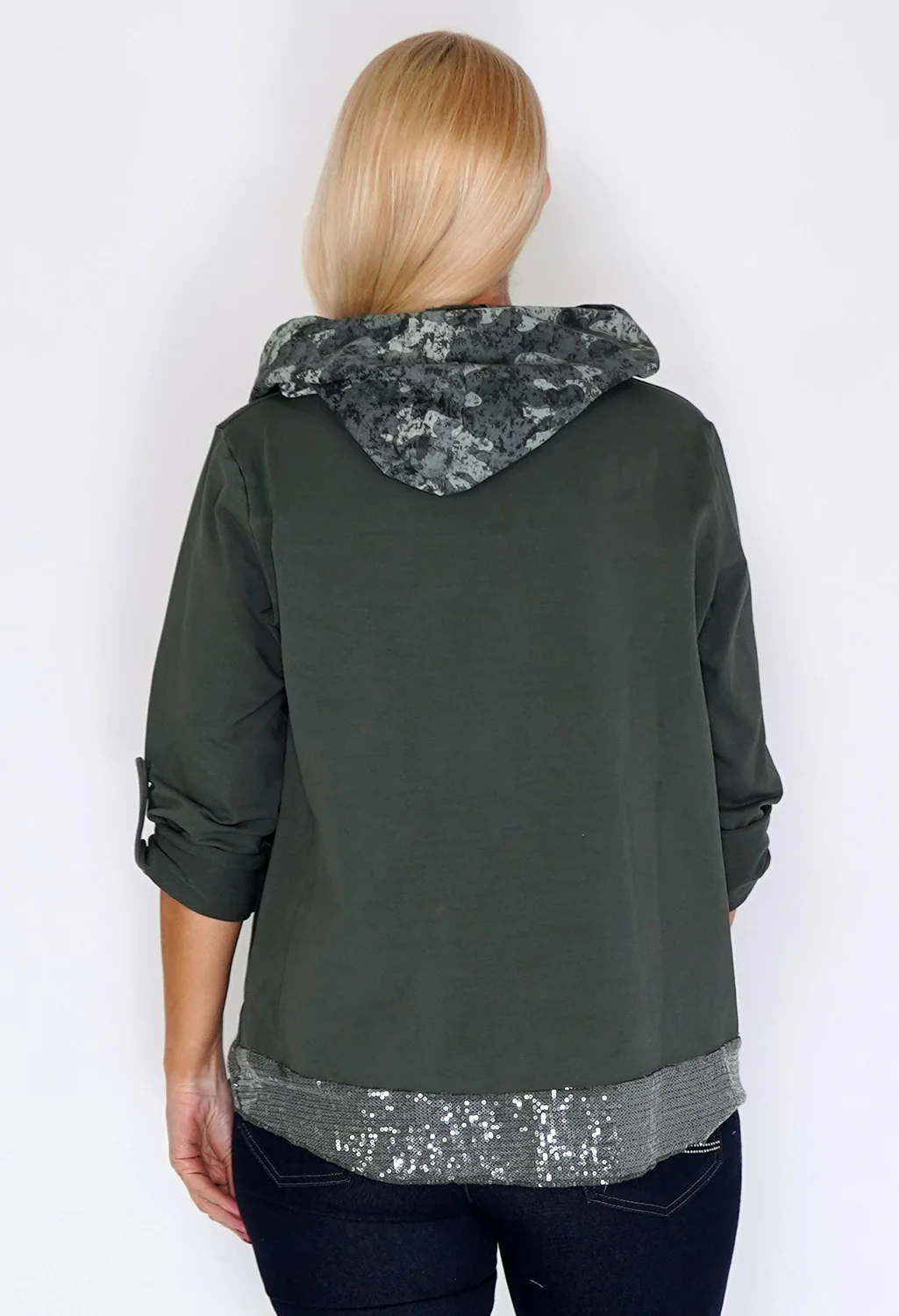 Zapara Khaki Jumper with Glitter Hem and Camouflage Hood