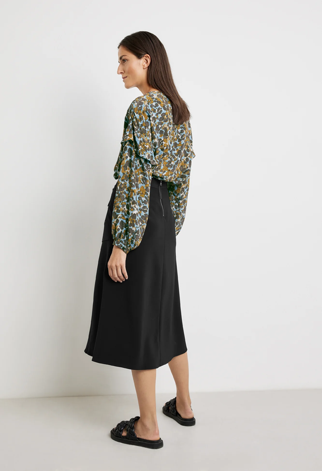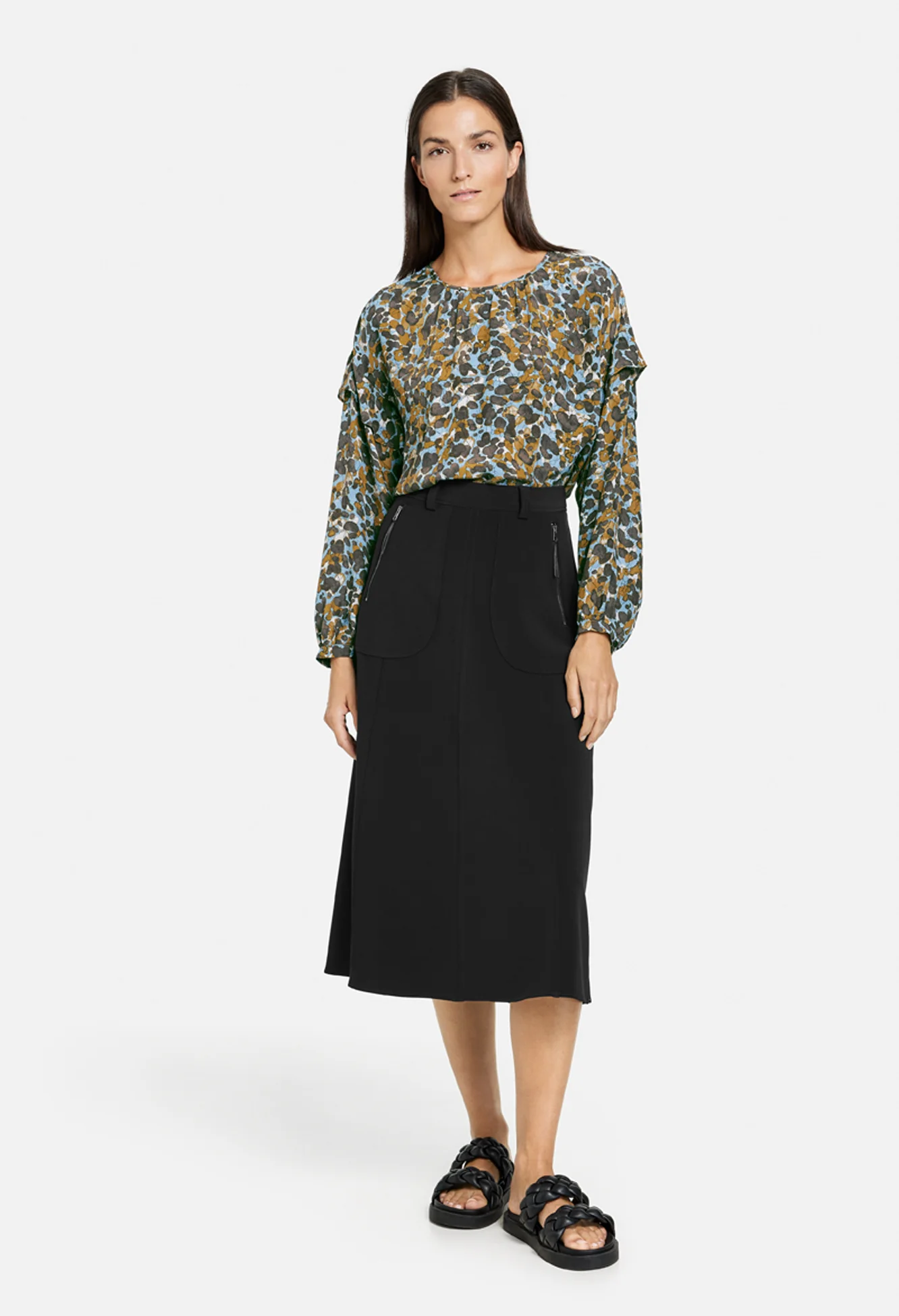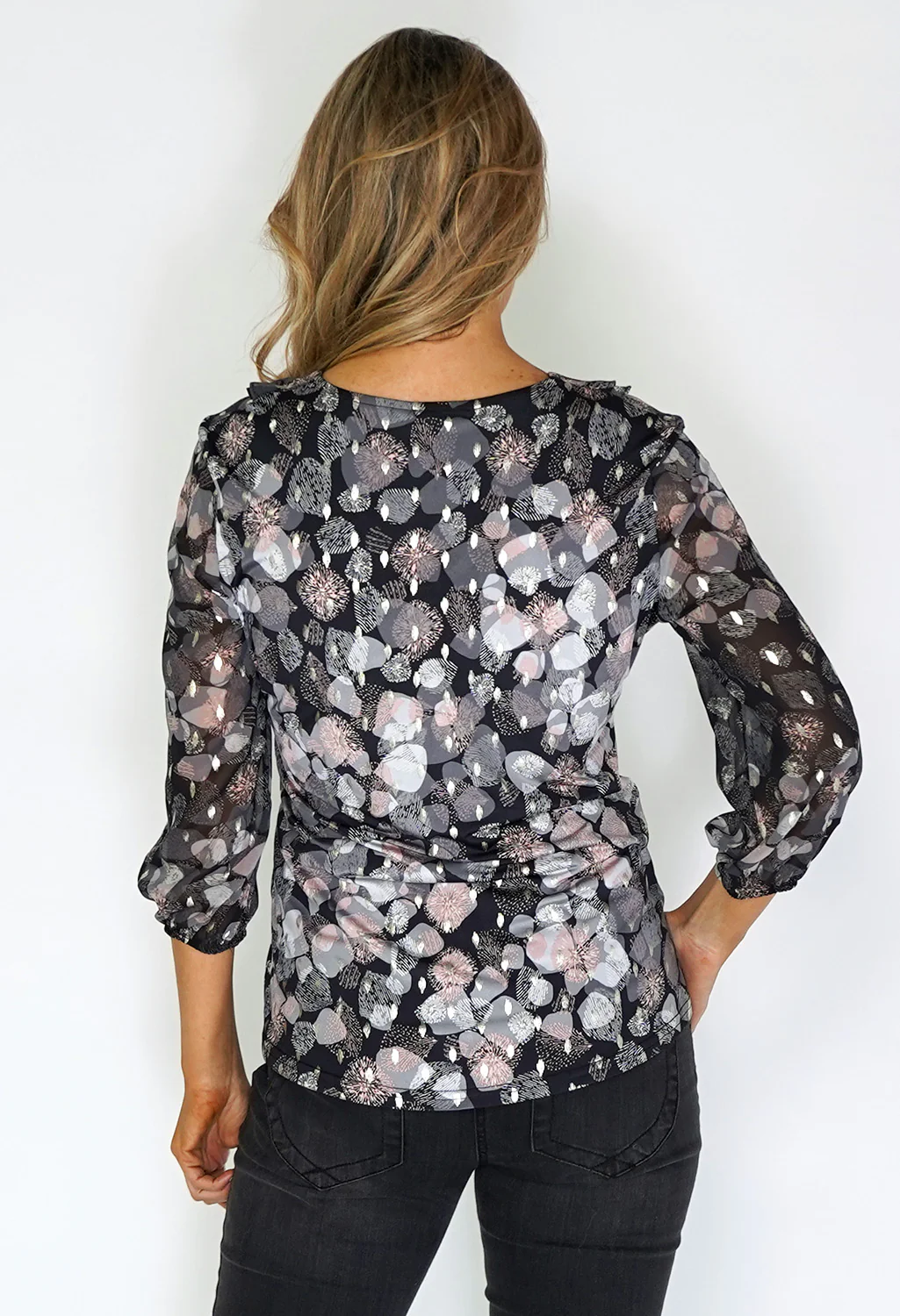 Zapara Black Printed Ruffle Blouse