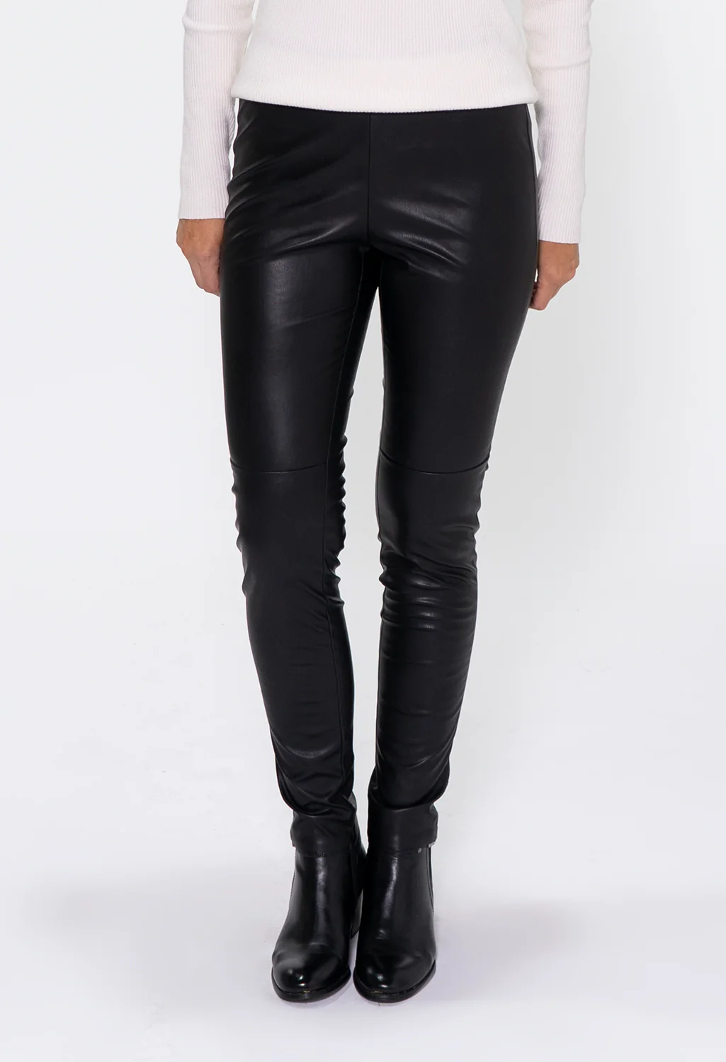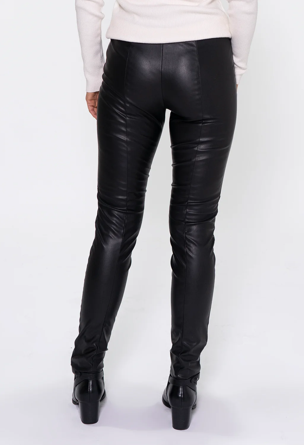 Zapara Black Straight Leg Leather Leggings