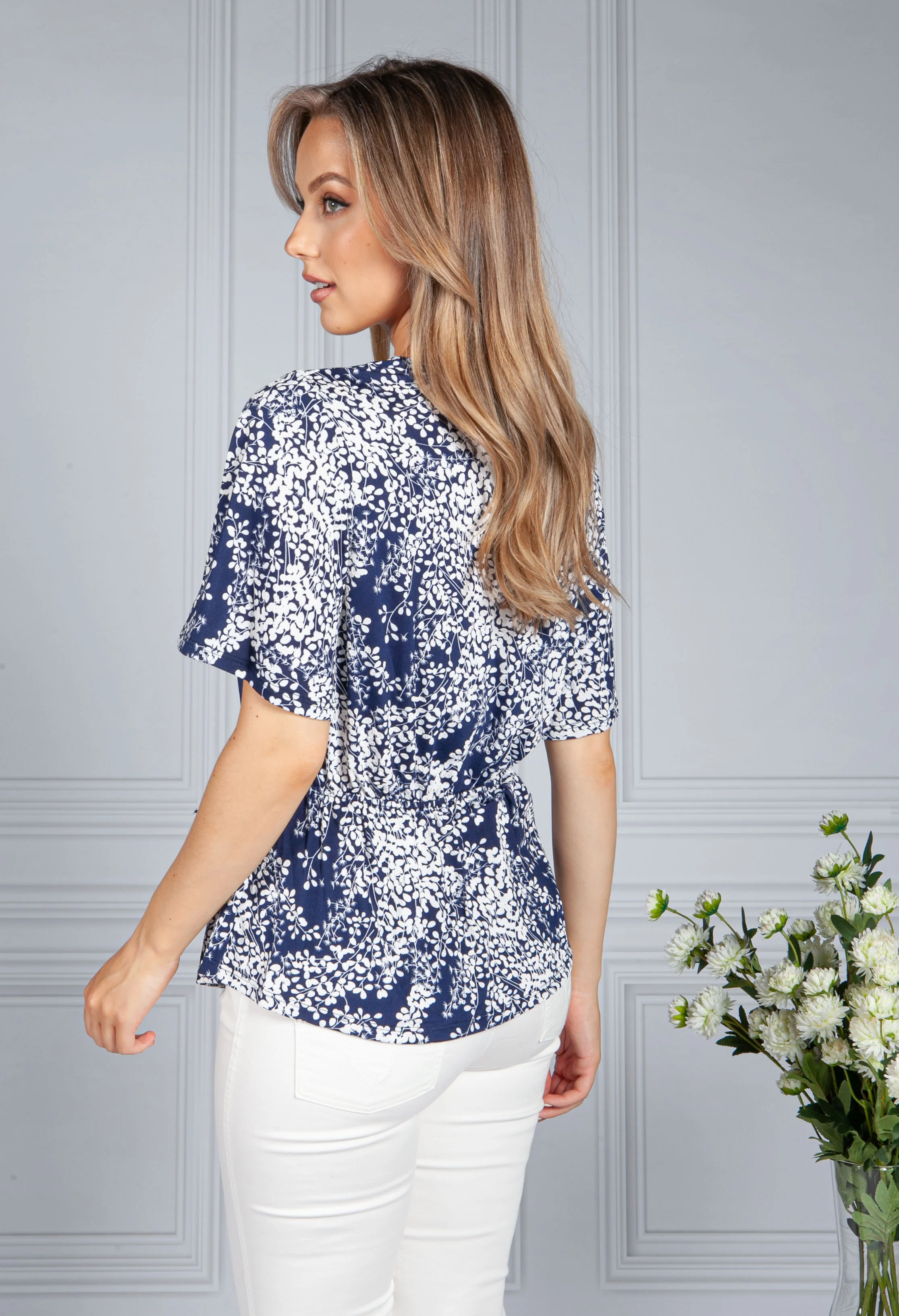 Wrap Style Wall Flower Print Top