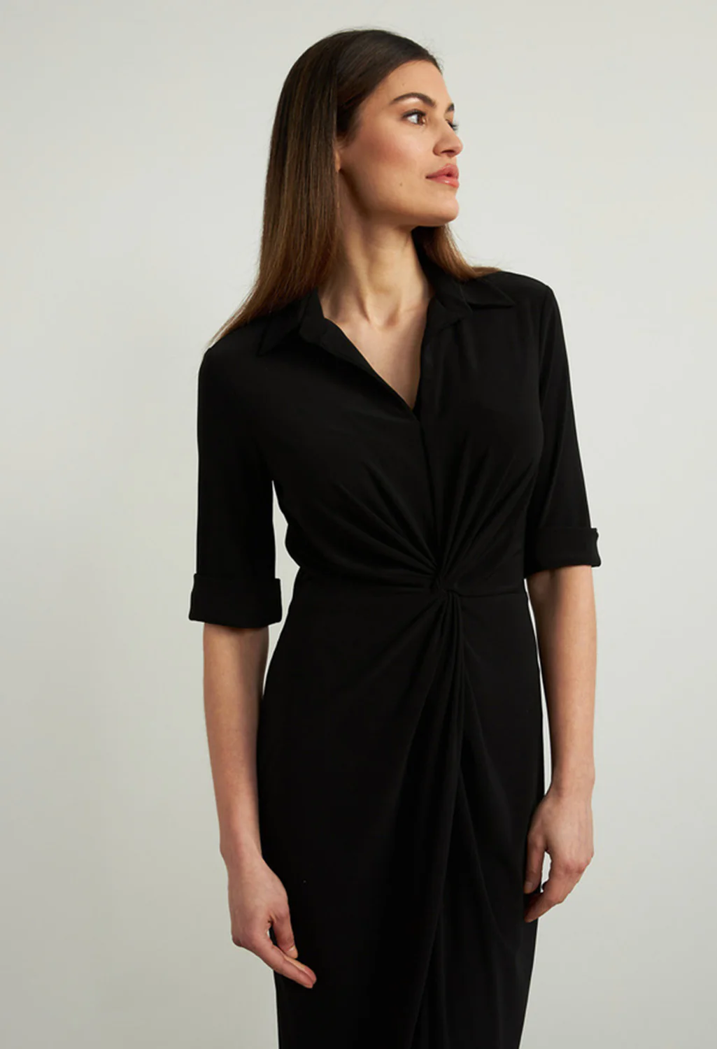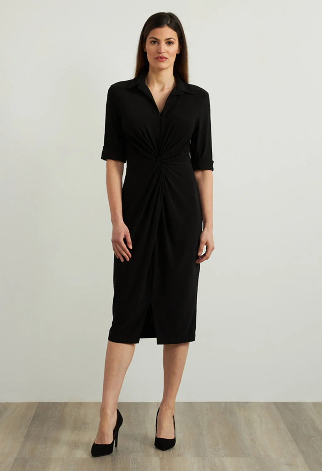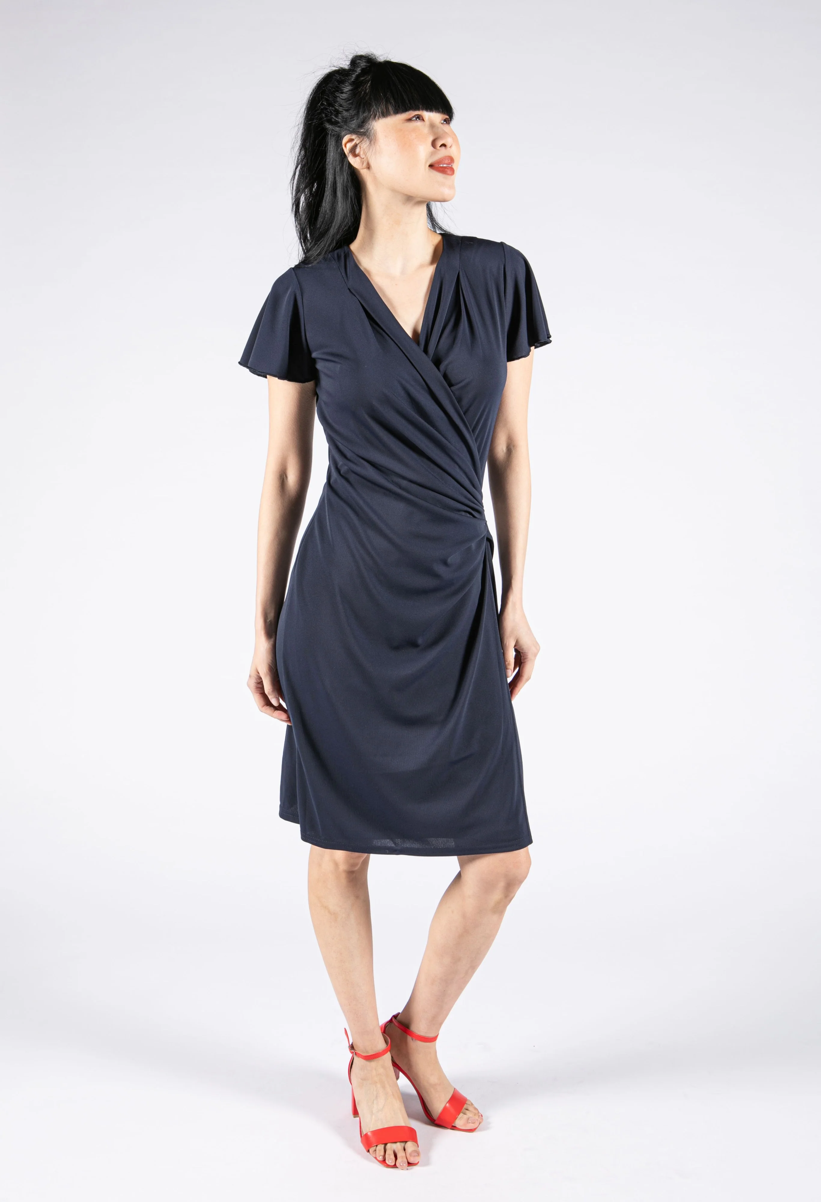 Wrap Front Sheath Dress in Black
