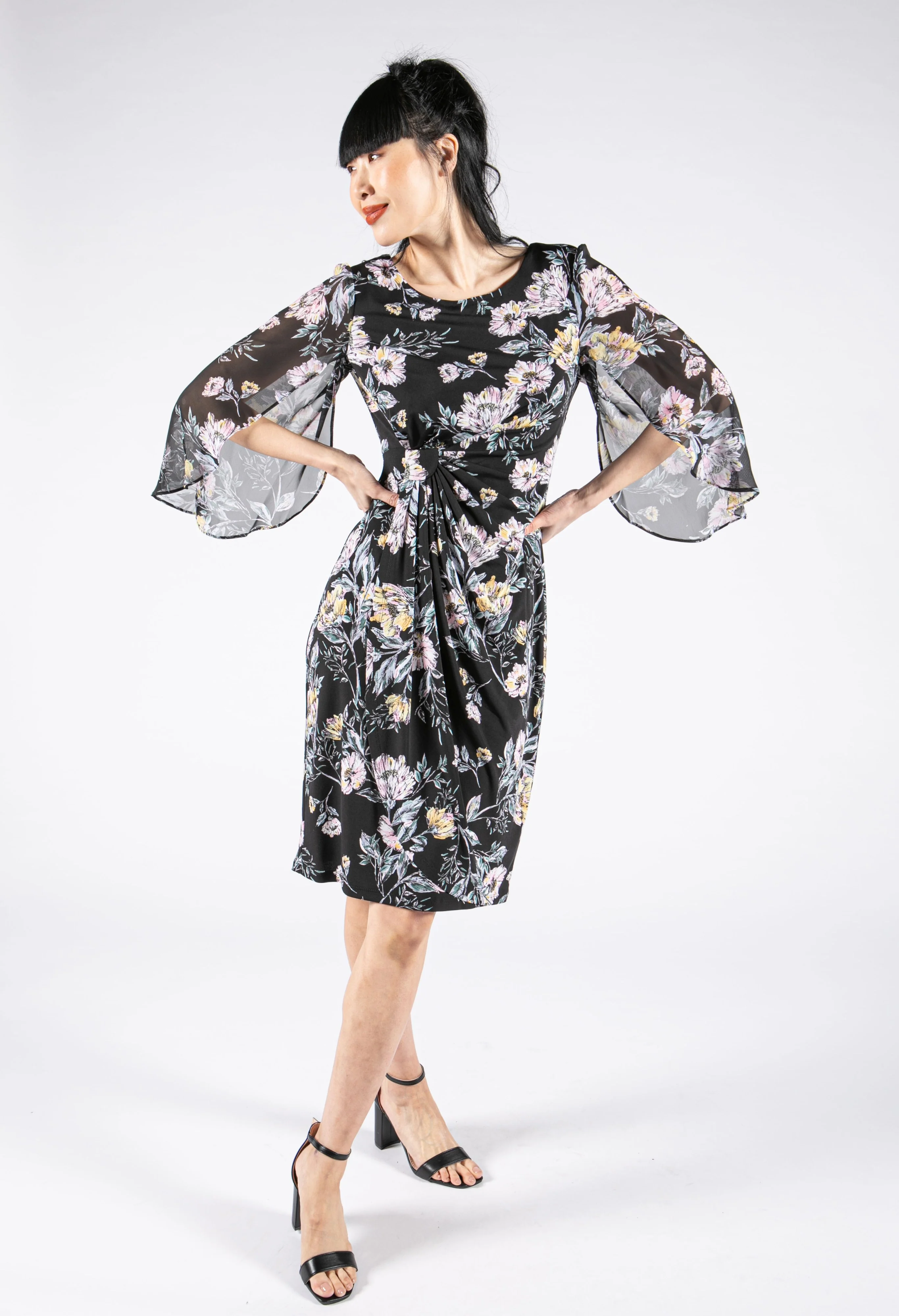 Wrap Bodice Floral Dress