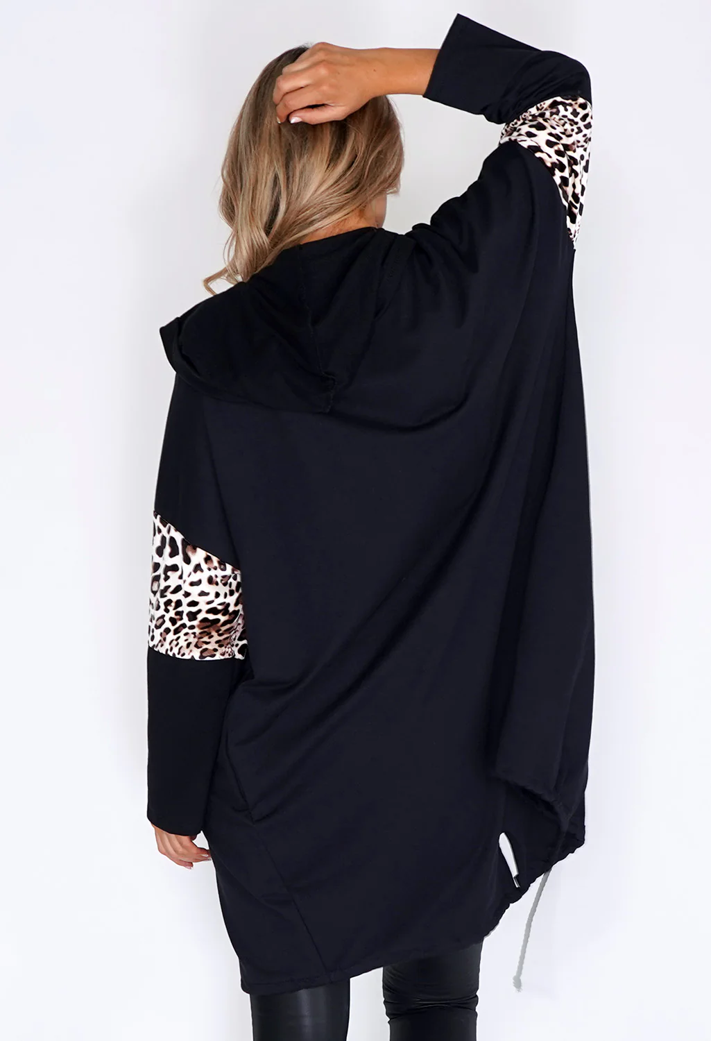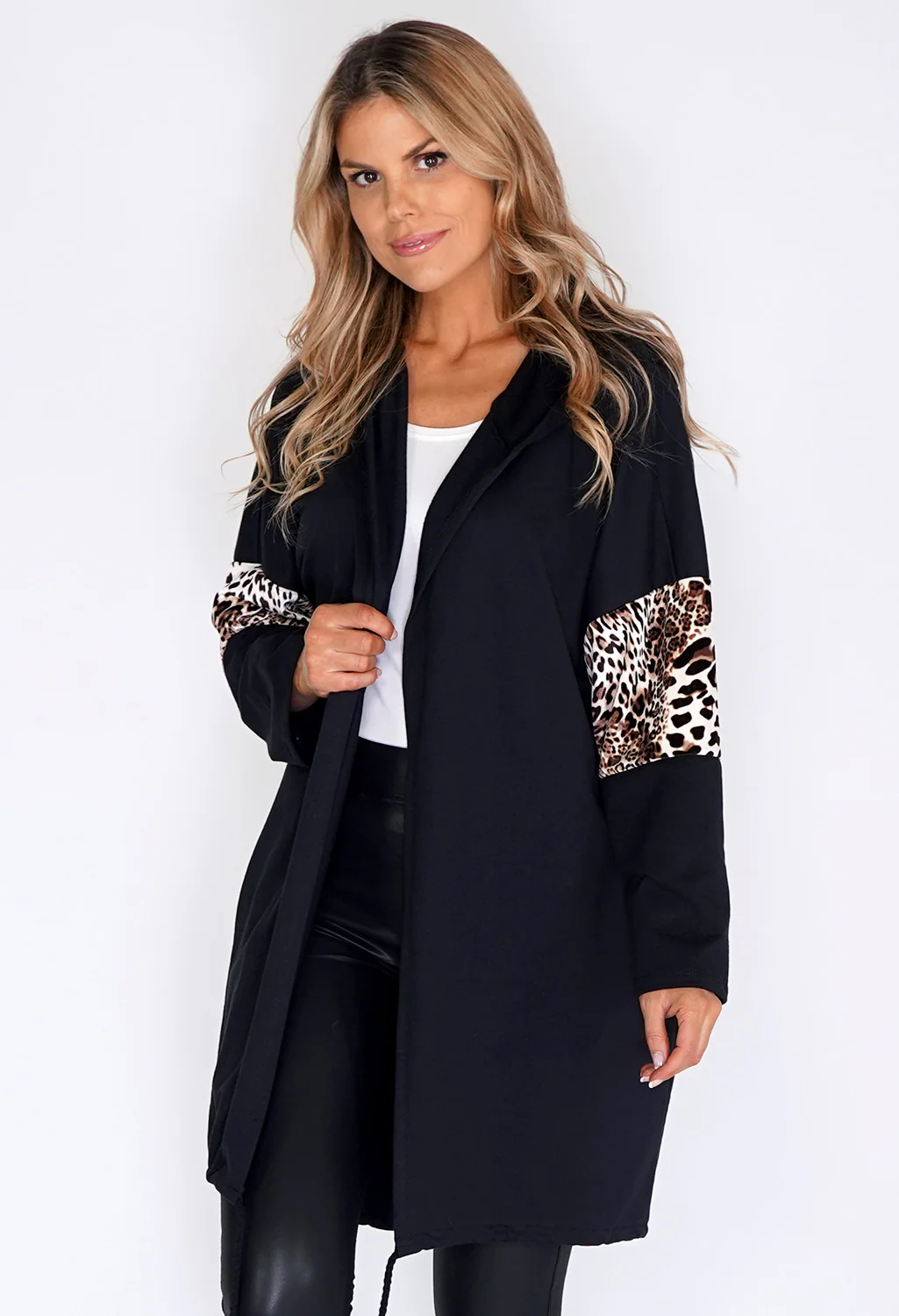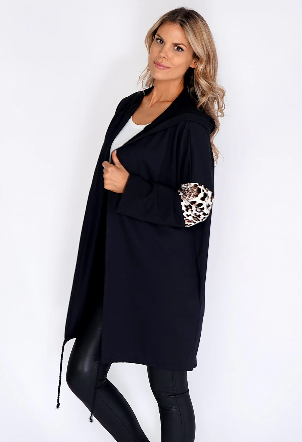 Zapara Black Coat with leopard Panelled Sleeve