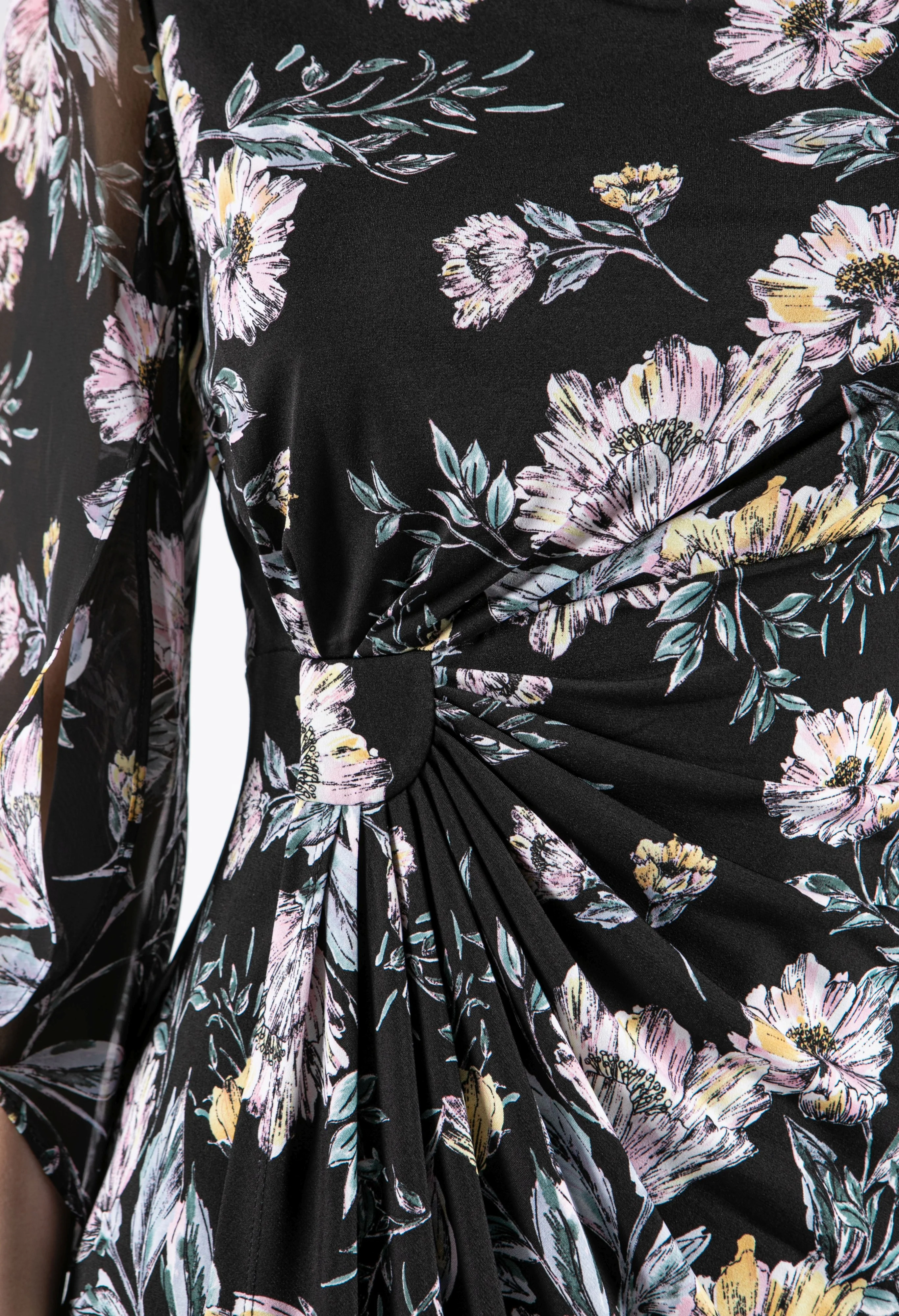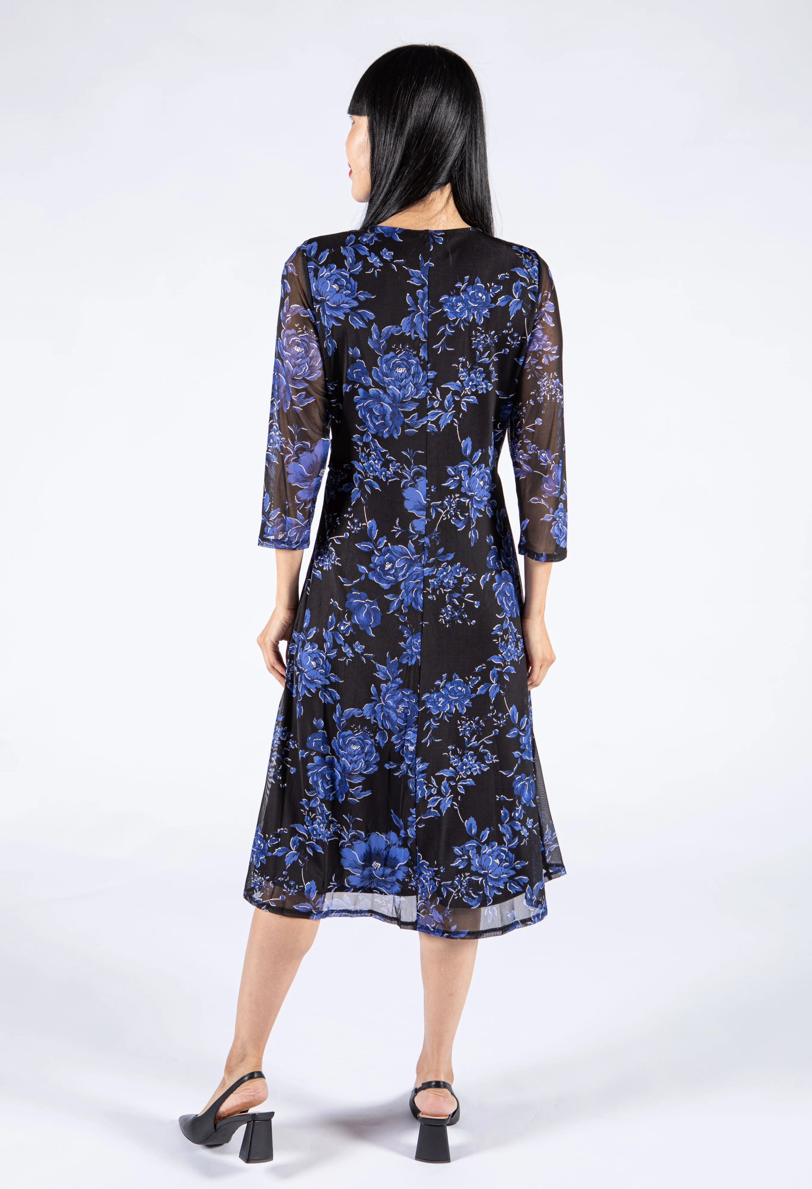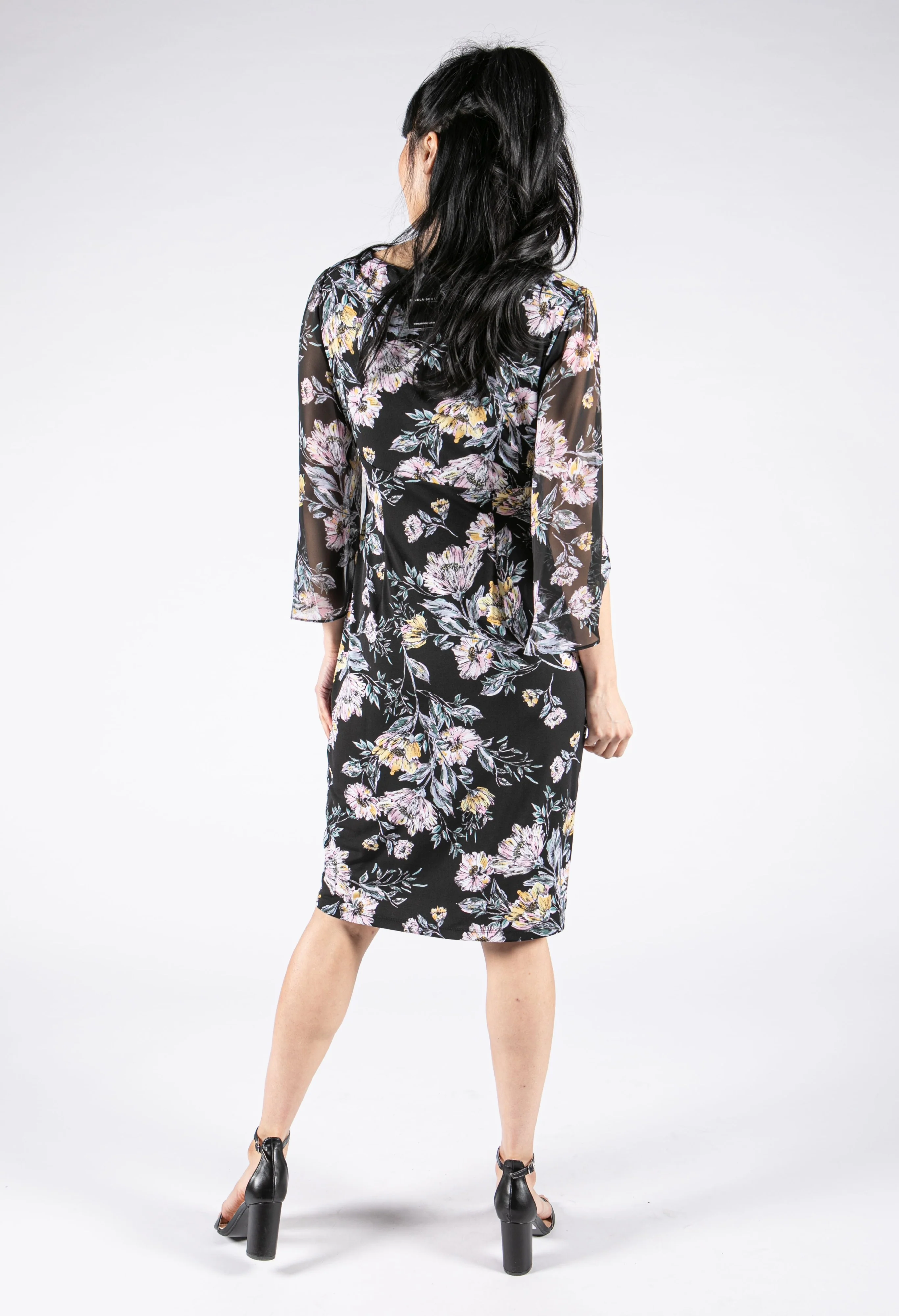 Wrap Bodice Floral Mesh Dress