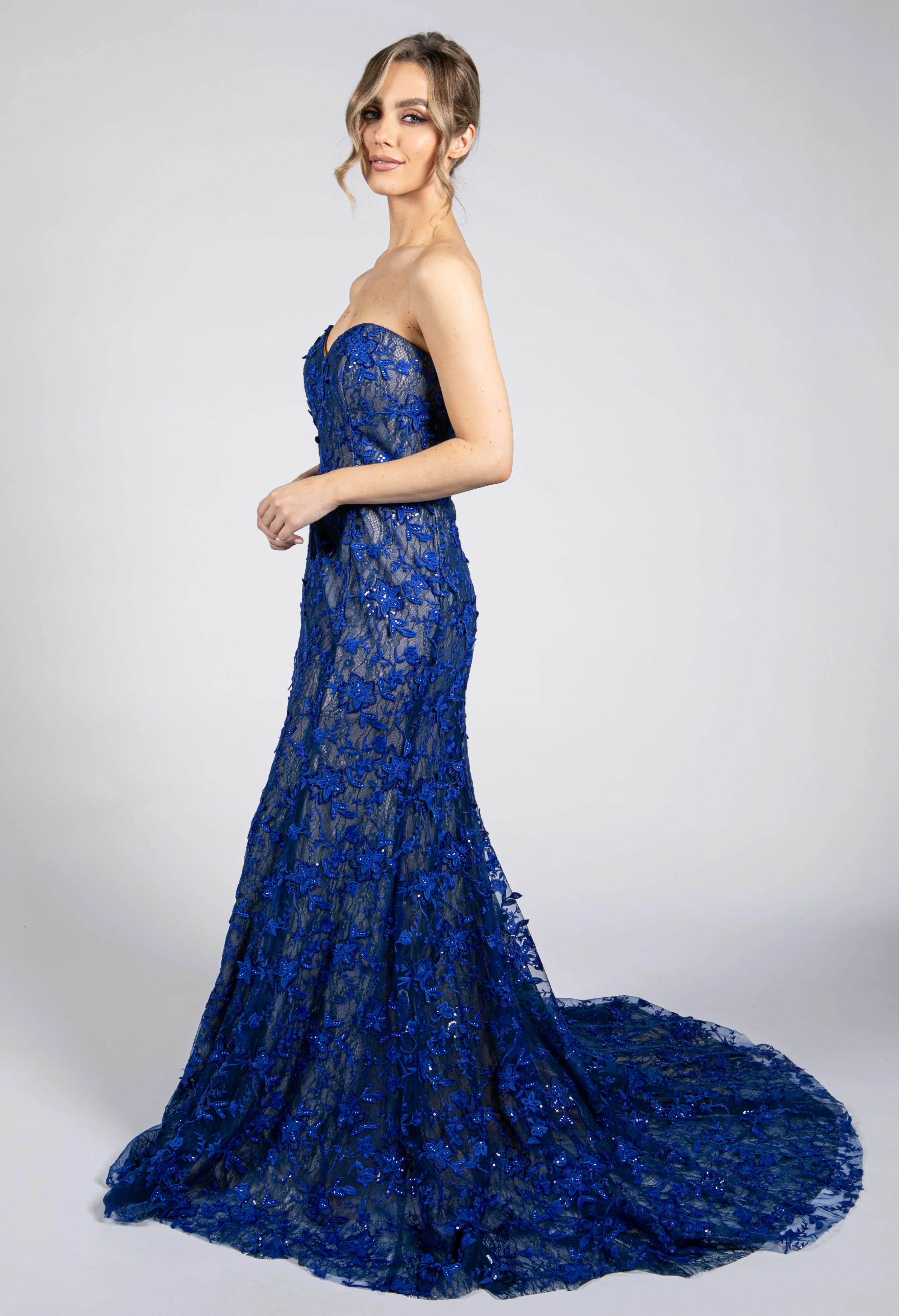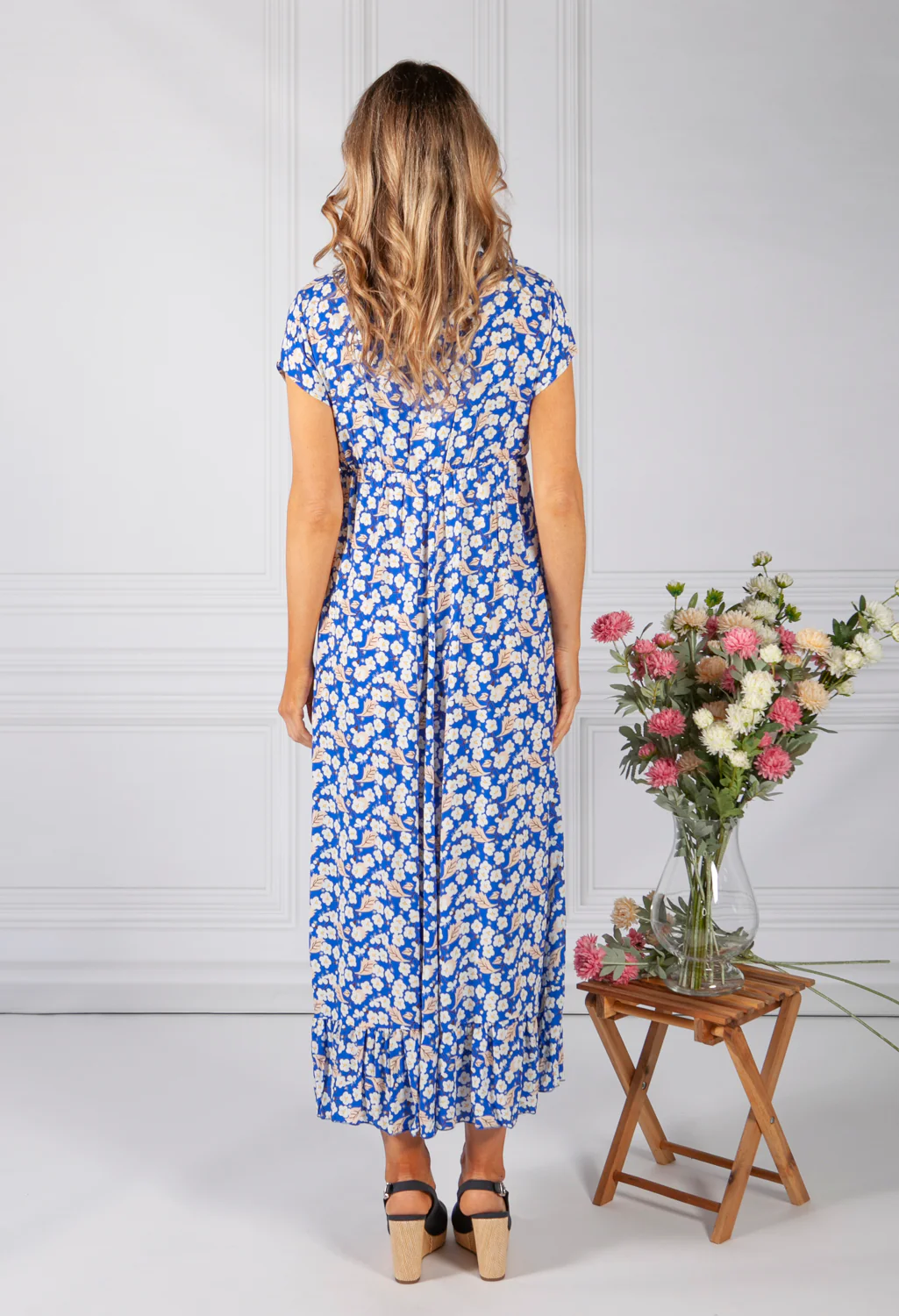 Royal Blue Floral Tiered Dress