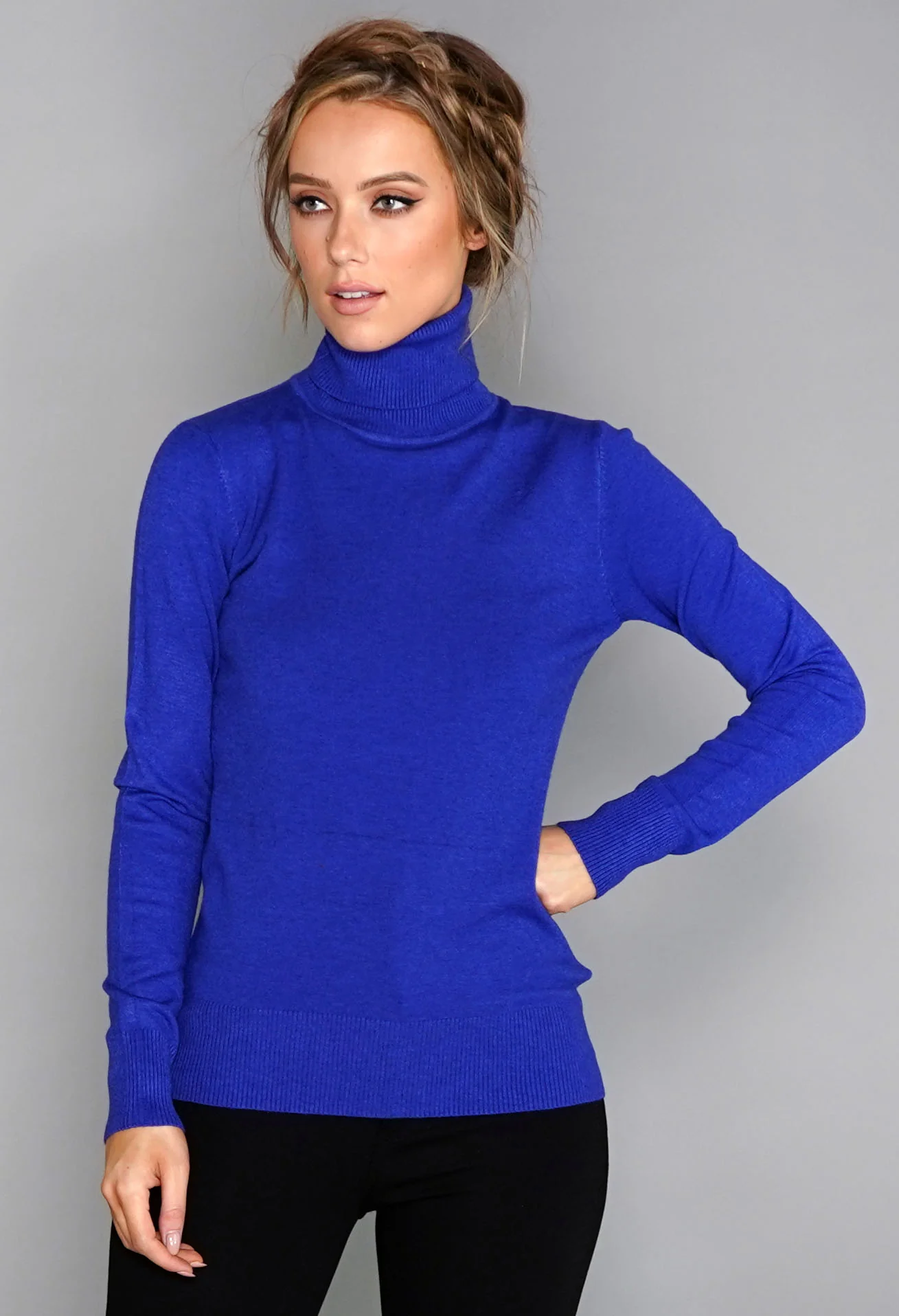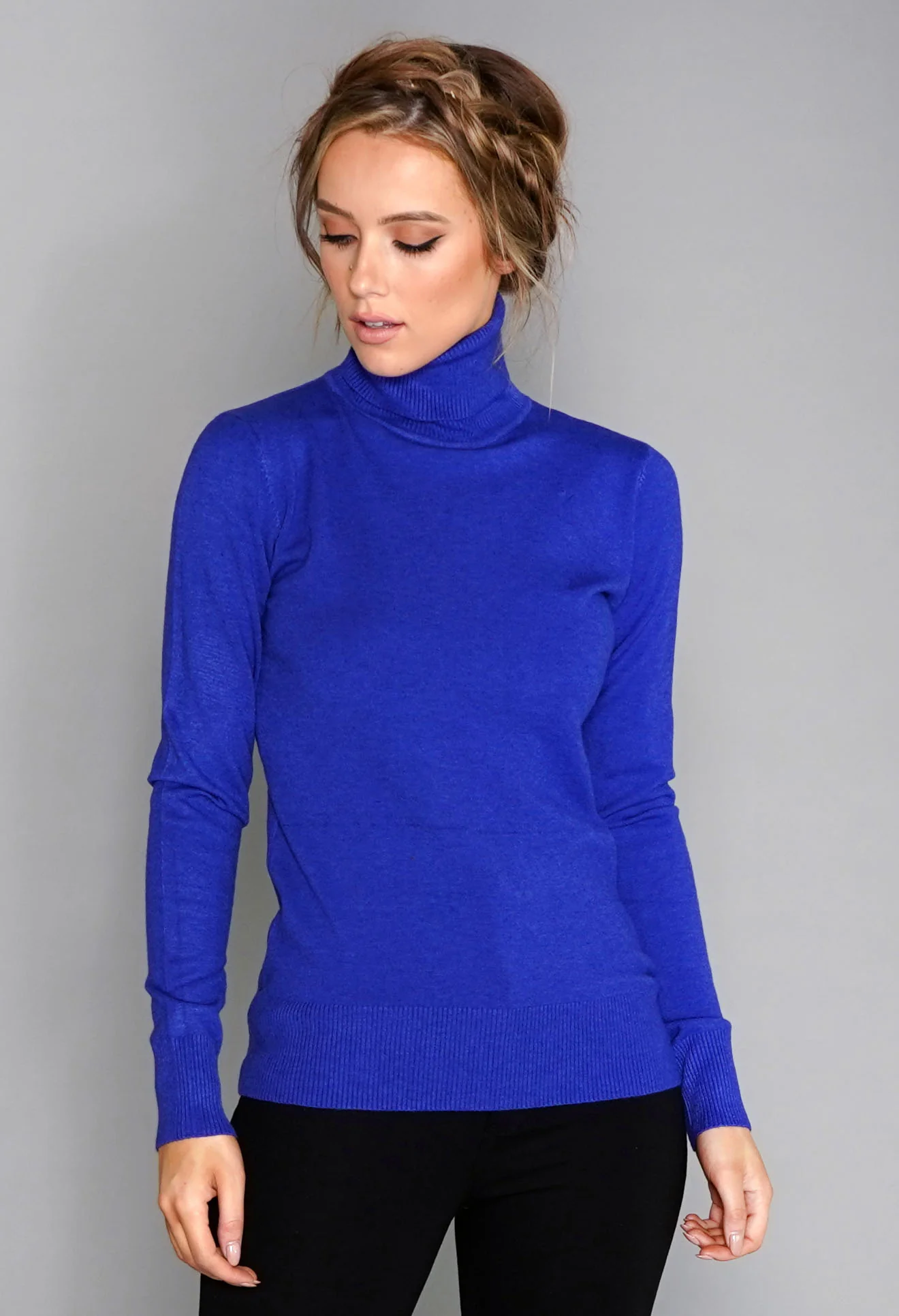 Royal Blue Cashmere Mix Polo Neck