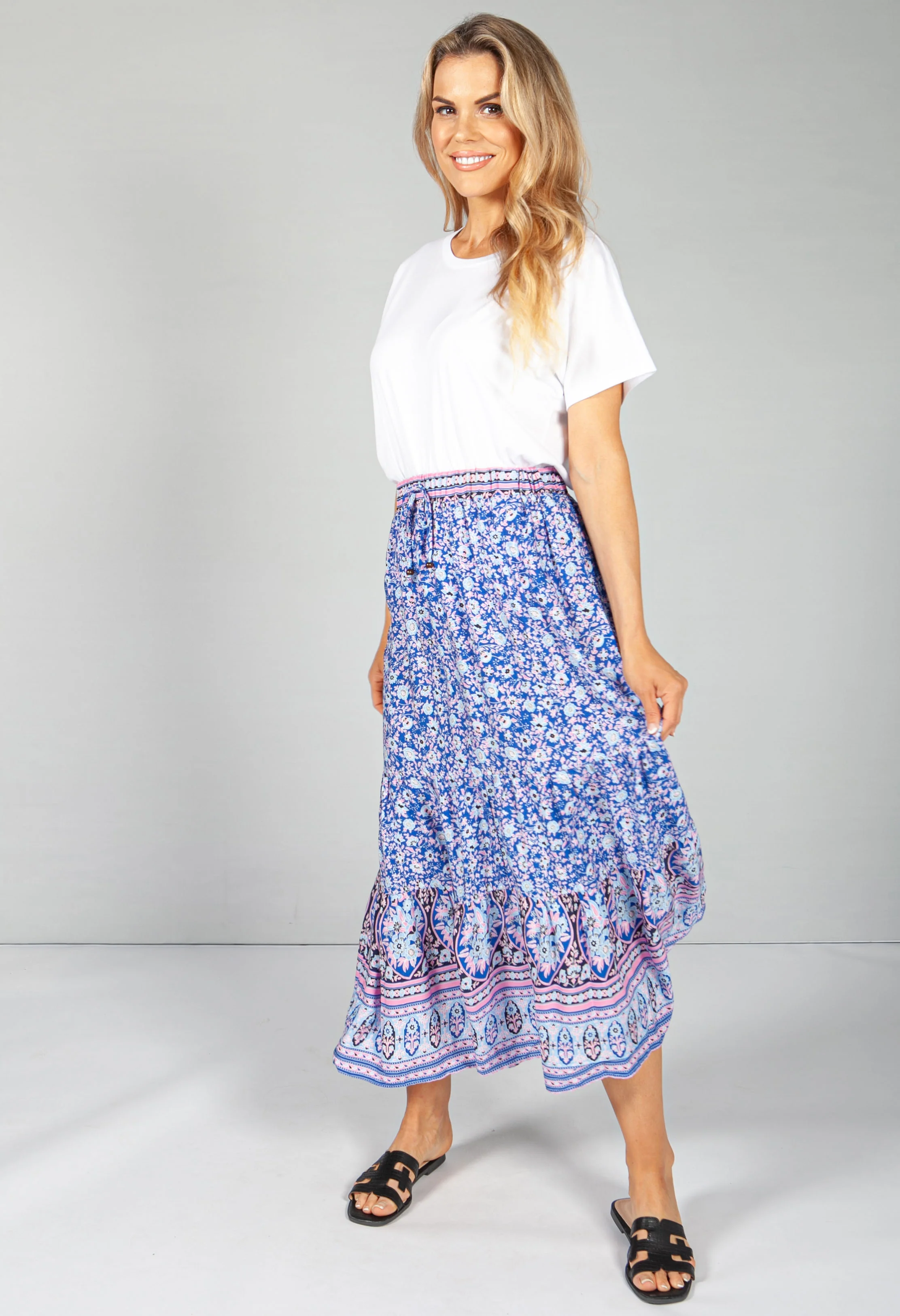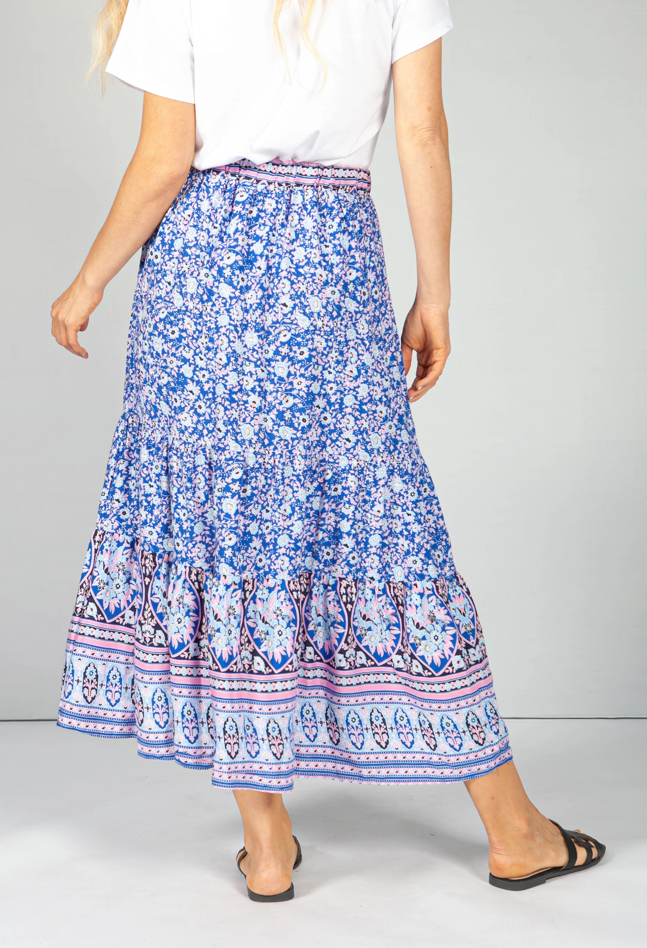 Royal Blue Blossom Print Skirt