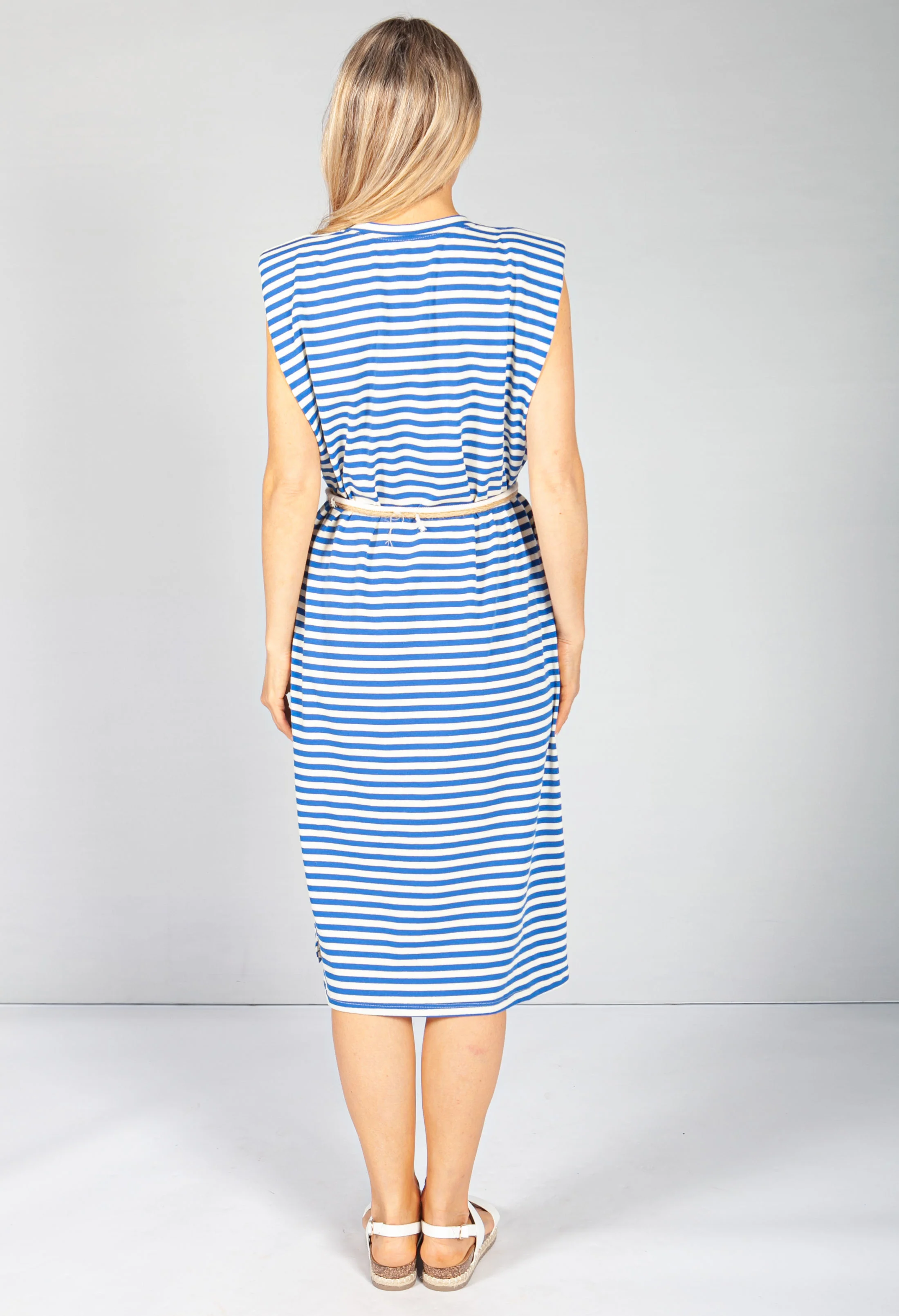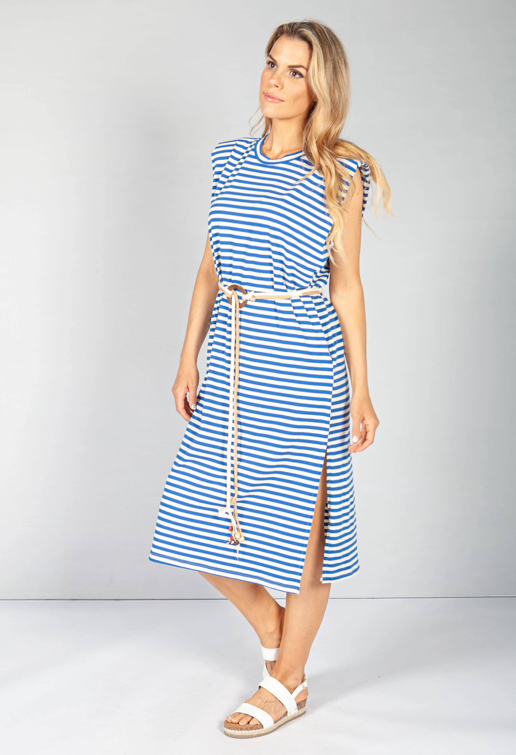 Royal Blue Stripe Belted Dress
