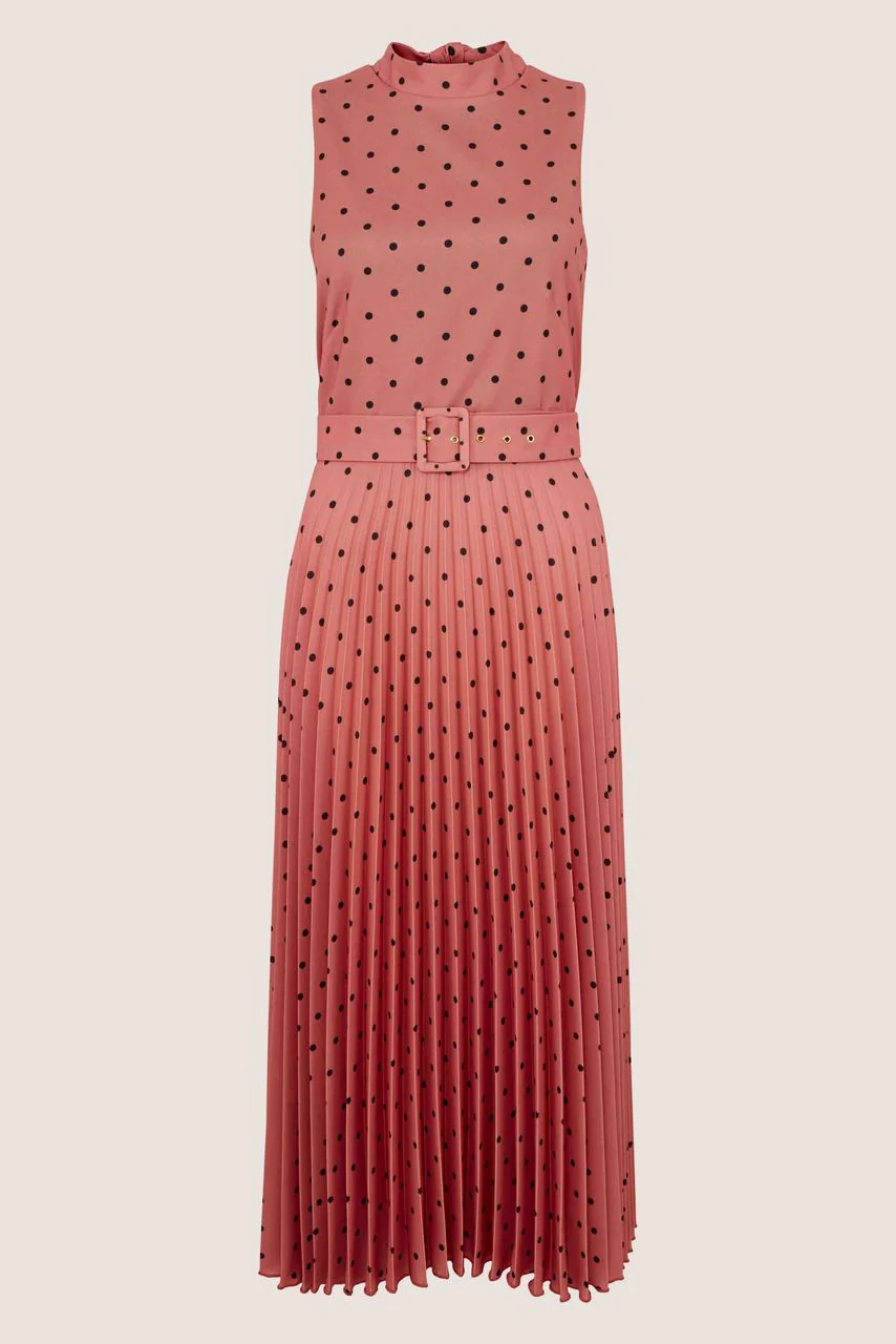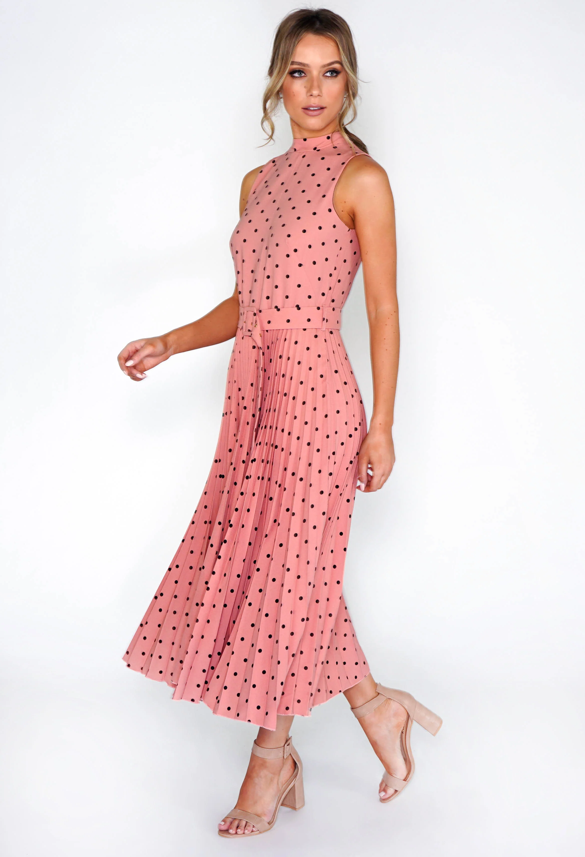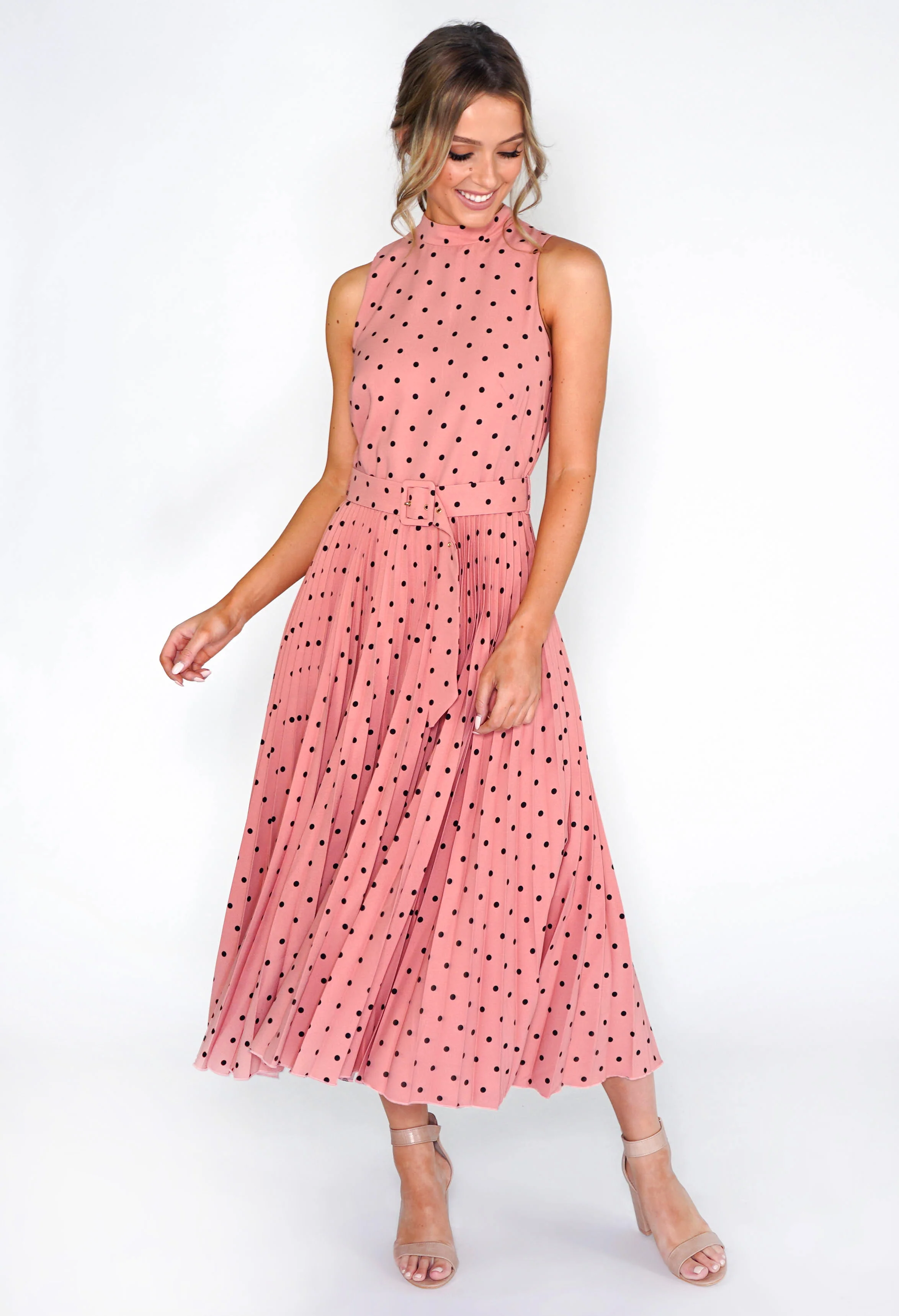 ROSE POLKA DOT PLEATED MIDI DRESS
