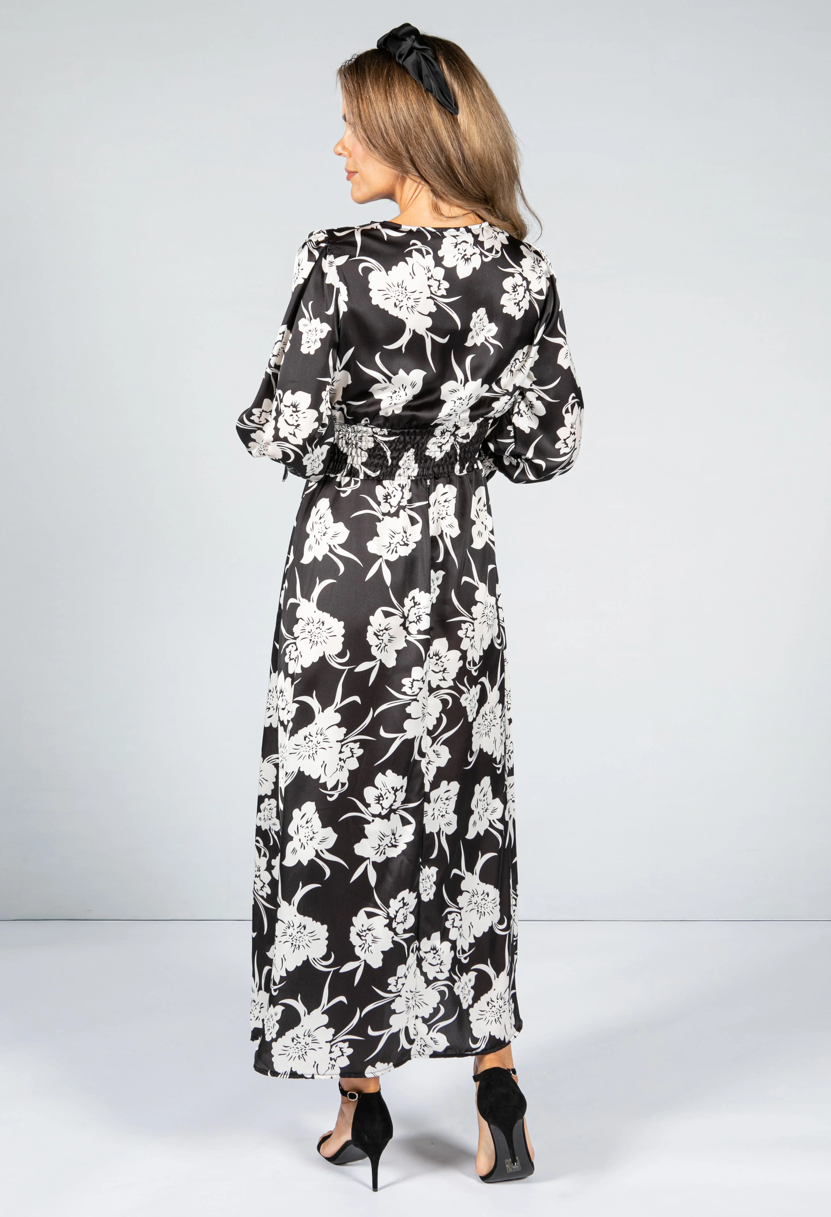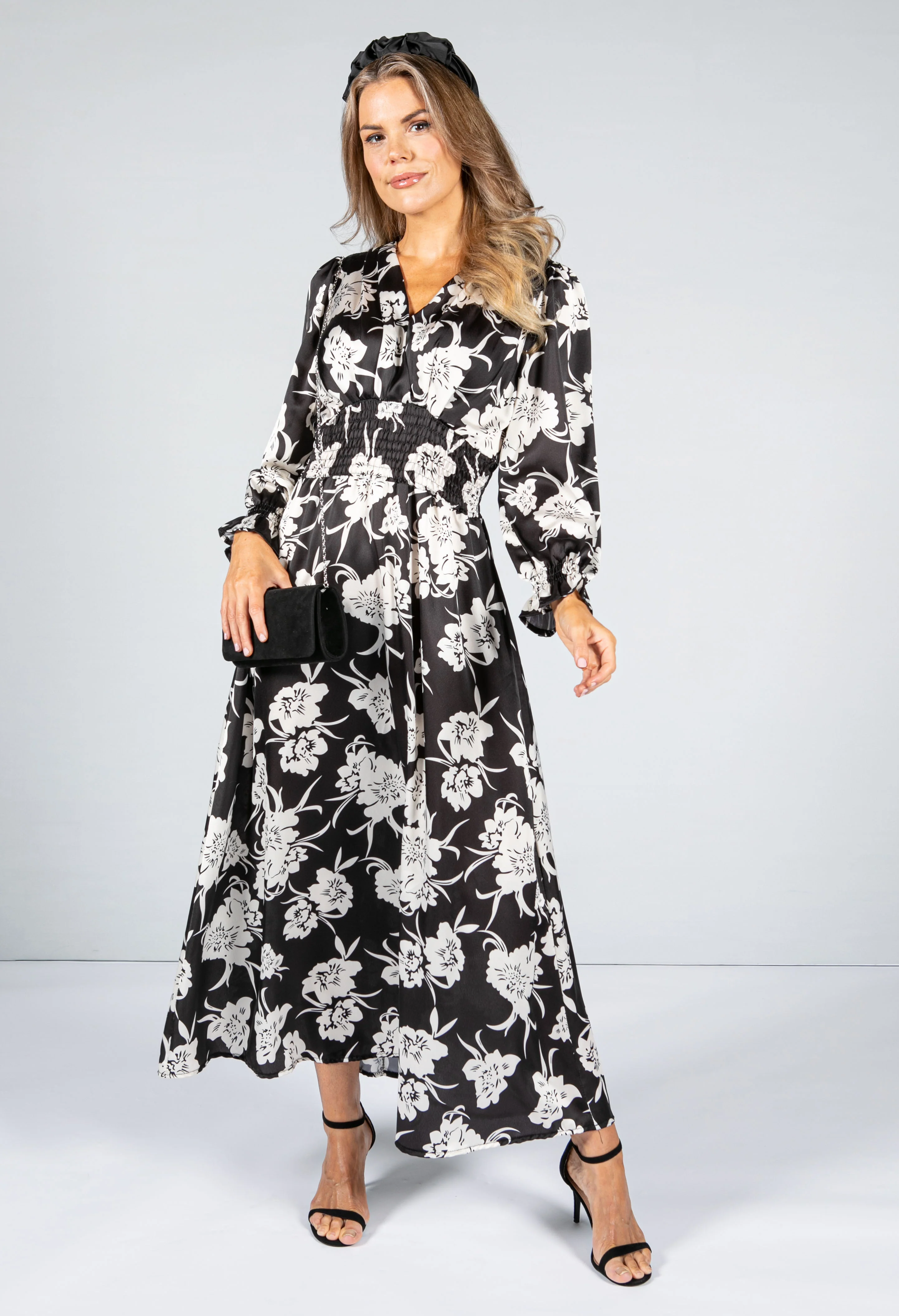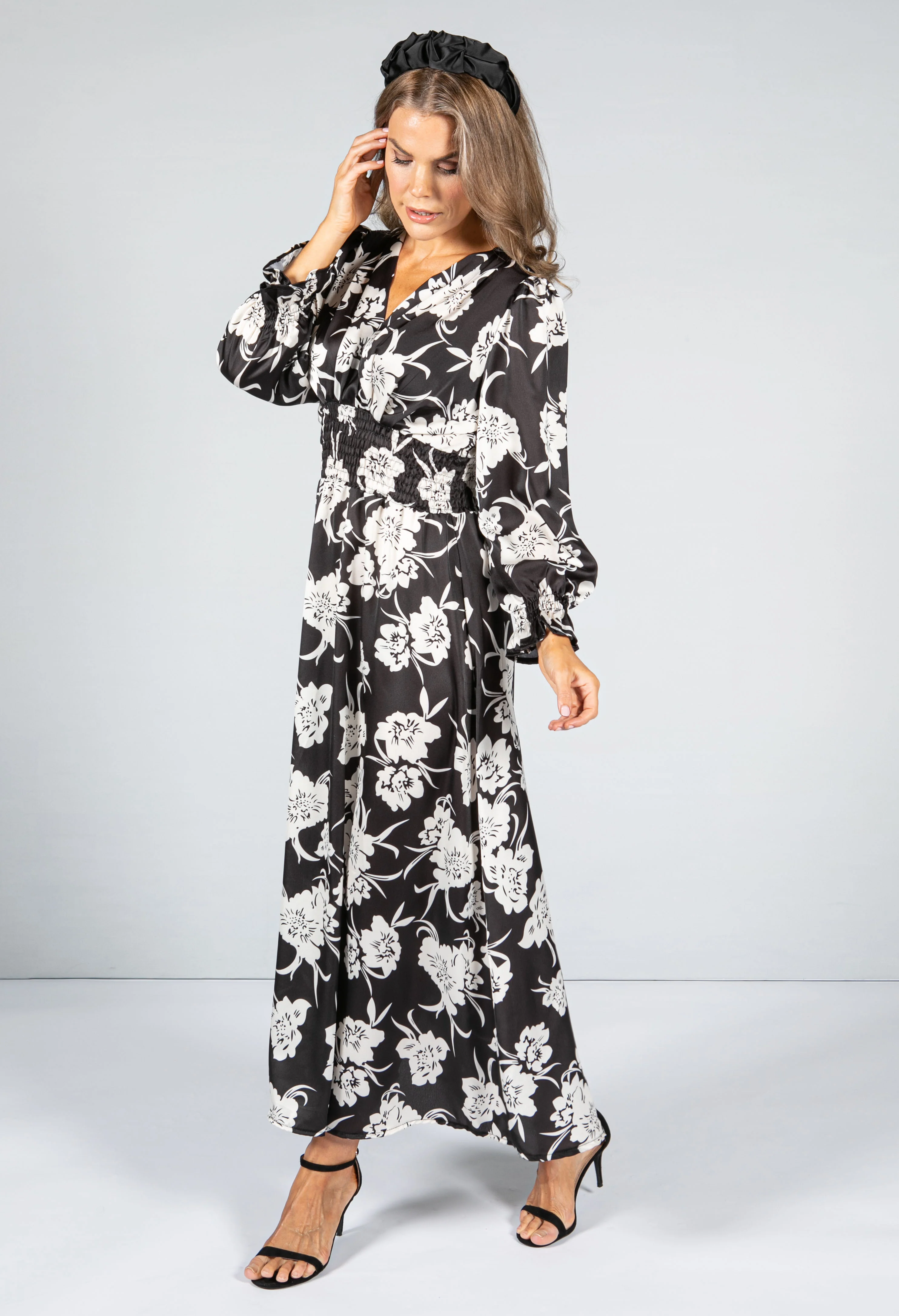 Rose Blossom Silk Feel Dress with Smocking Waist