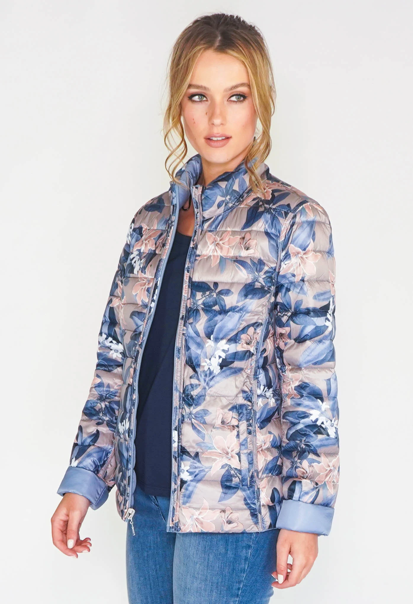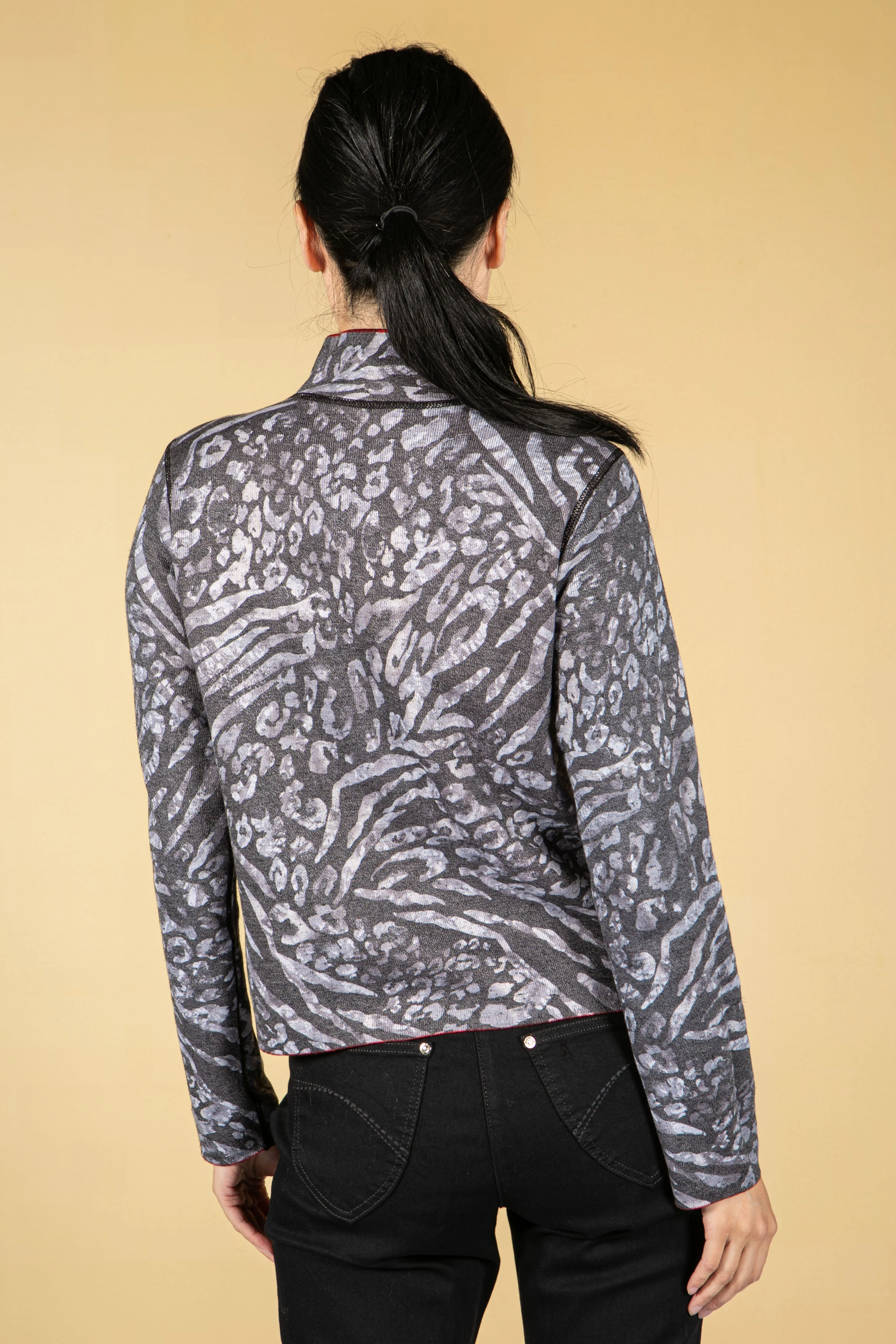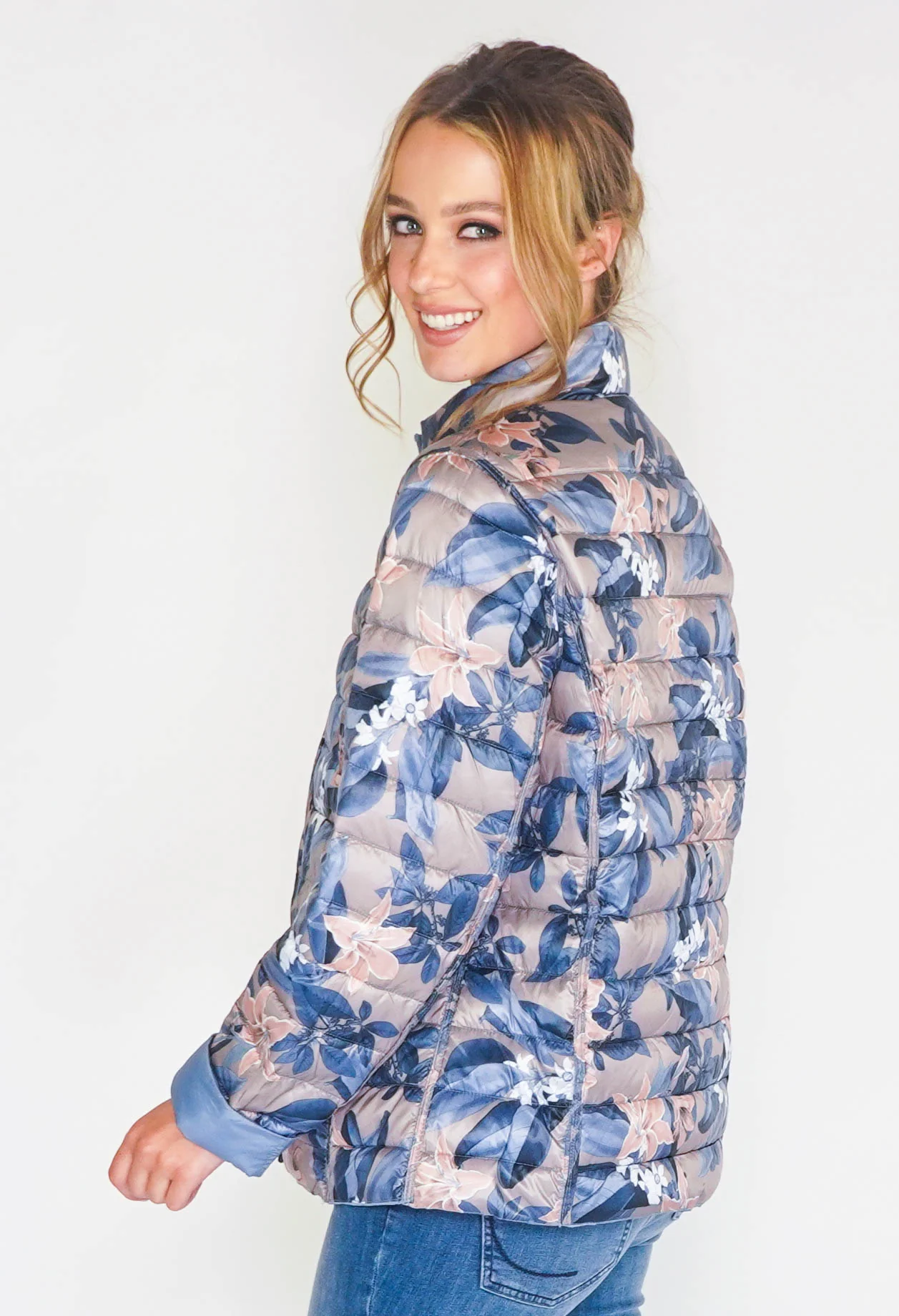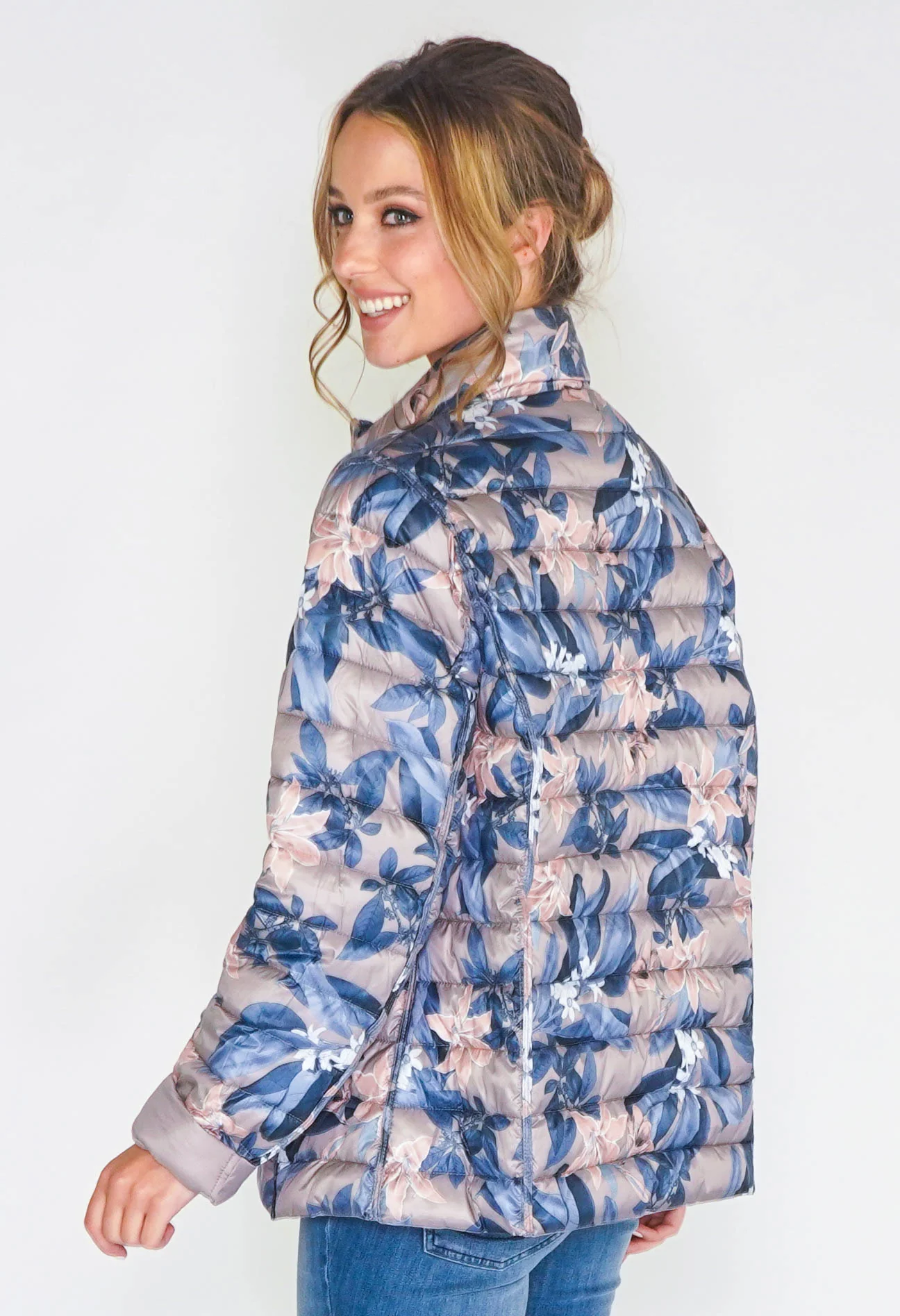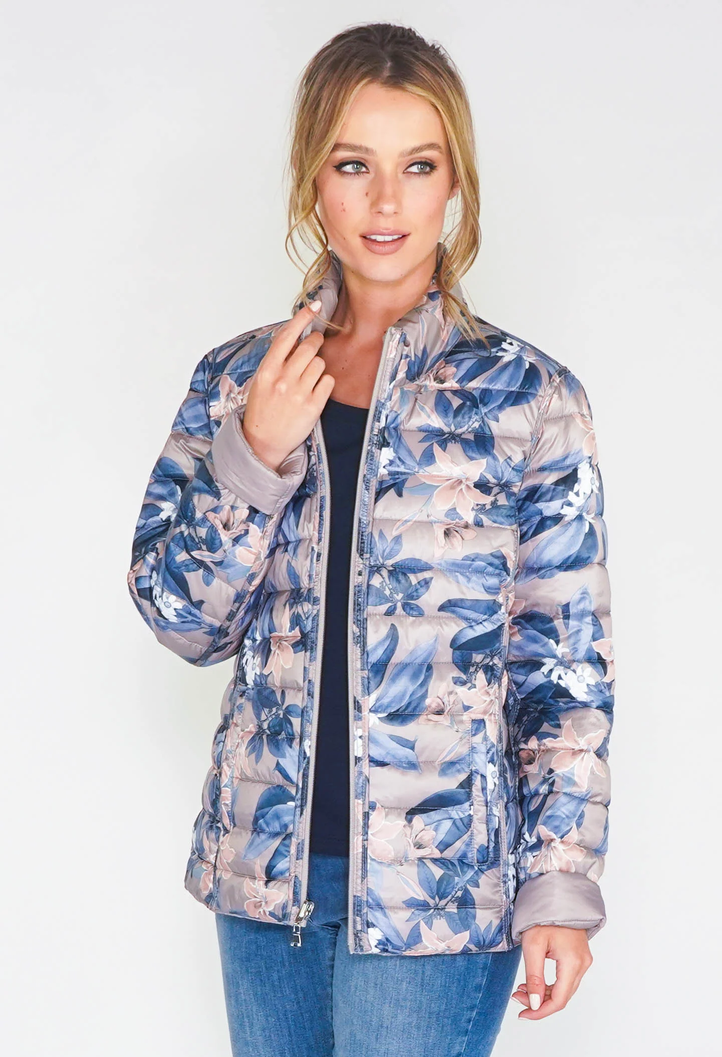 Reversible Quilted Long Coat in Orange/Animal Check Print