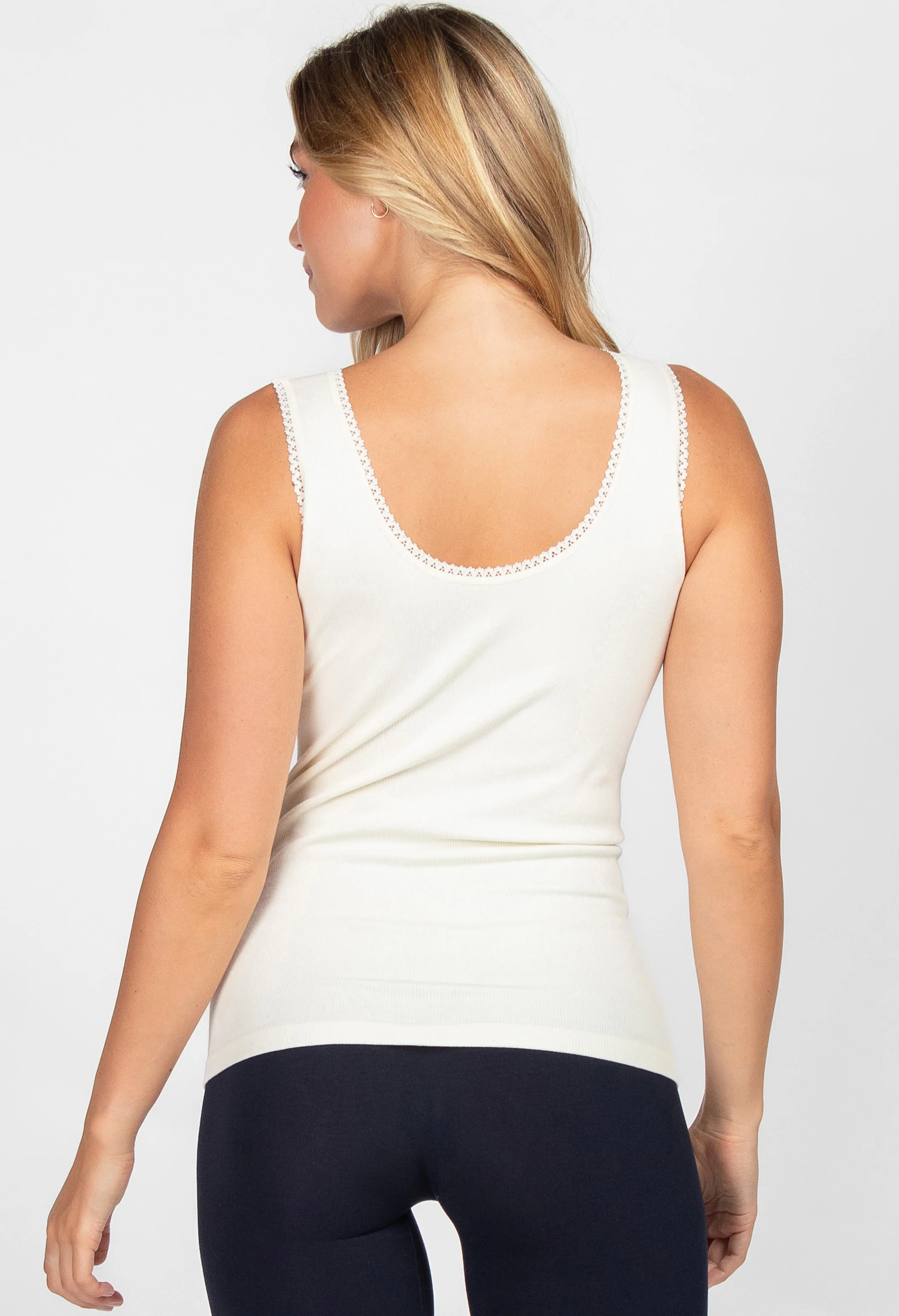Reversible Ribbed V-Scoop Tank with Lace Trim