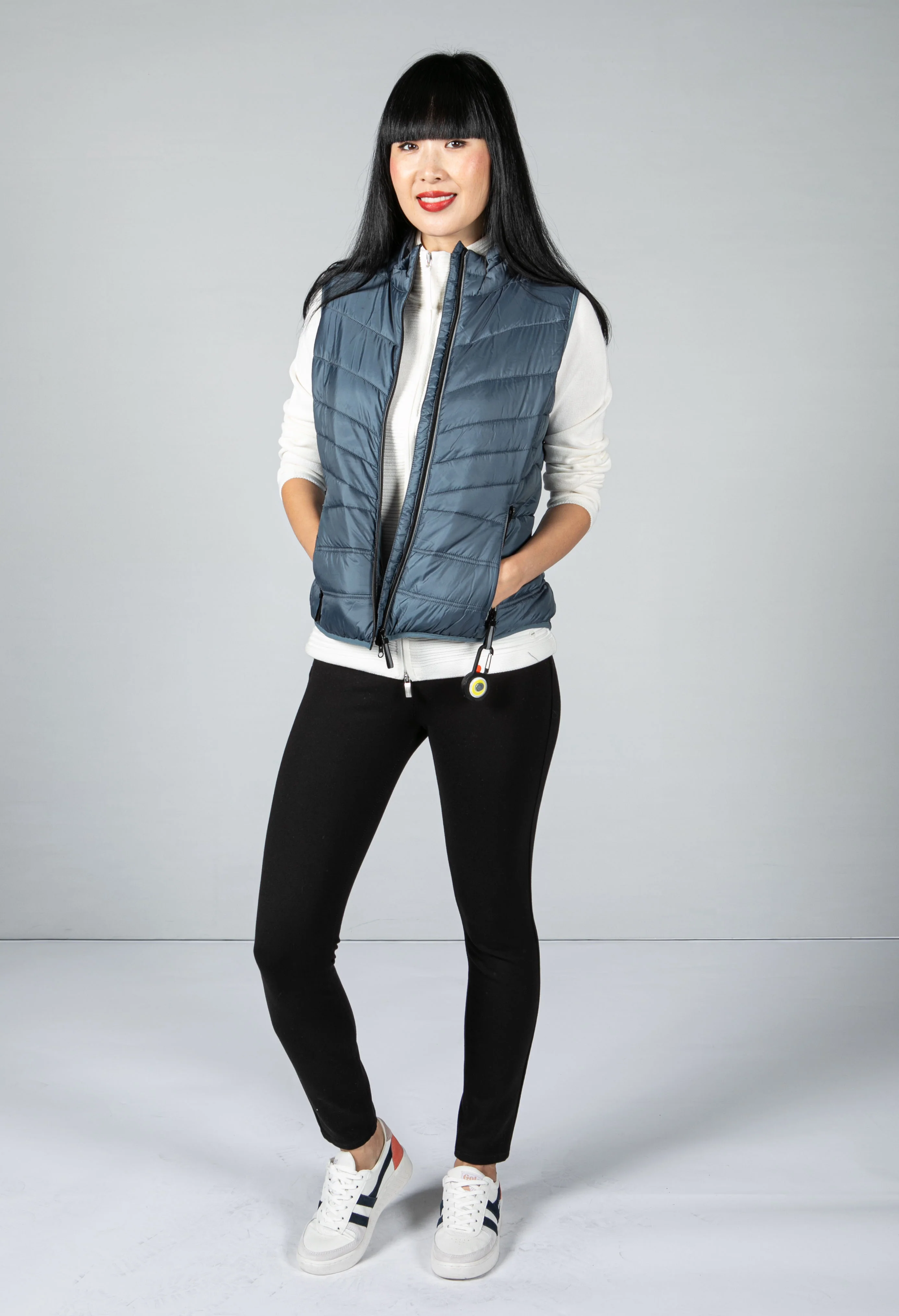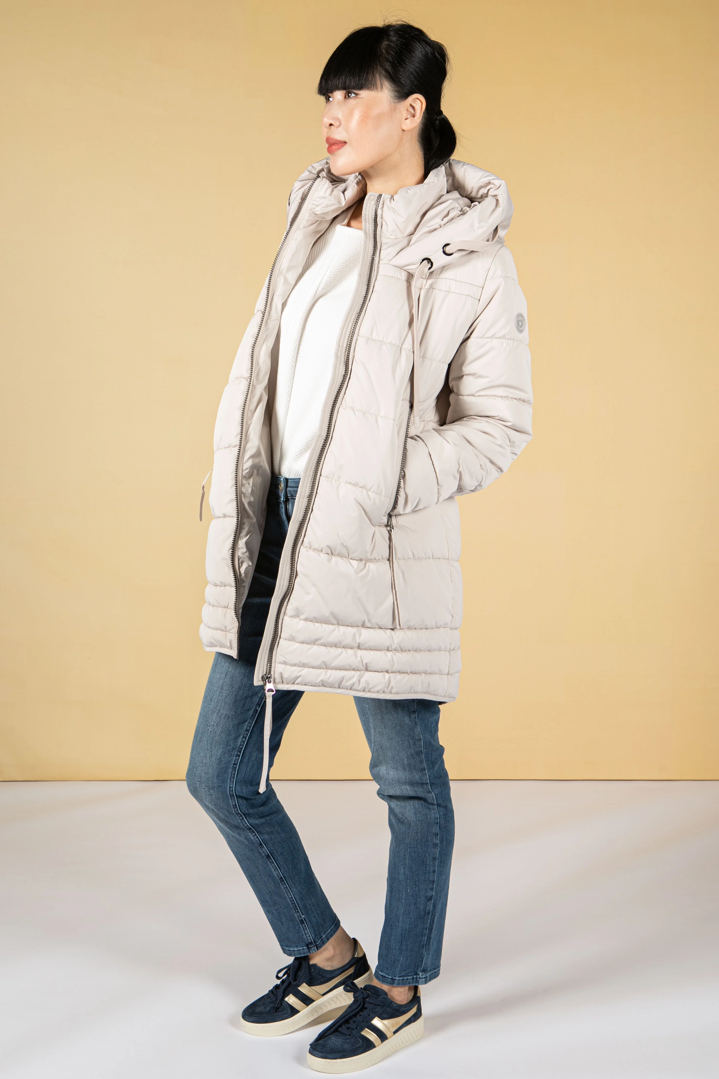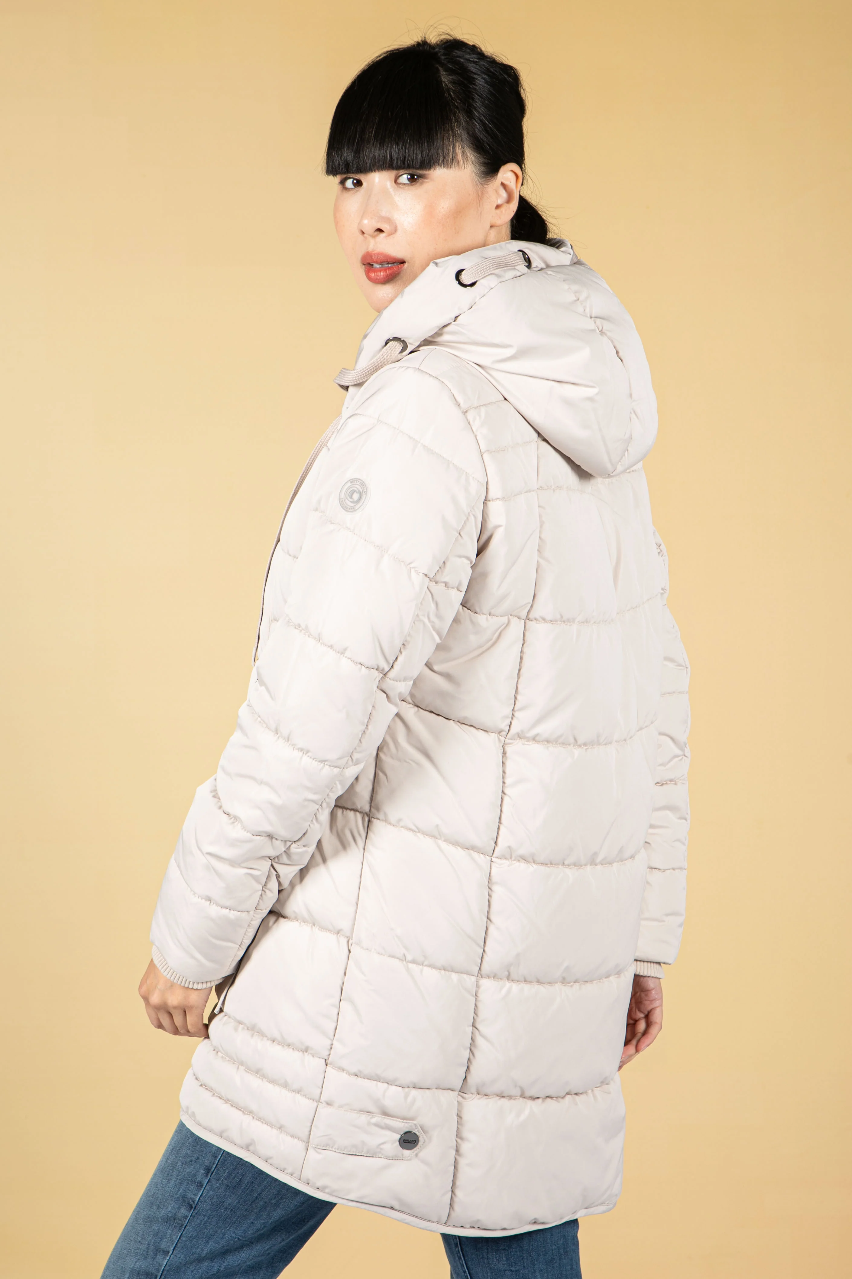 Quilted Down-Filled Gilet with Detachable Hood in Beige