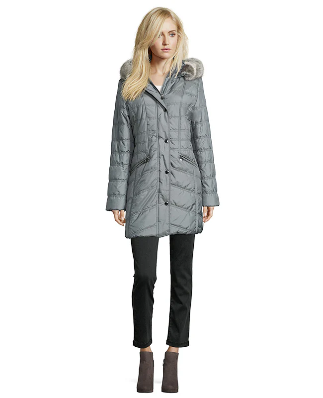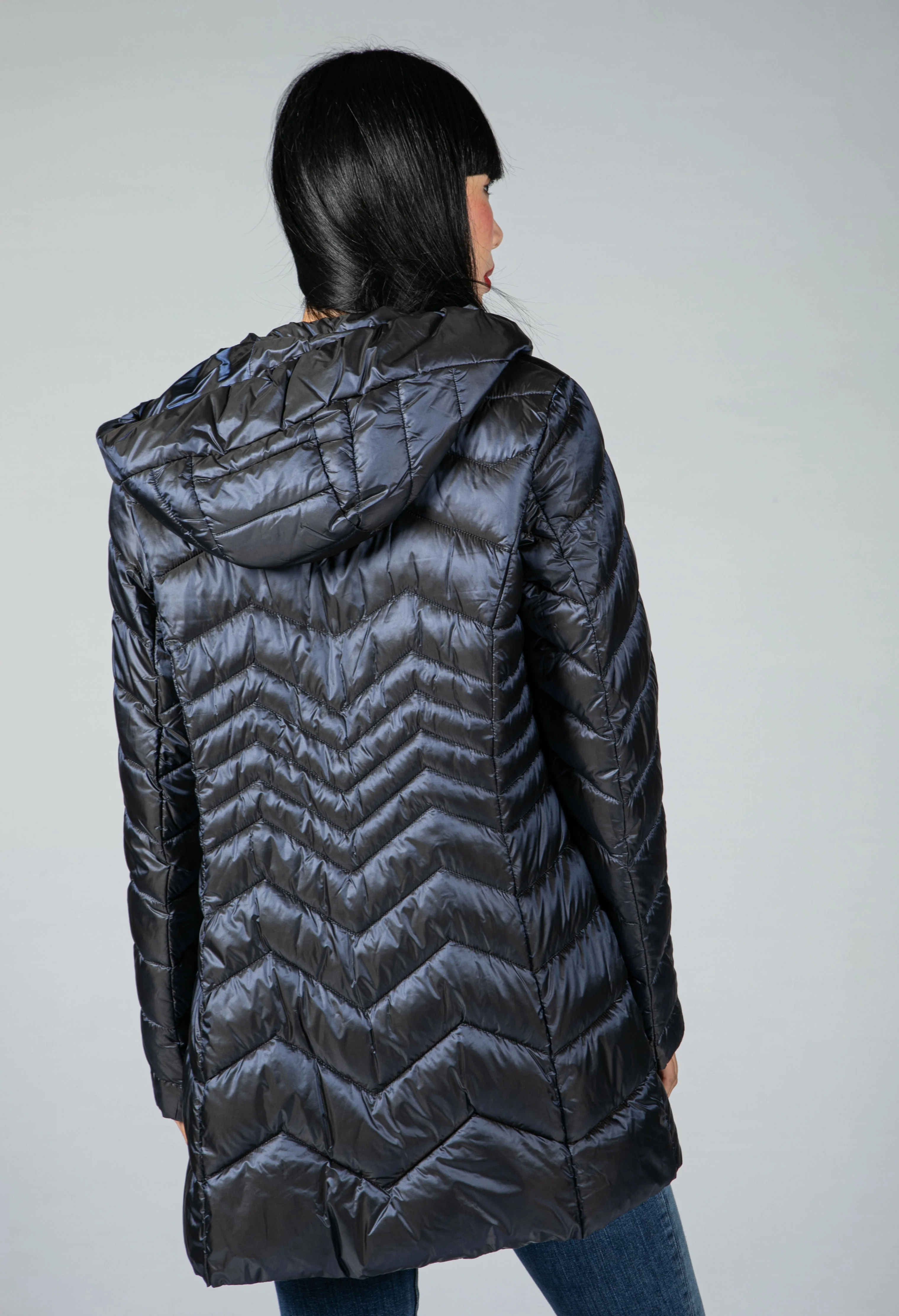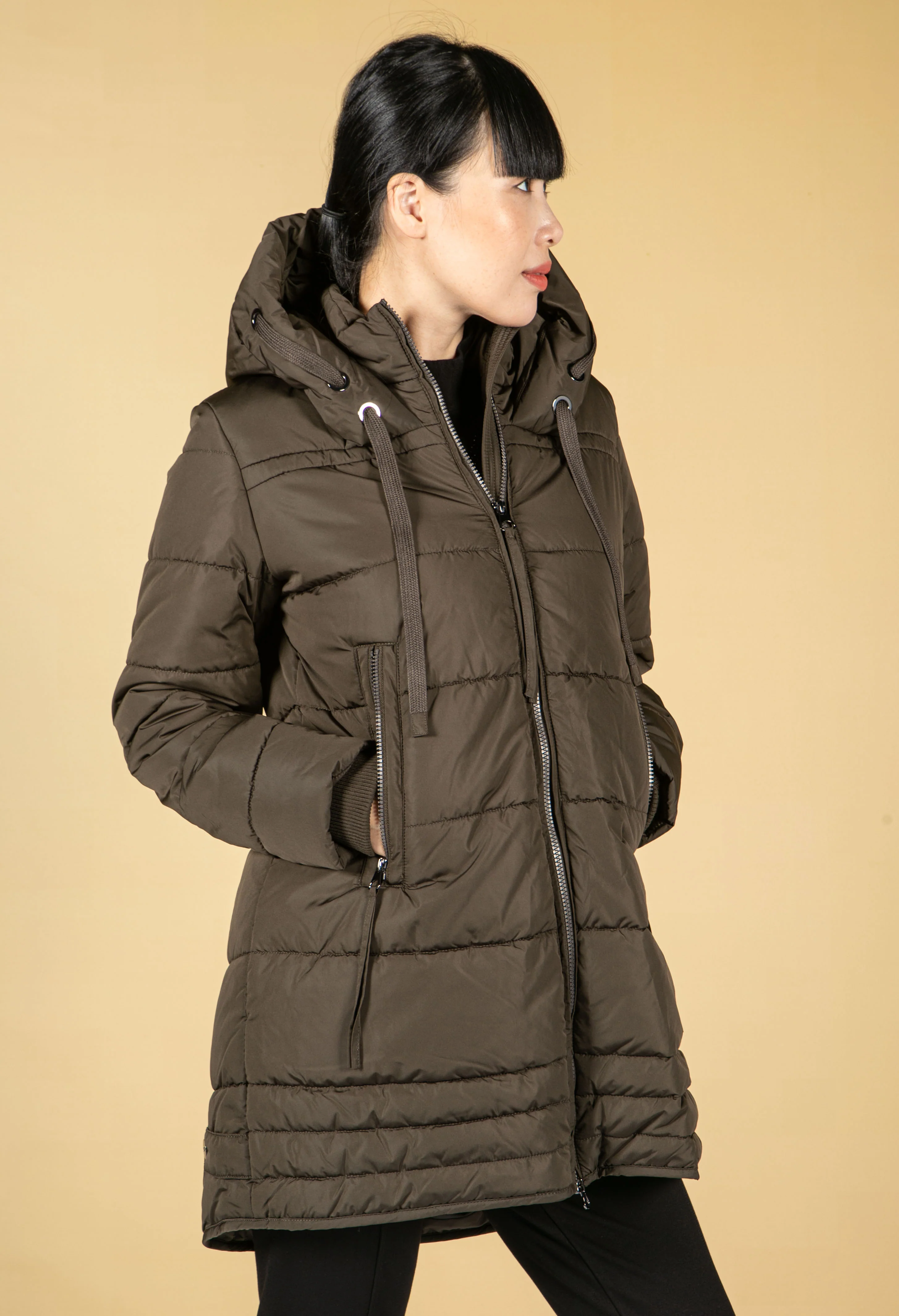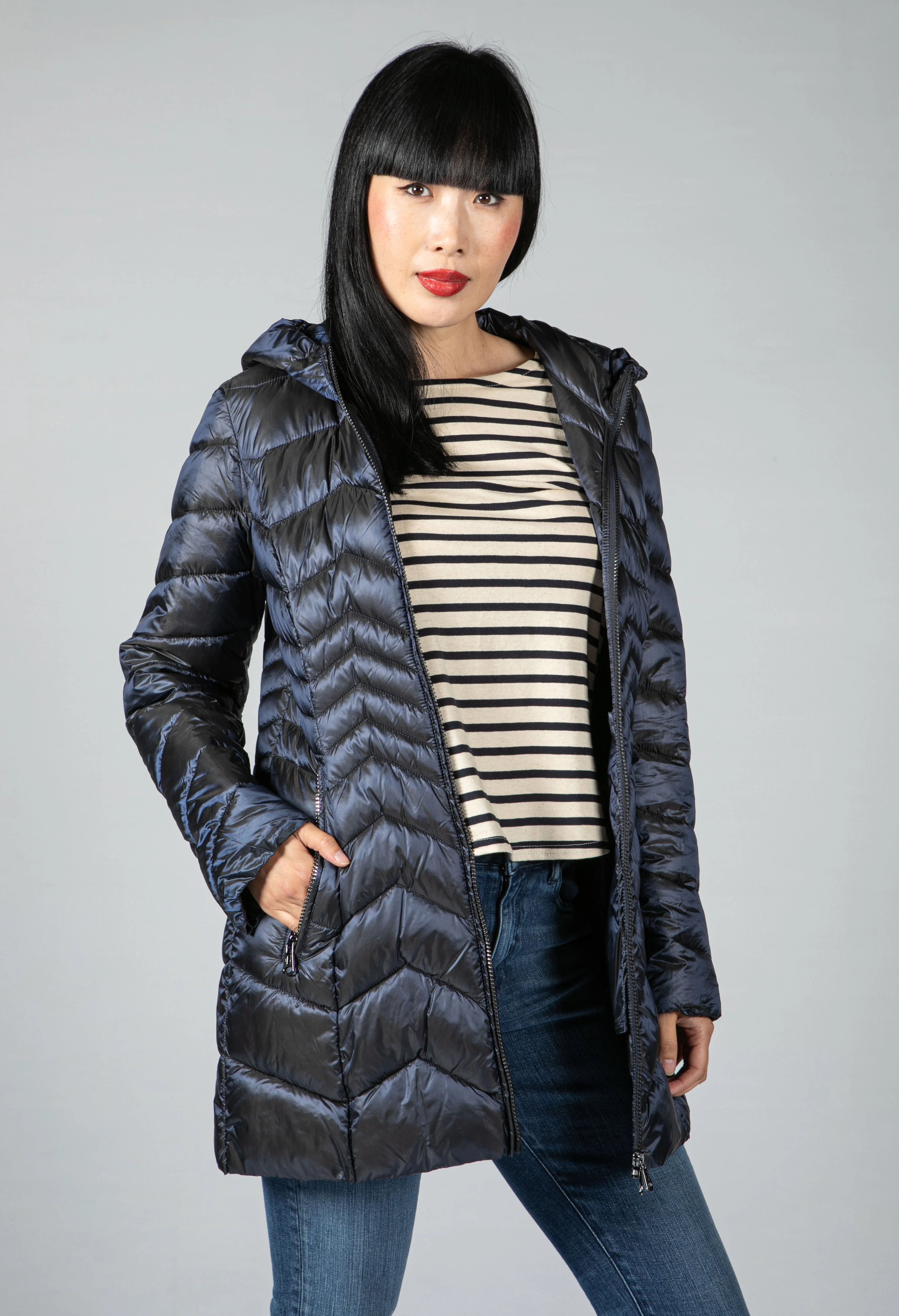 Quilted Down-Filled Gilet with Detachable Hood in Beige