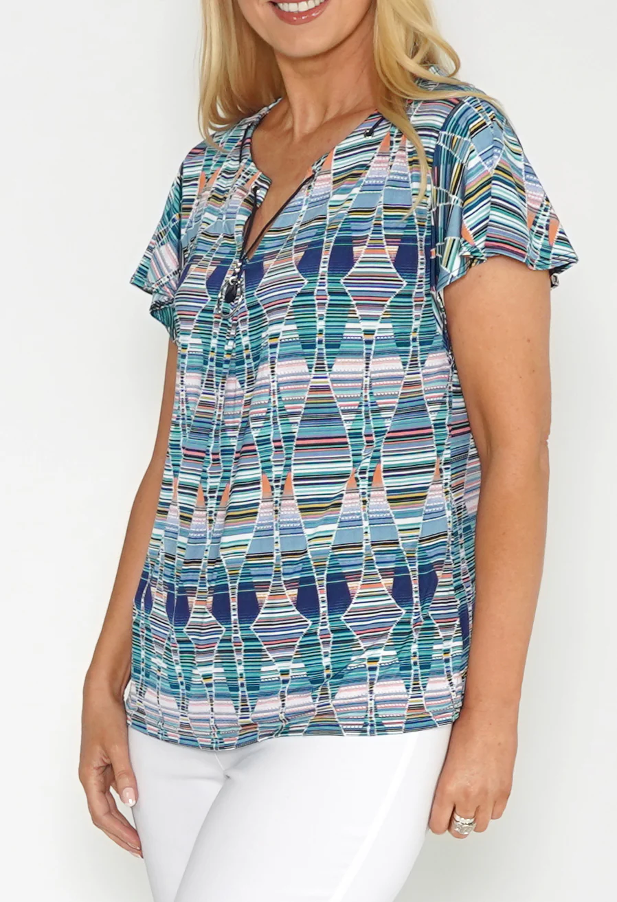 PRINTED TOP WITH ELASTICATED WAIST IN ROSE