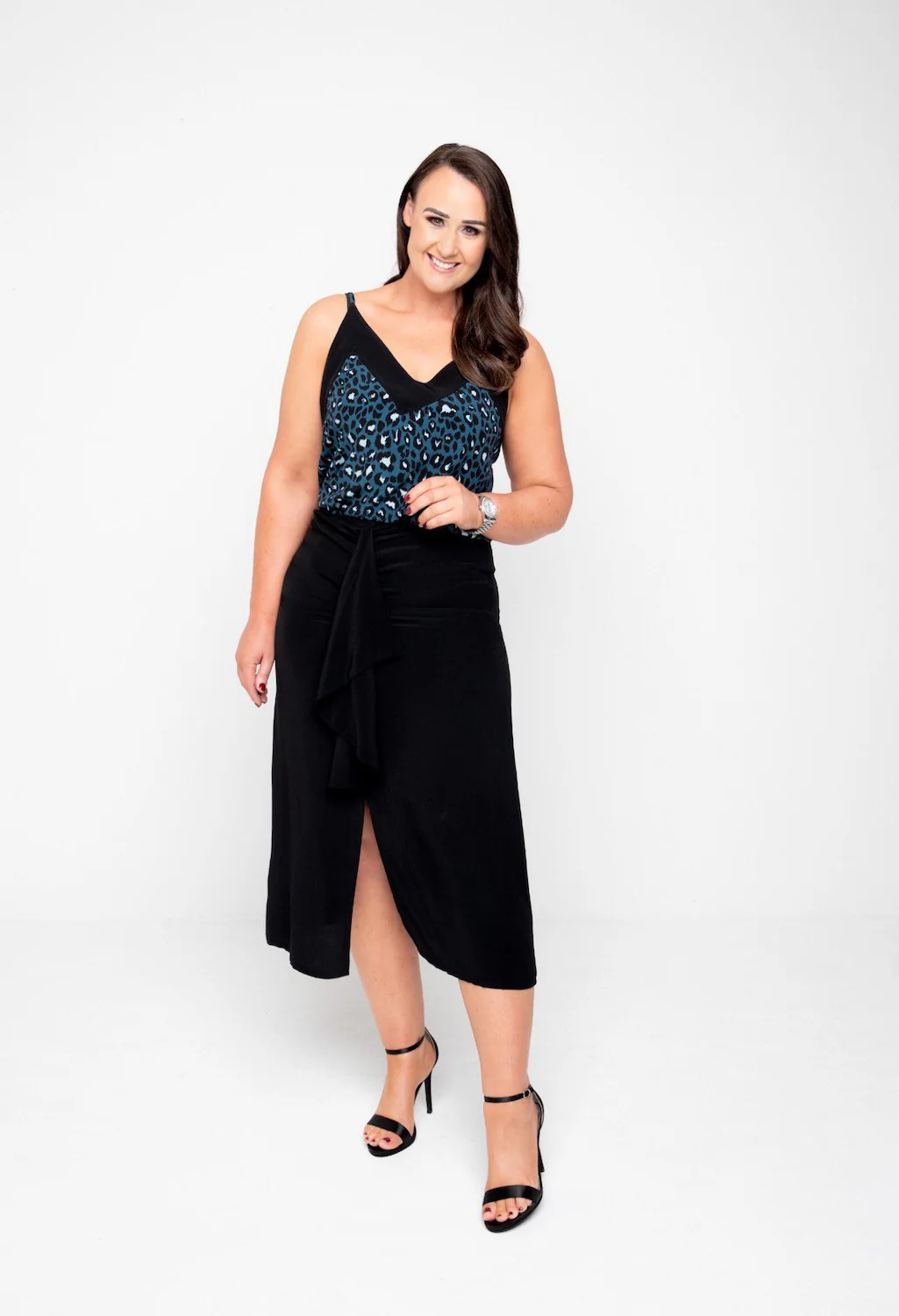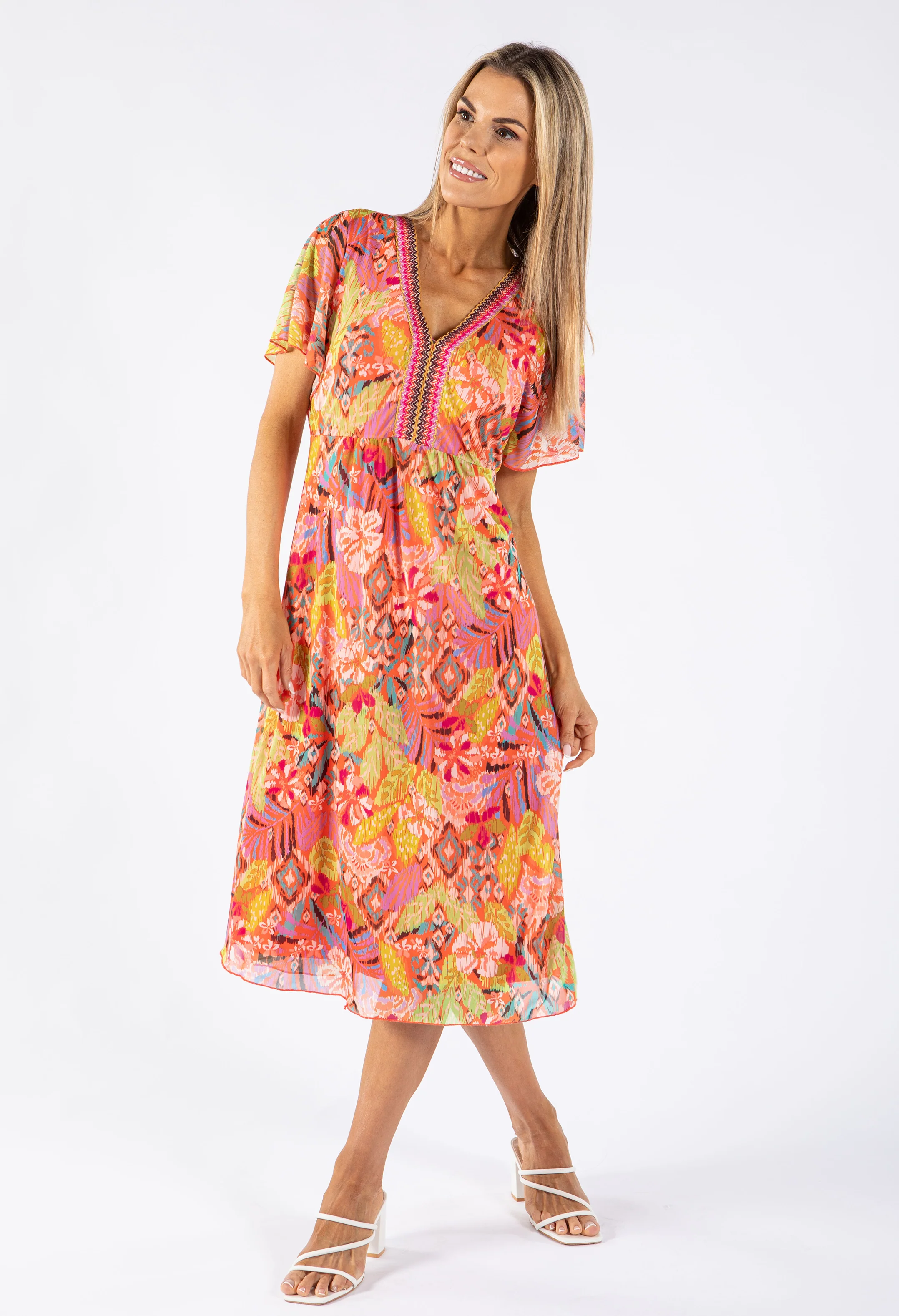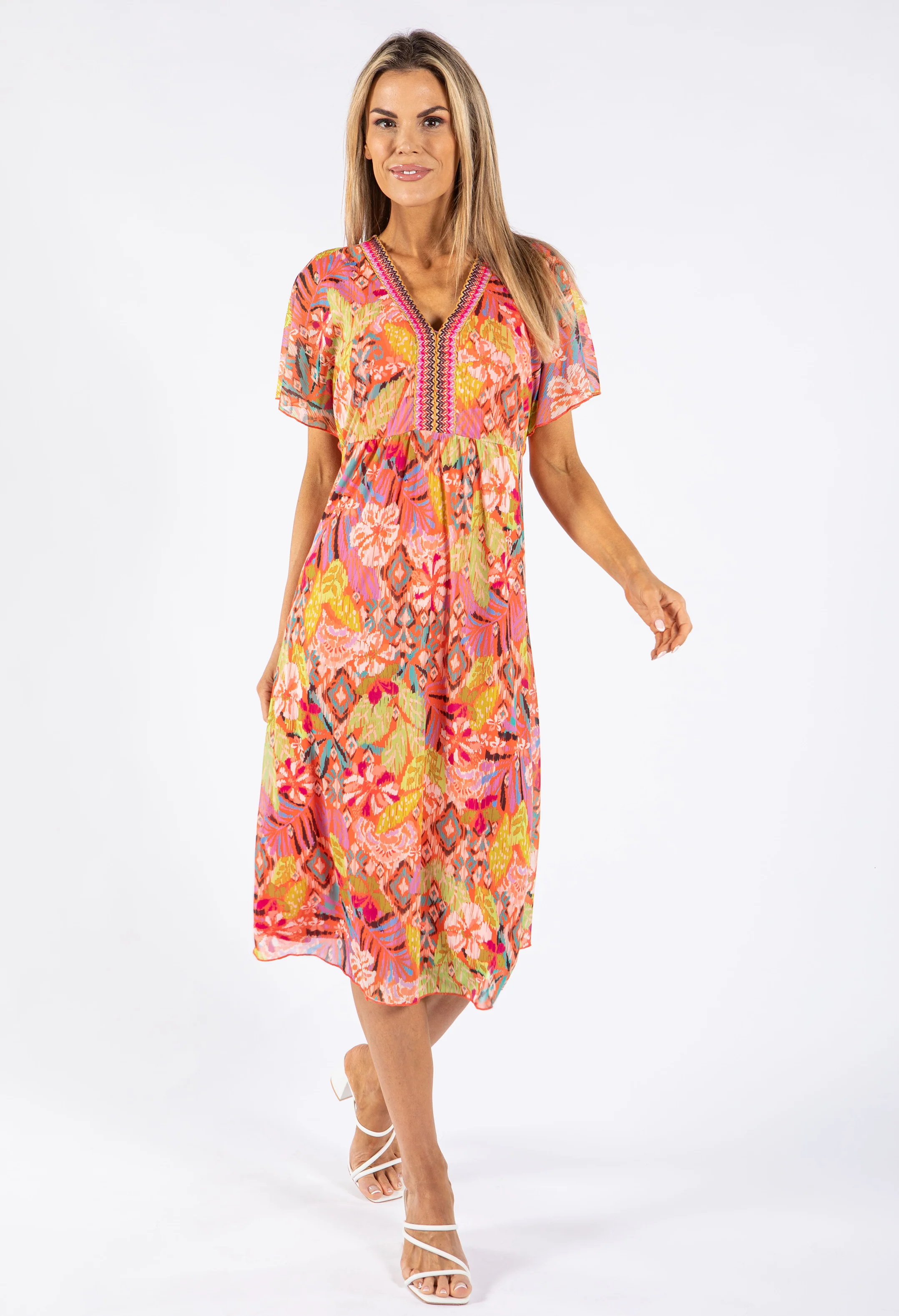 Printed Belt Detail Midi Dress