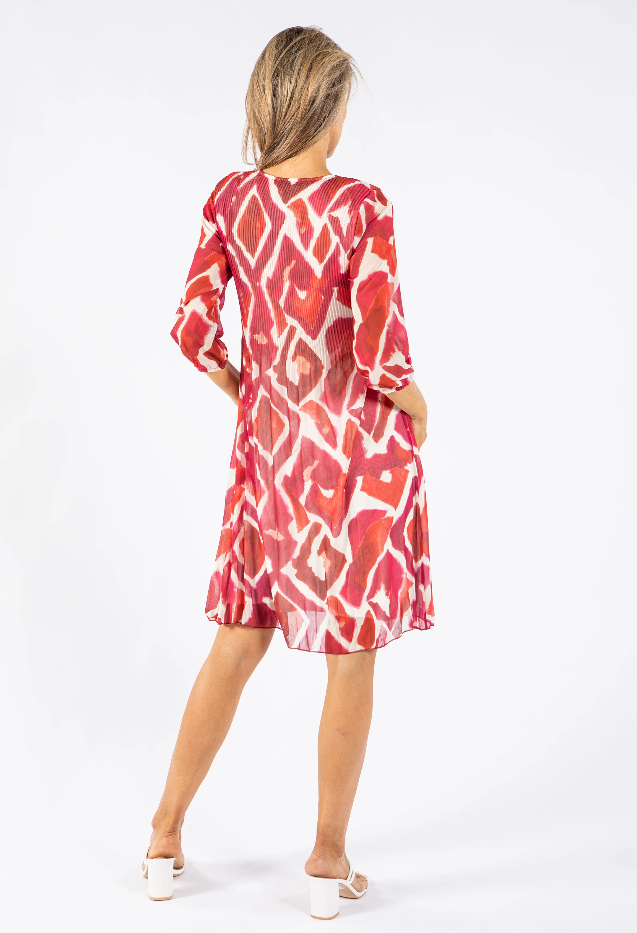 Playful Pink Vintage Print Dress with Smocking Bodice