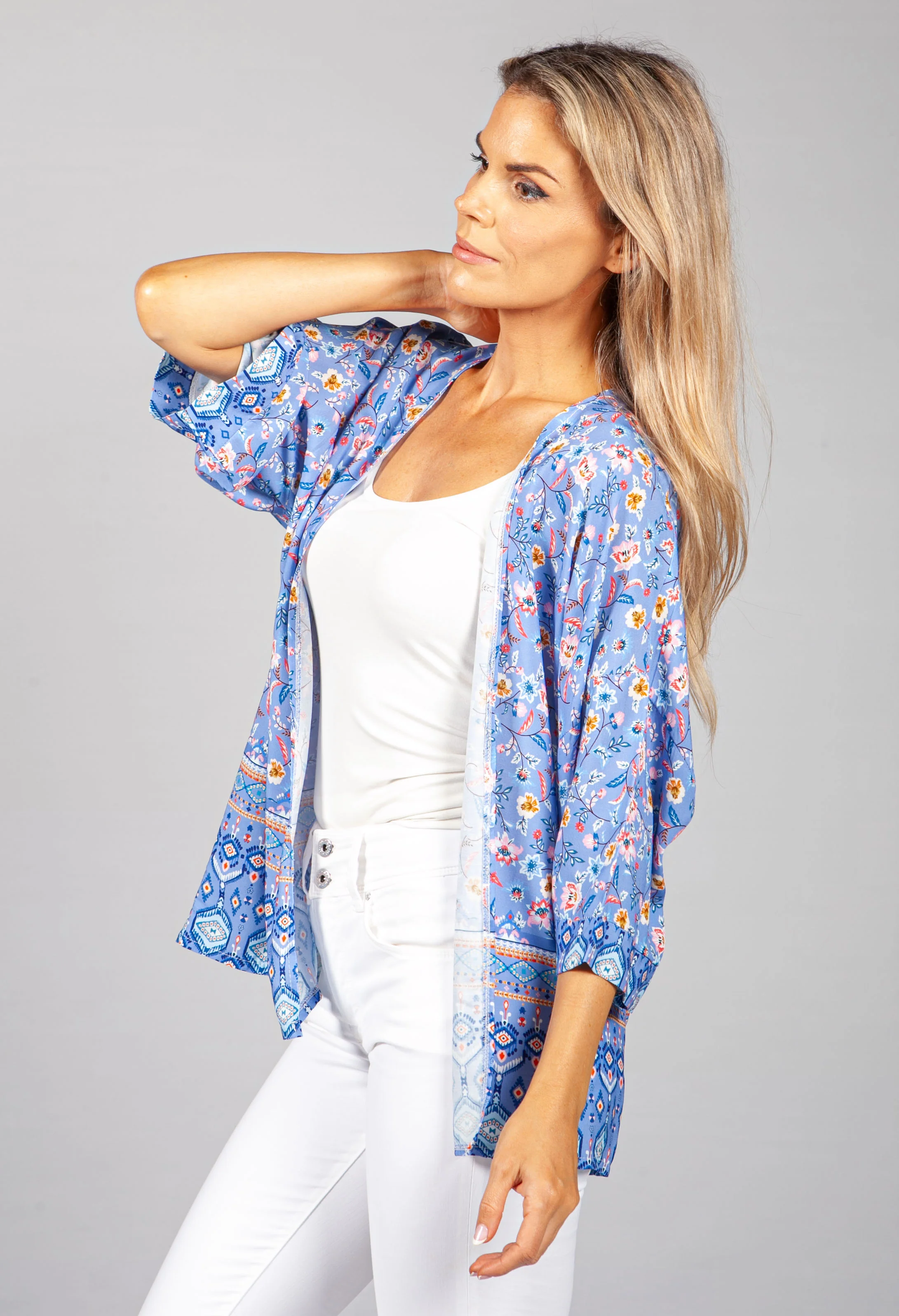 PAMELA SCOTT PAISLEY KIMONO STYLE CARDIGAN IN WHITE