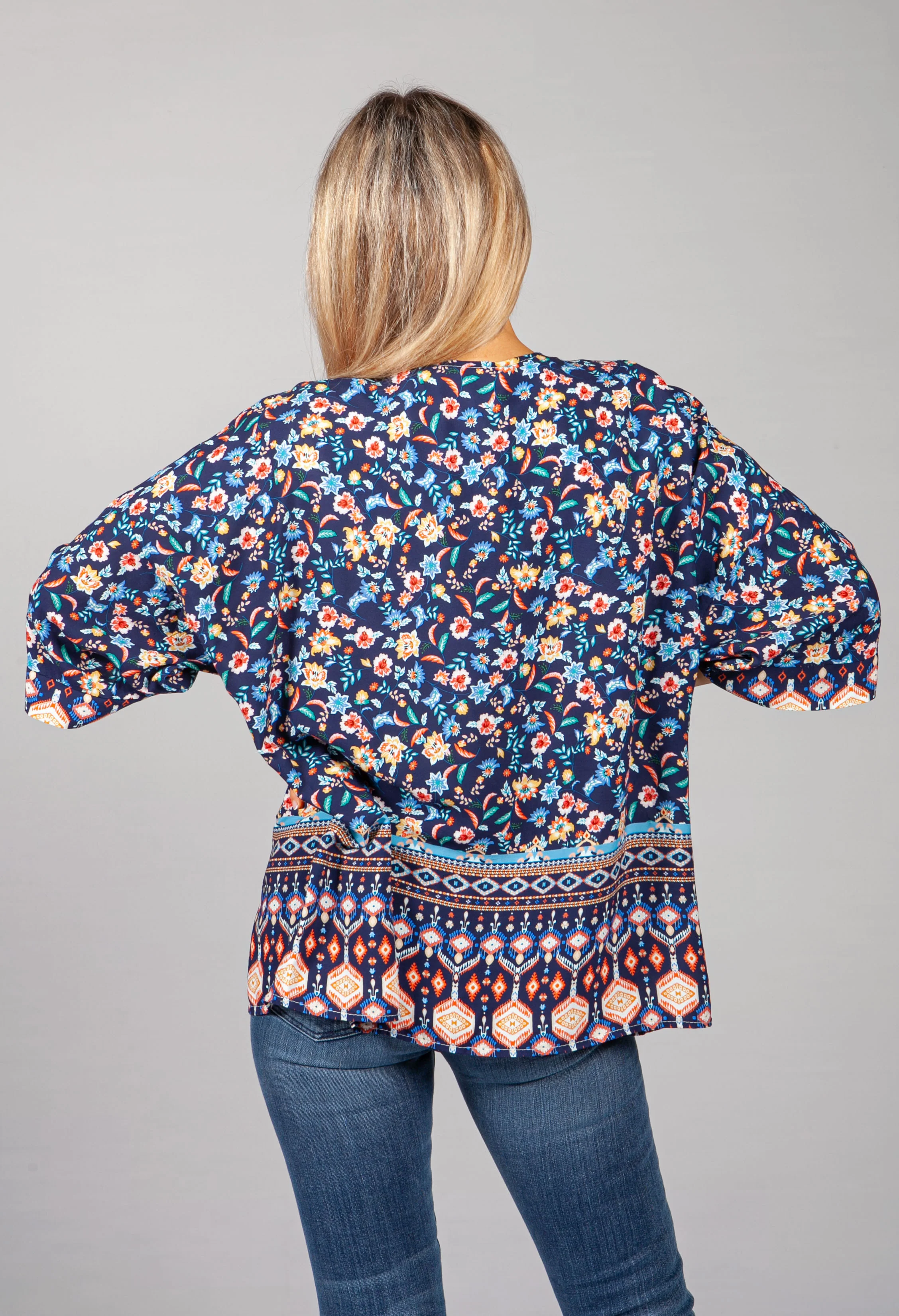 PAMELA SCOTT FLORAL KIMONO STYLE CARDIGAN IN NAVY
