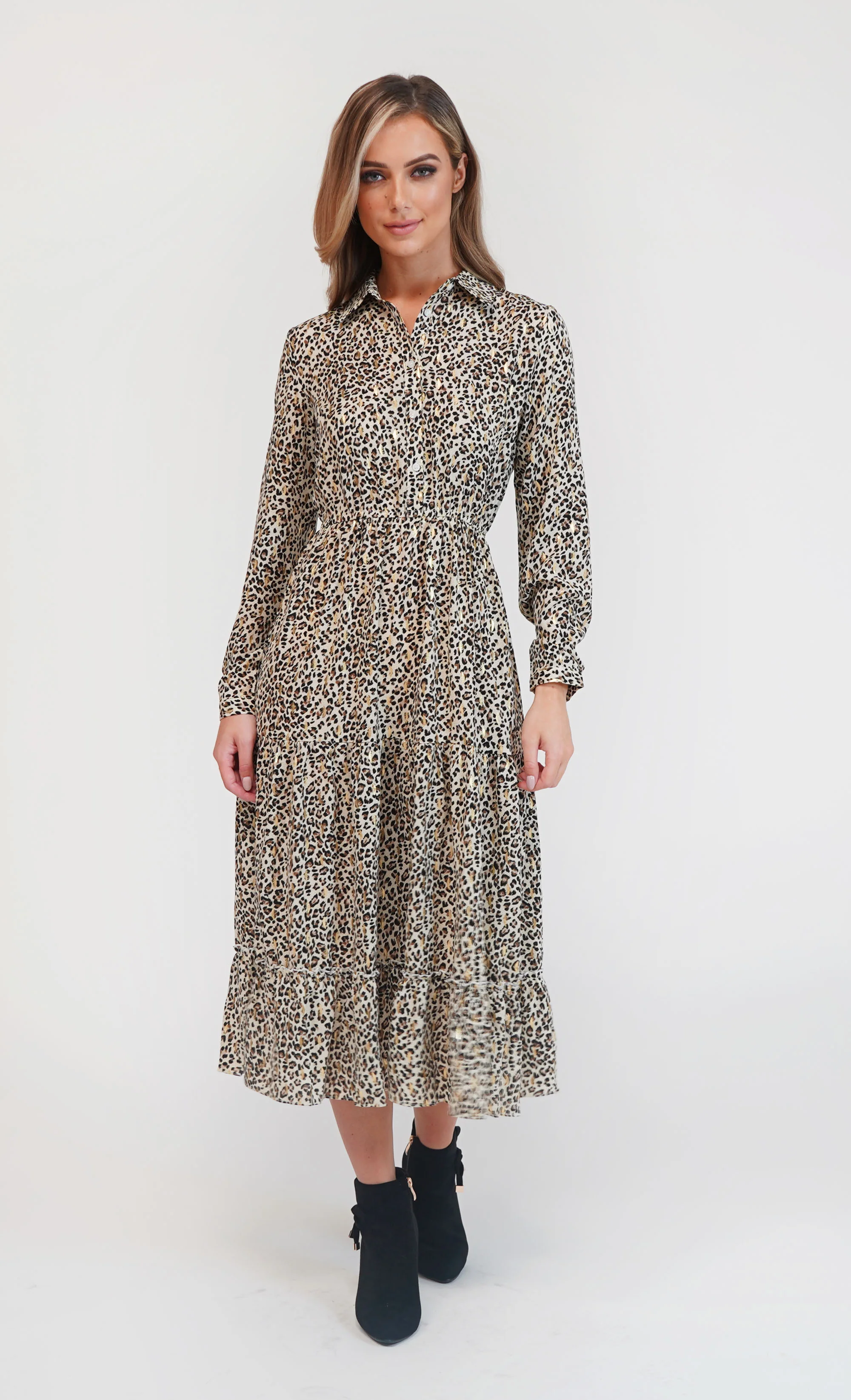 Pamela Scott Leopard Print Shirt Midi Dress