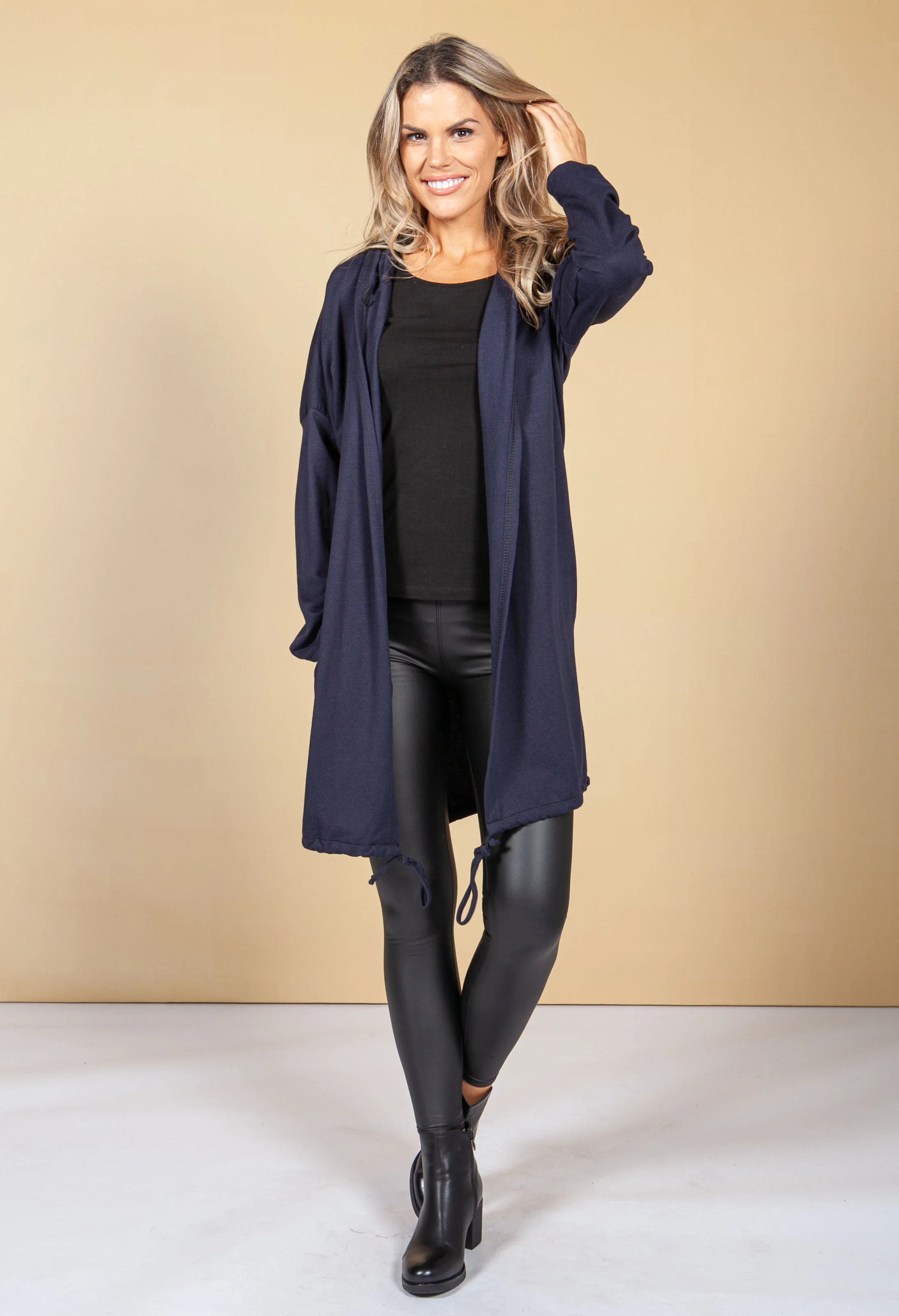 OVERSIZED SLOUCH OPEN HOODIE IN NAVY