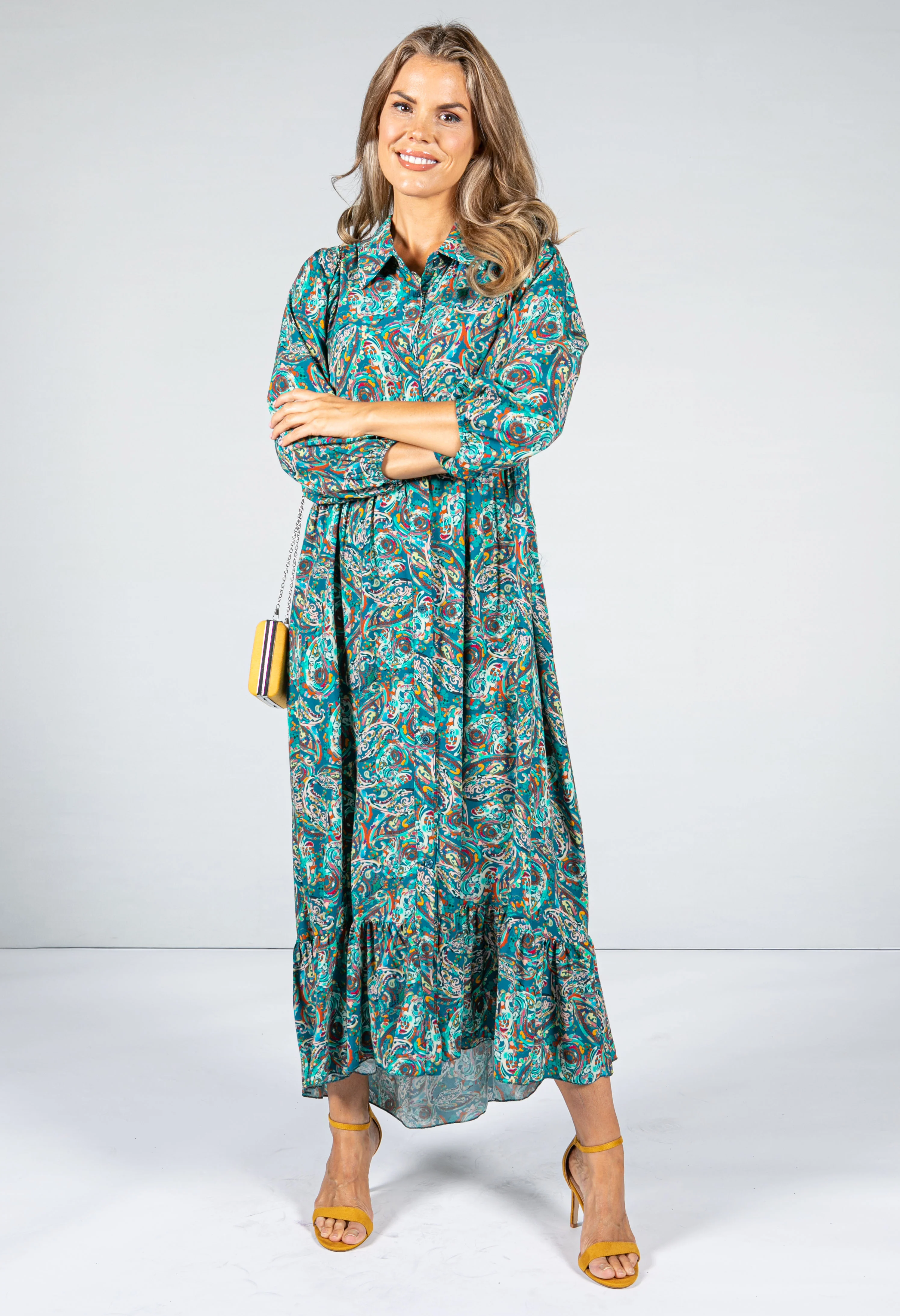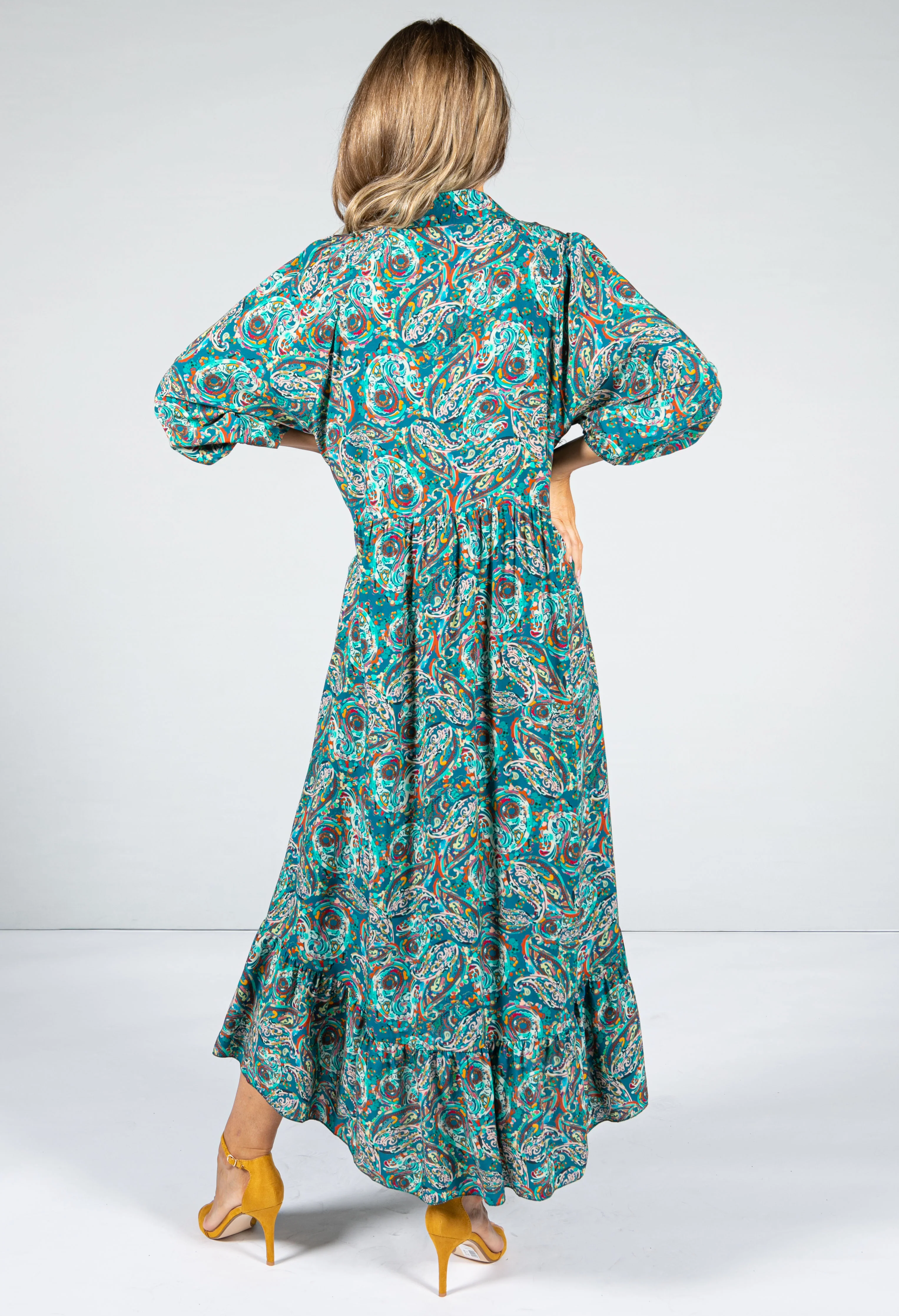 Paisley Pop Print Maxi Dress in Jade & Teal