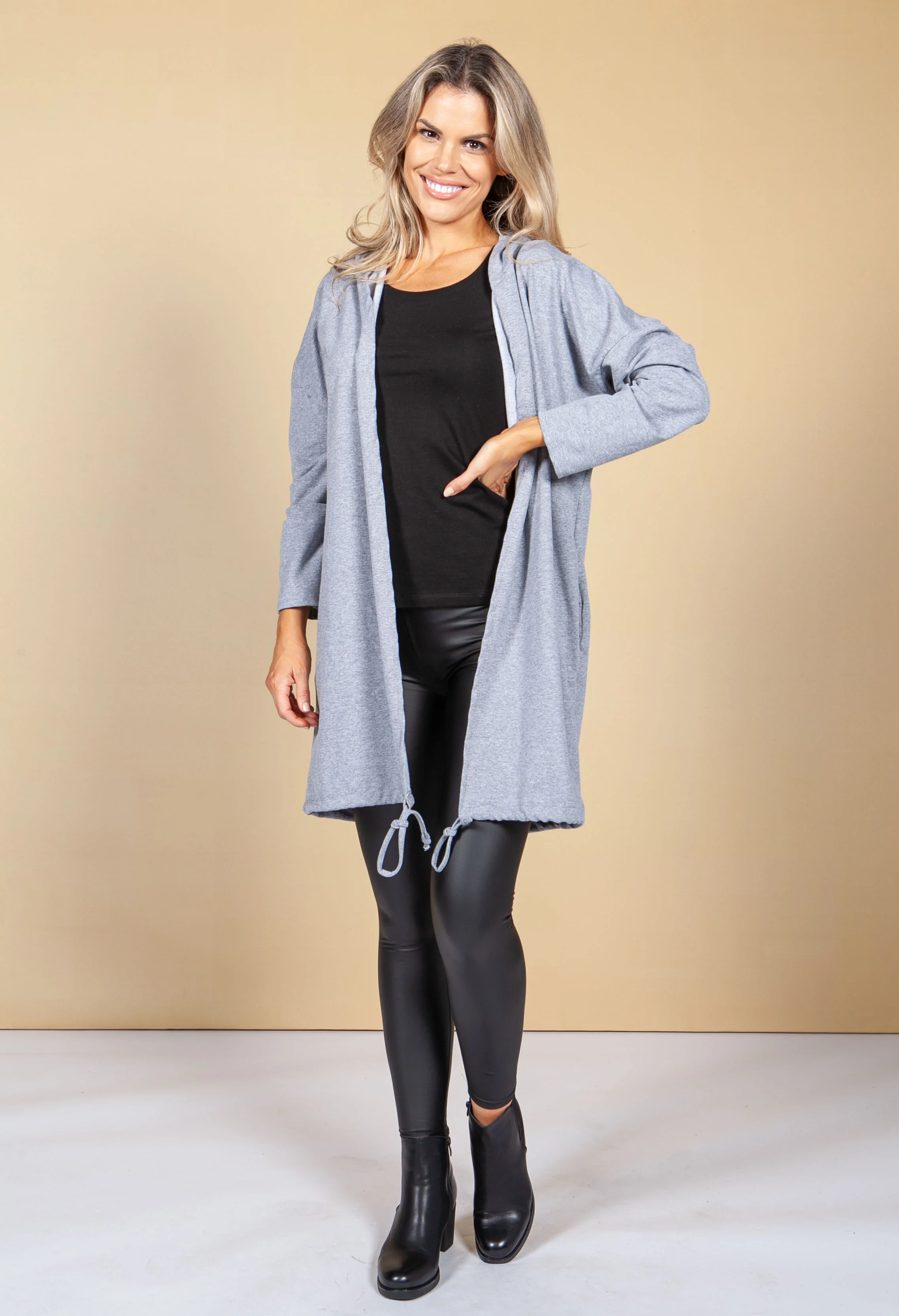 OVERSIZED SLOUCH OPEN HOODIE IN GREY