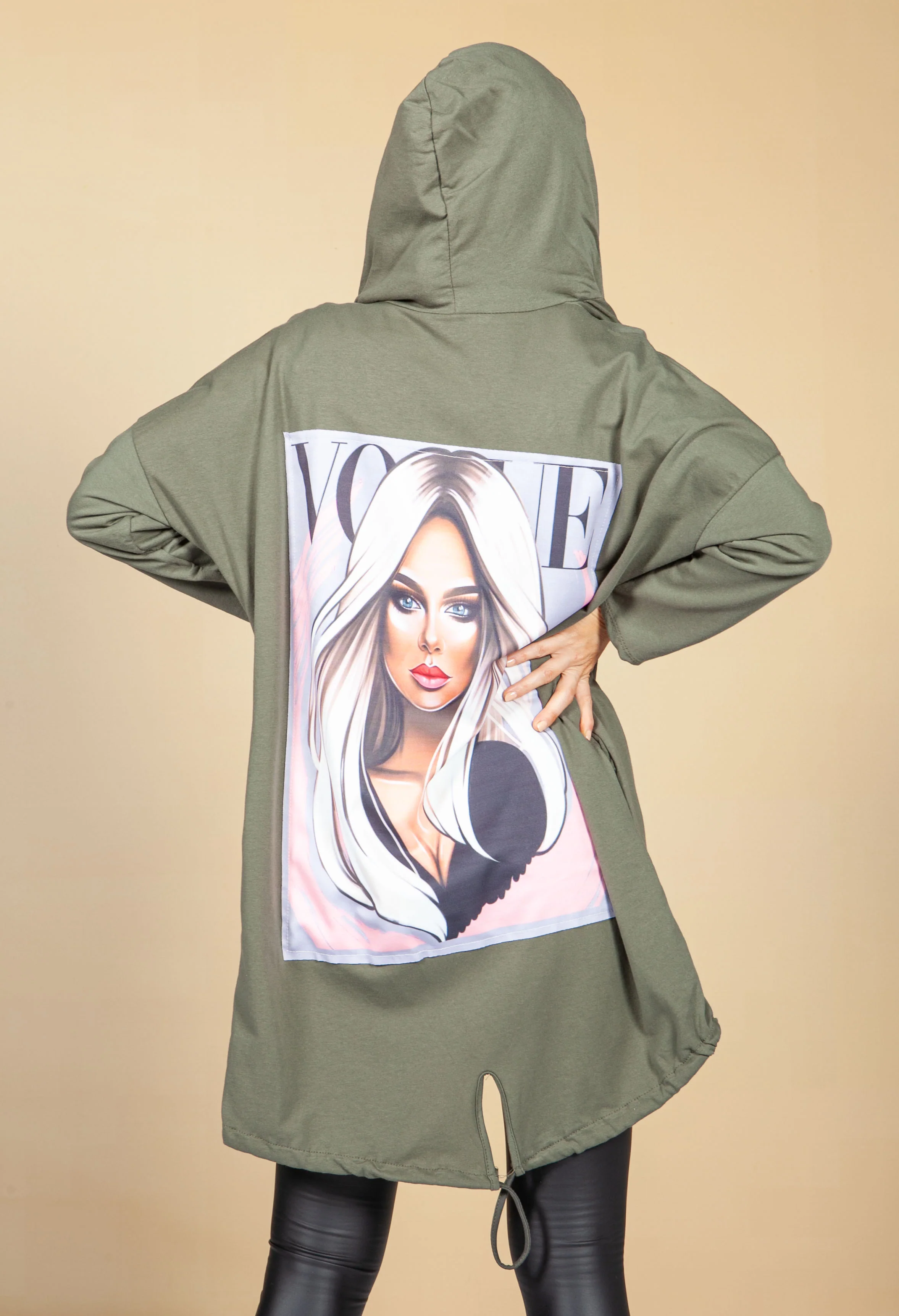 OVERSIZED SLOUCH OPEN HOODIE IN KHAKI