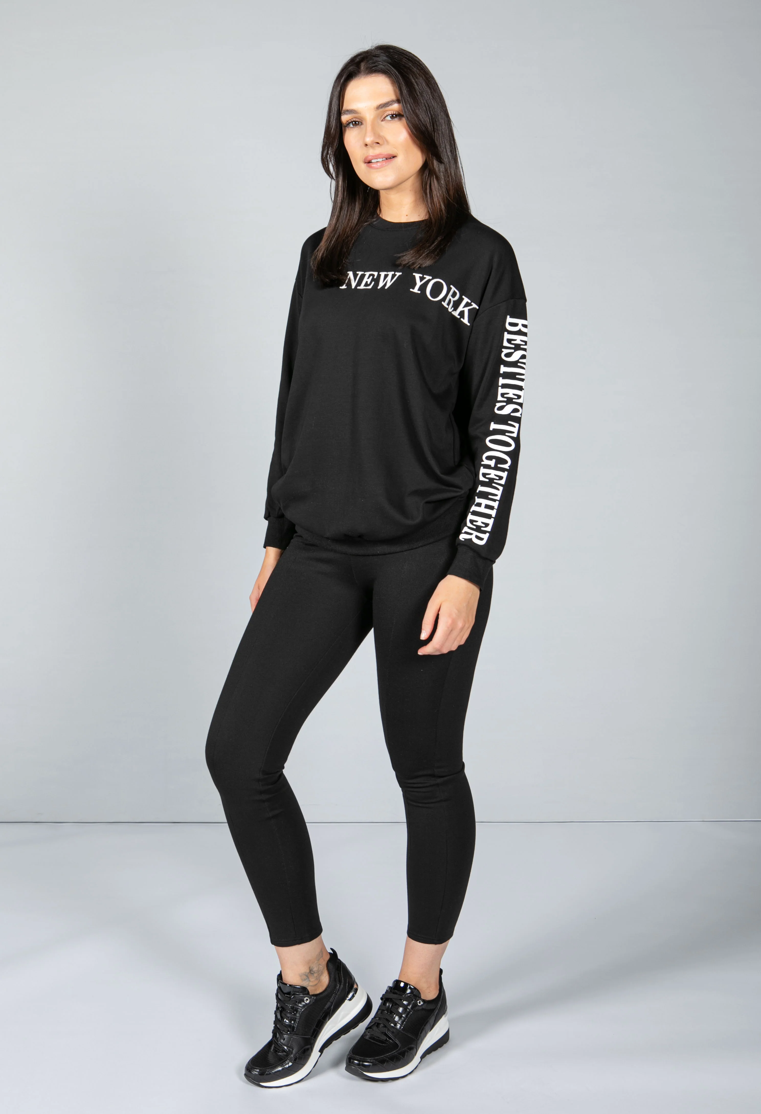 NEW YORK VARSITY CREW NECK JUMPER IN BLACK