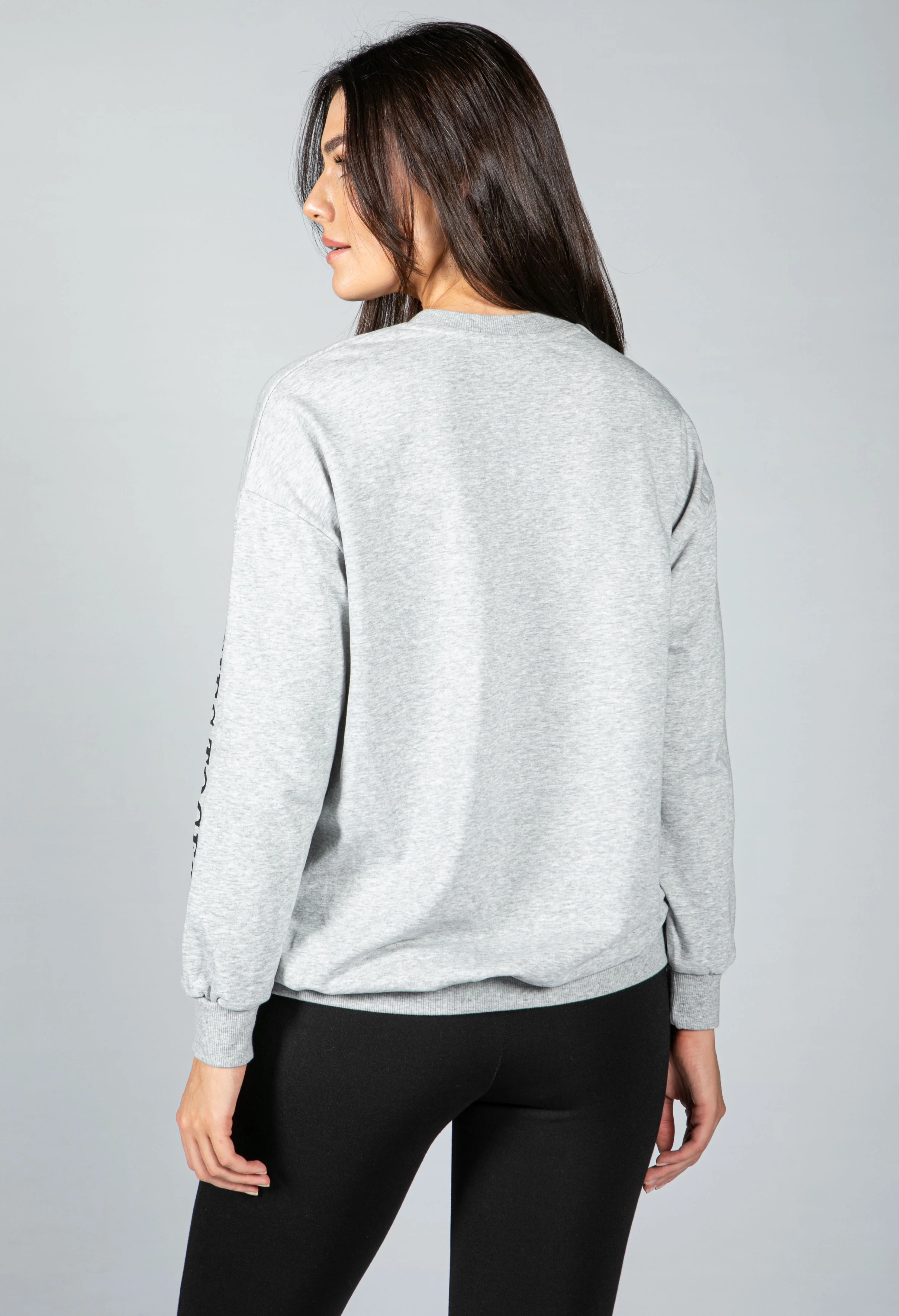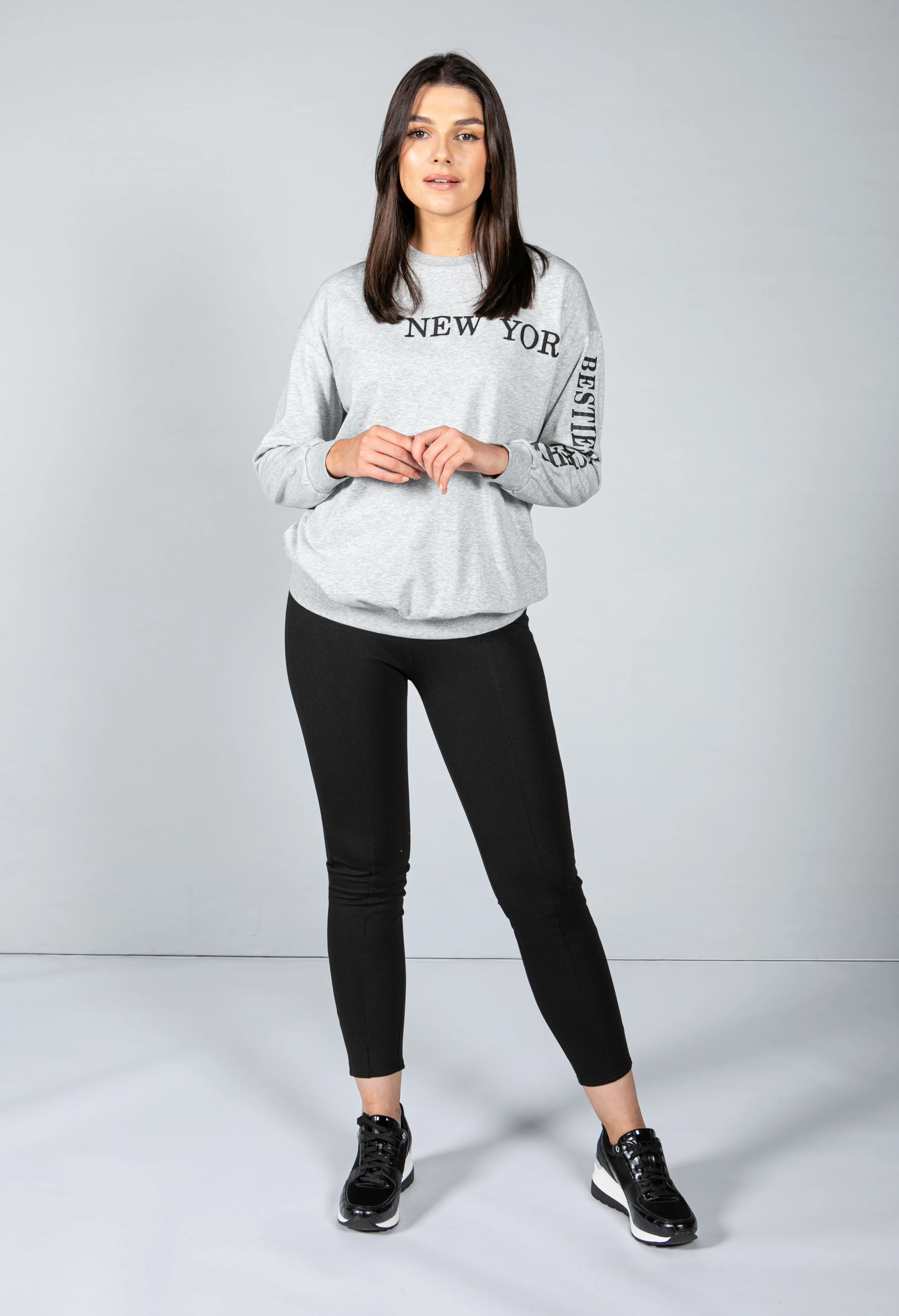 NEW YORK VARSITY CREW NECK JUMPER IN GREY