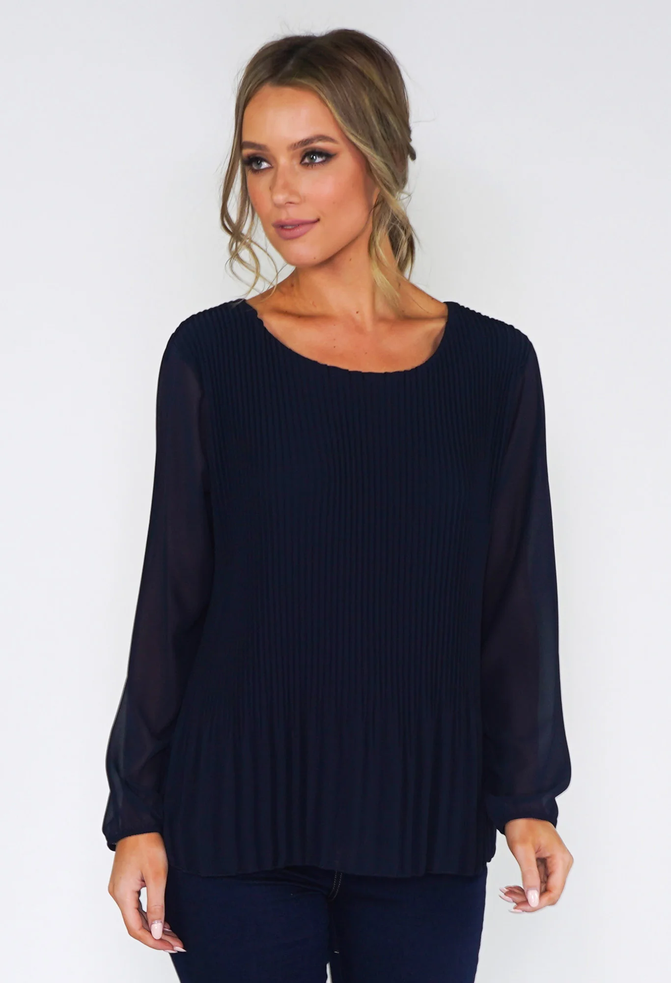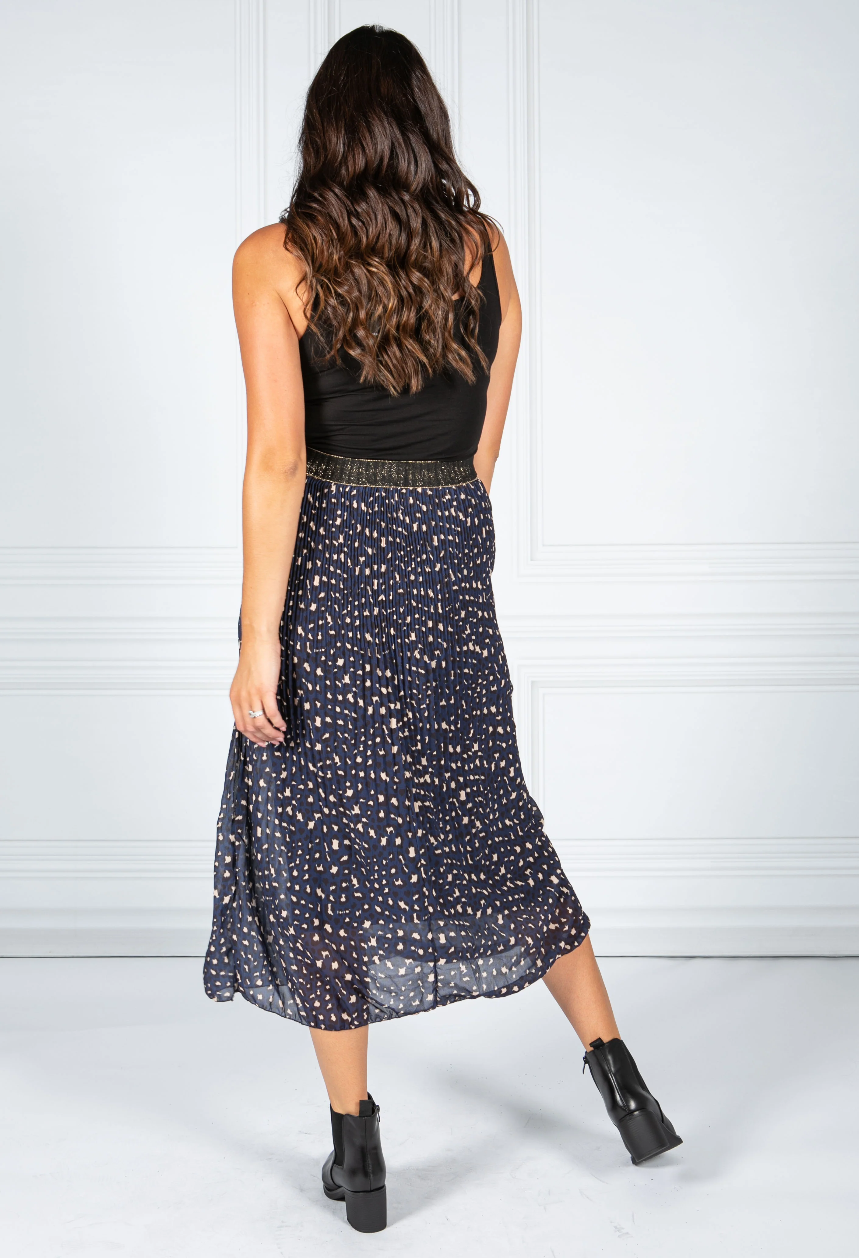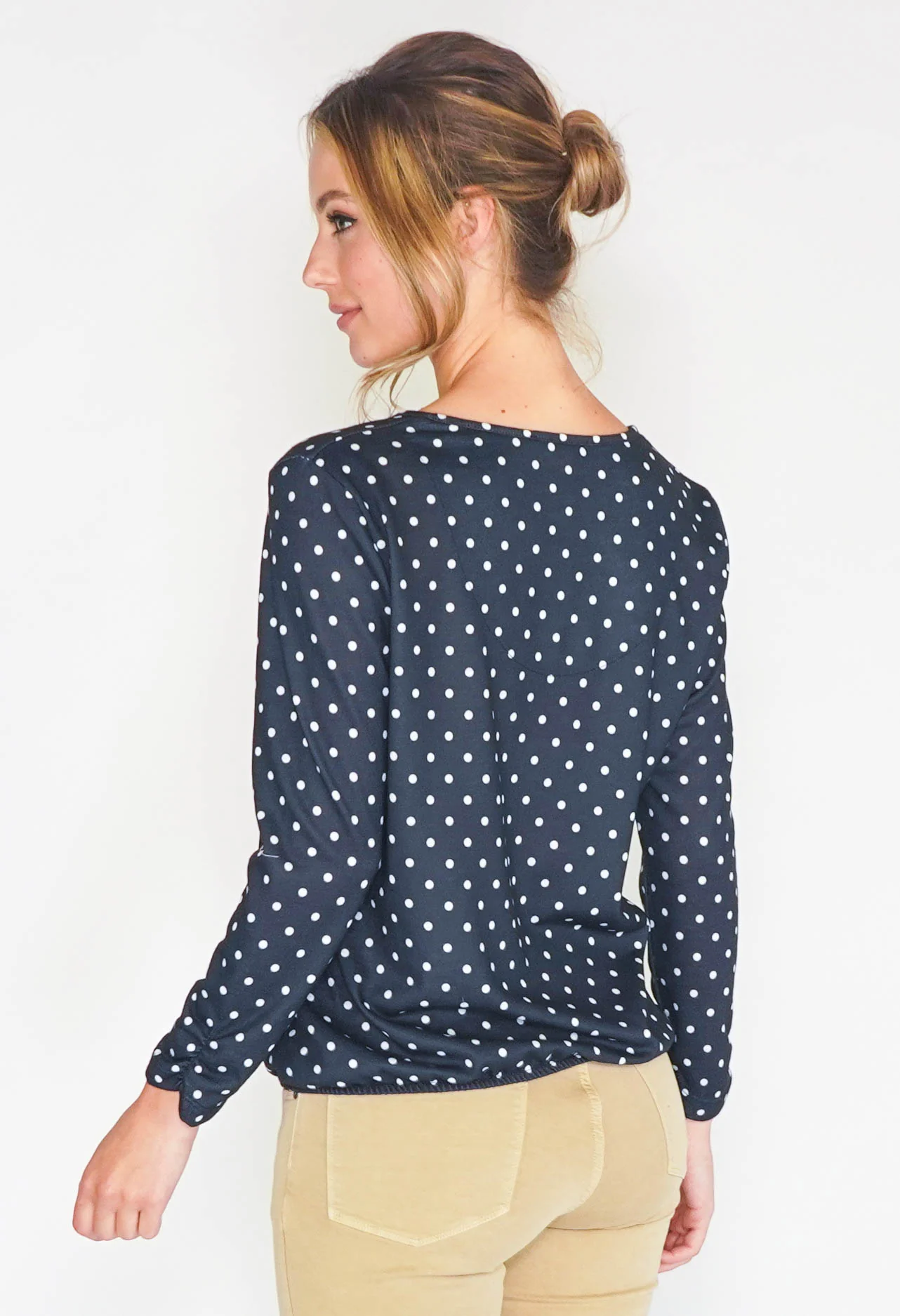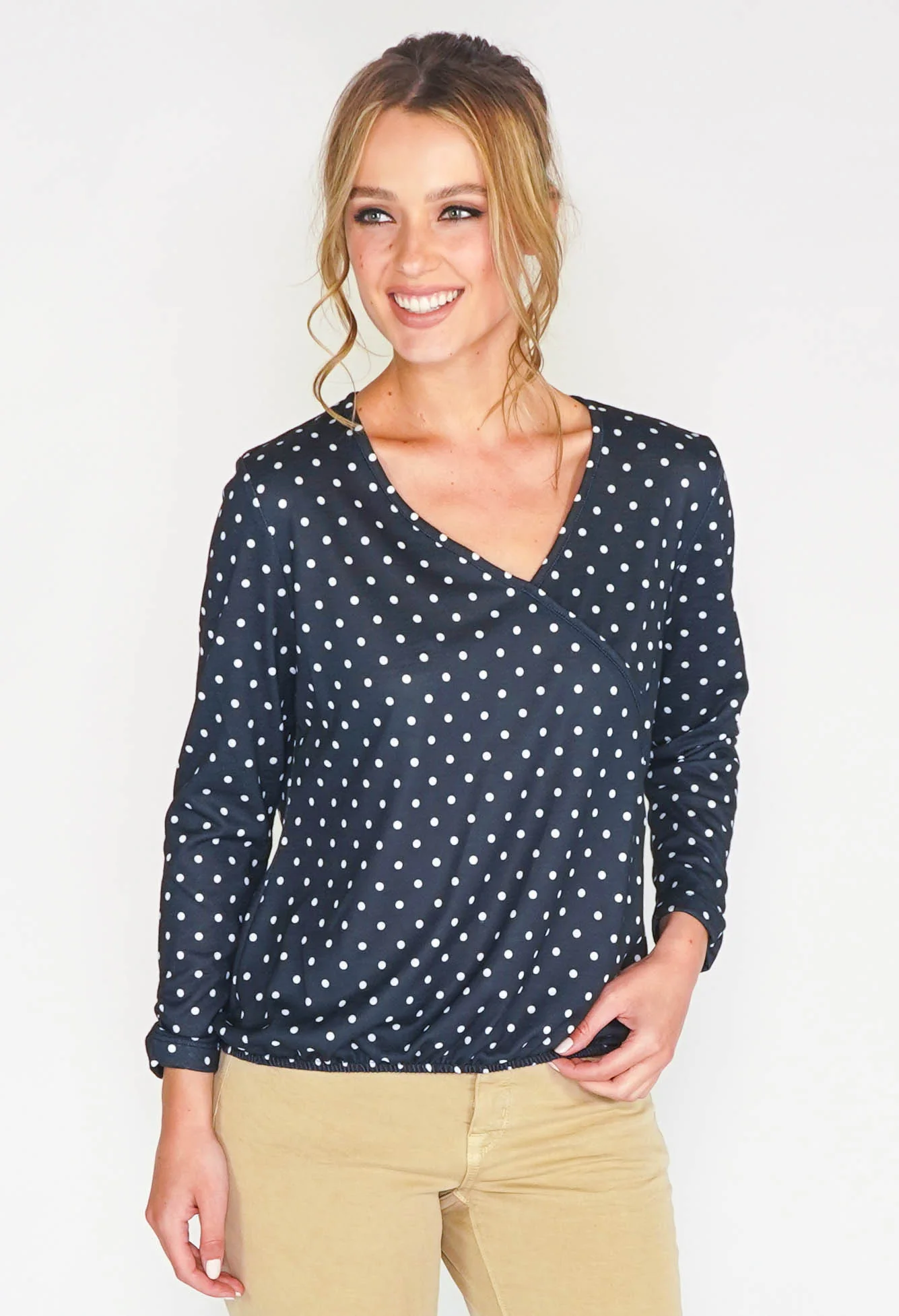 NAVY POLKADOT FAUX CROSSOVER TOP