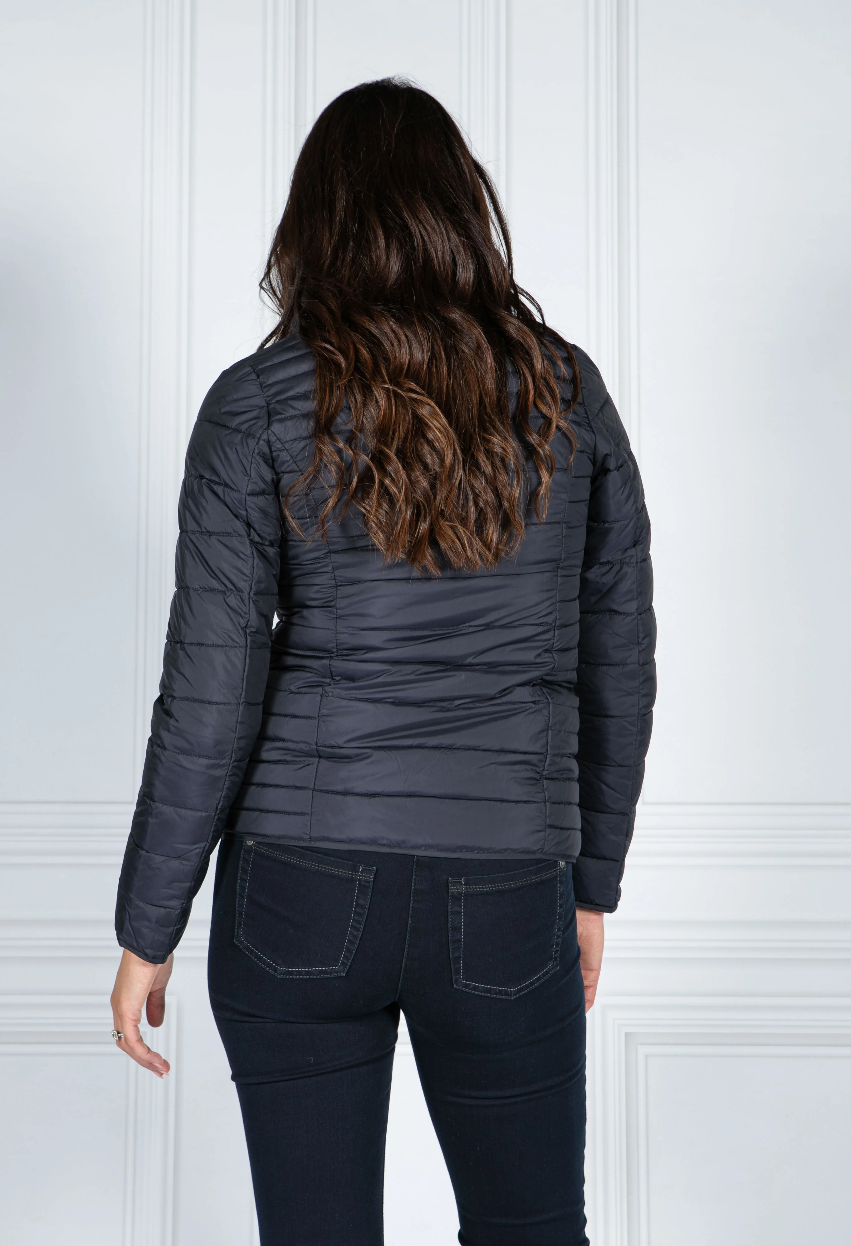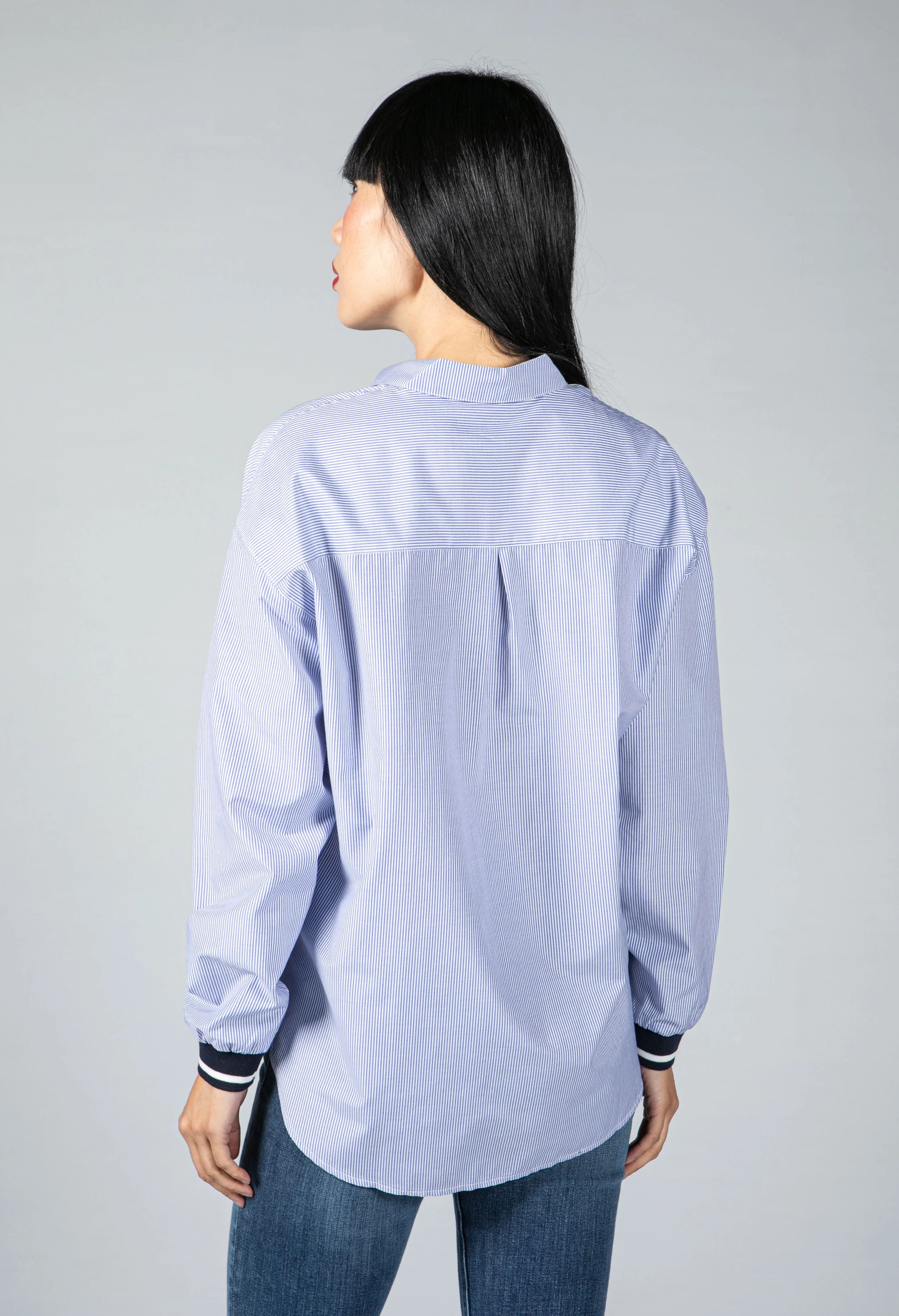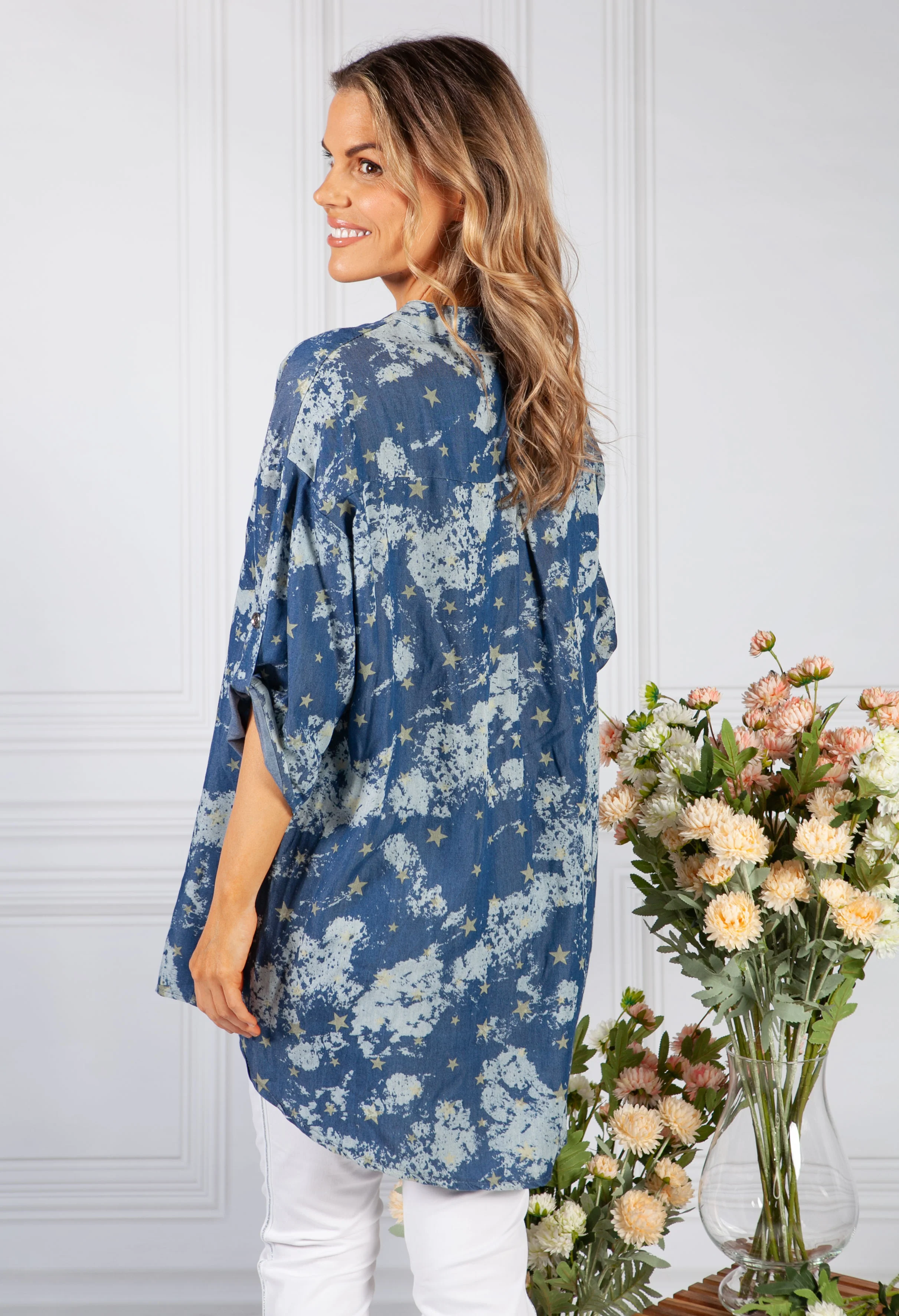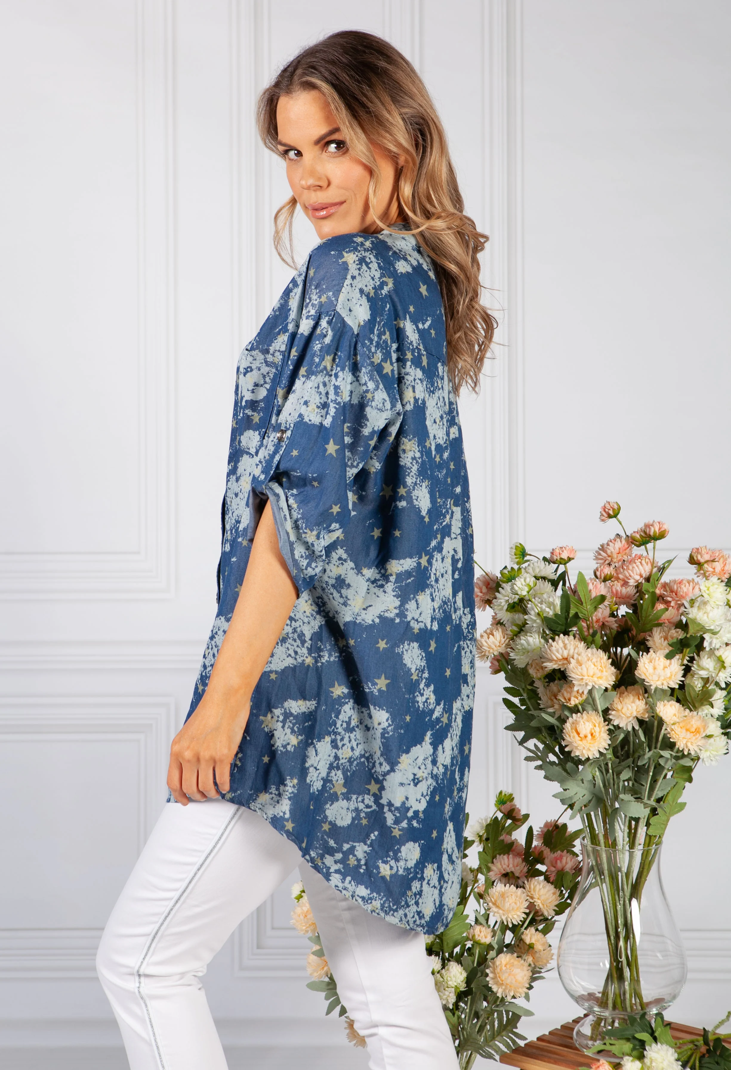 NAVY POLKADOT FAUX CROSSOVER TOP
