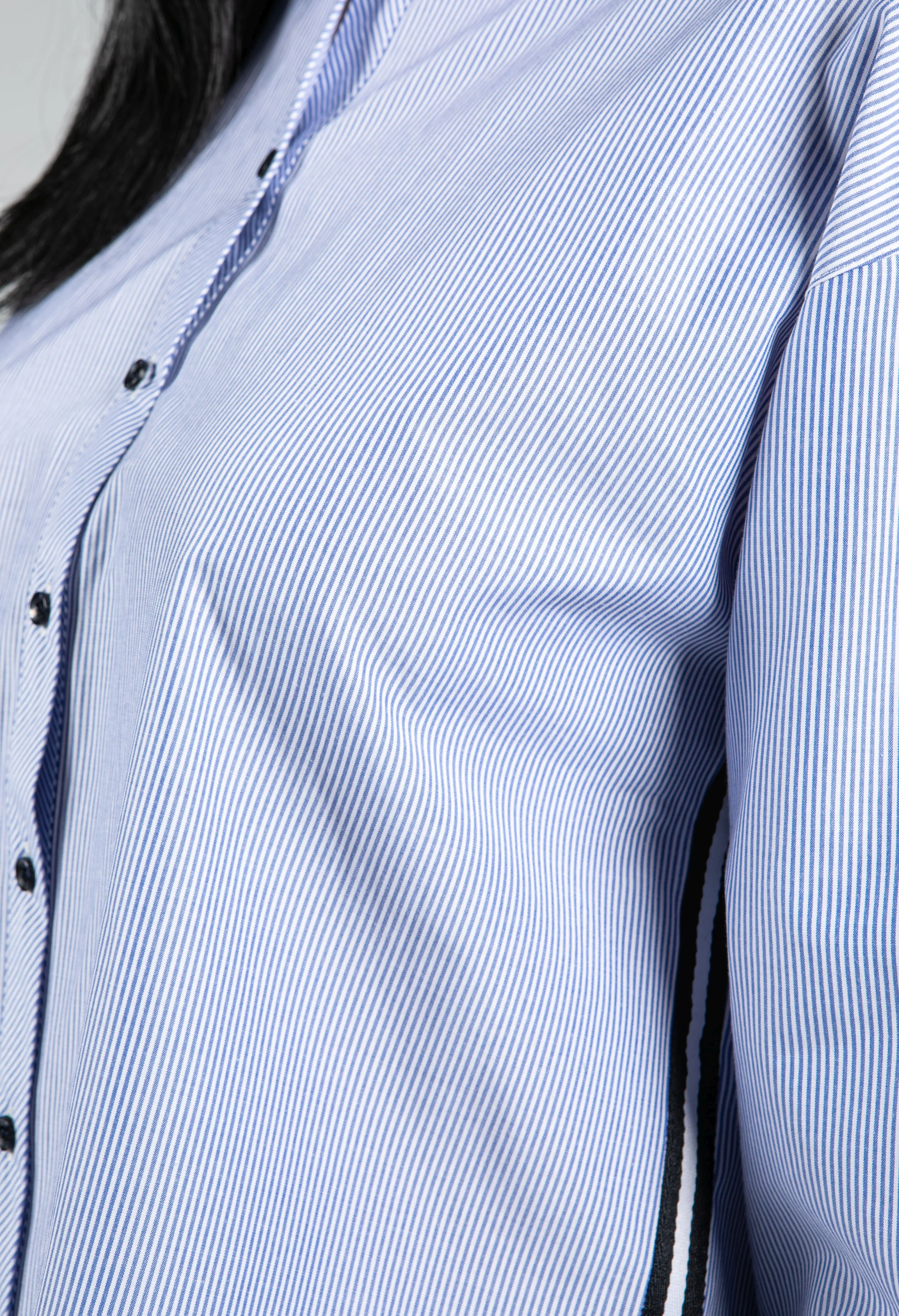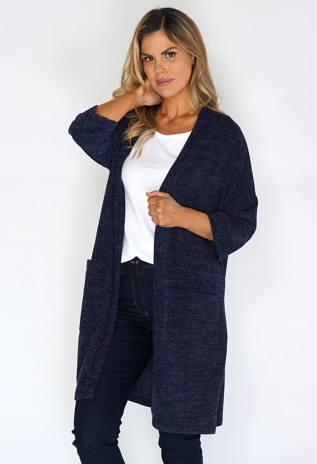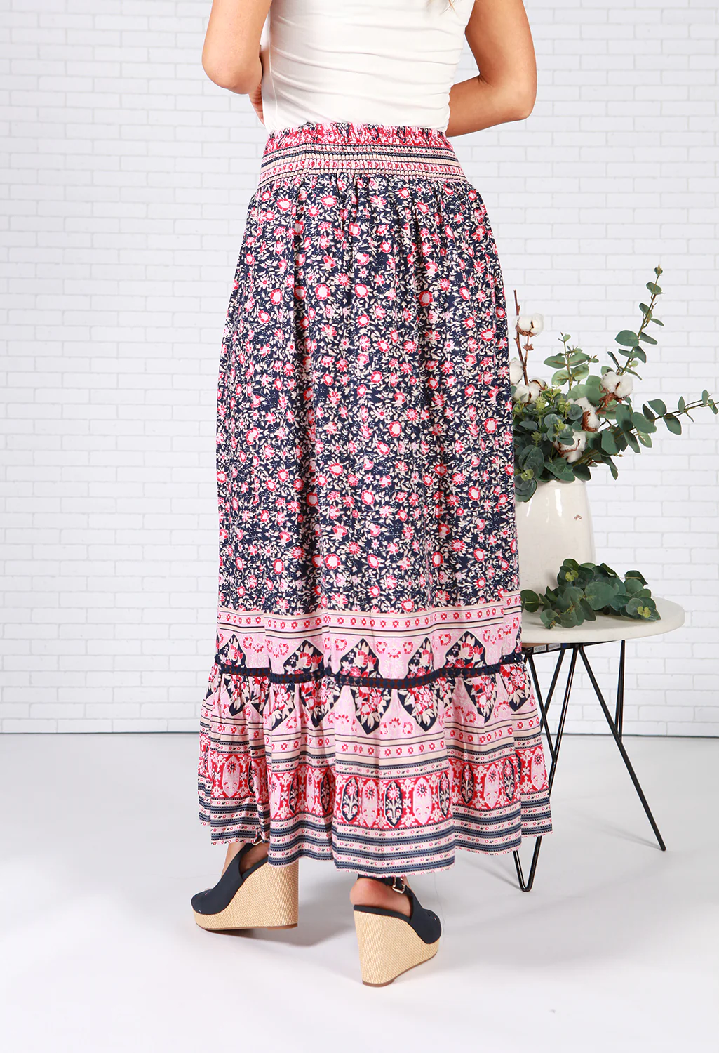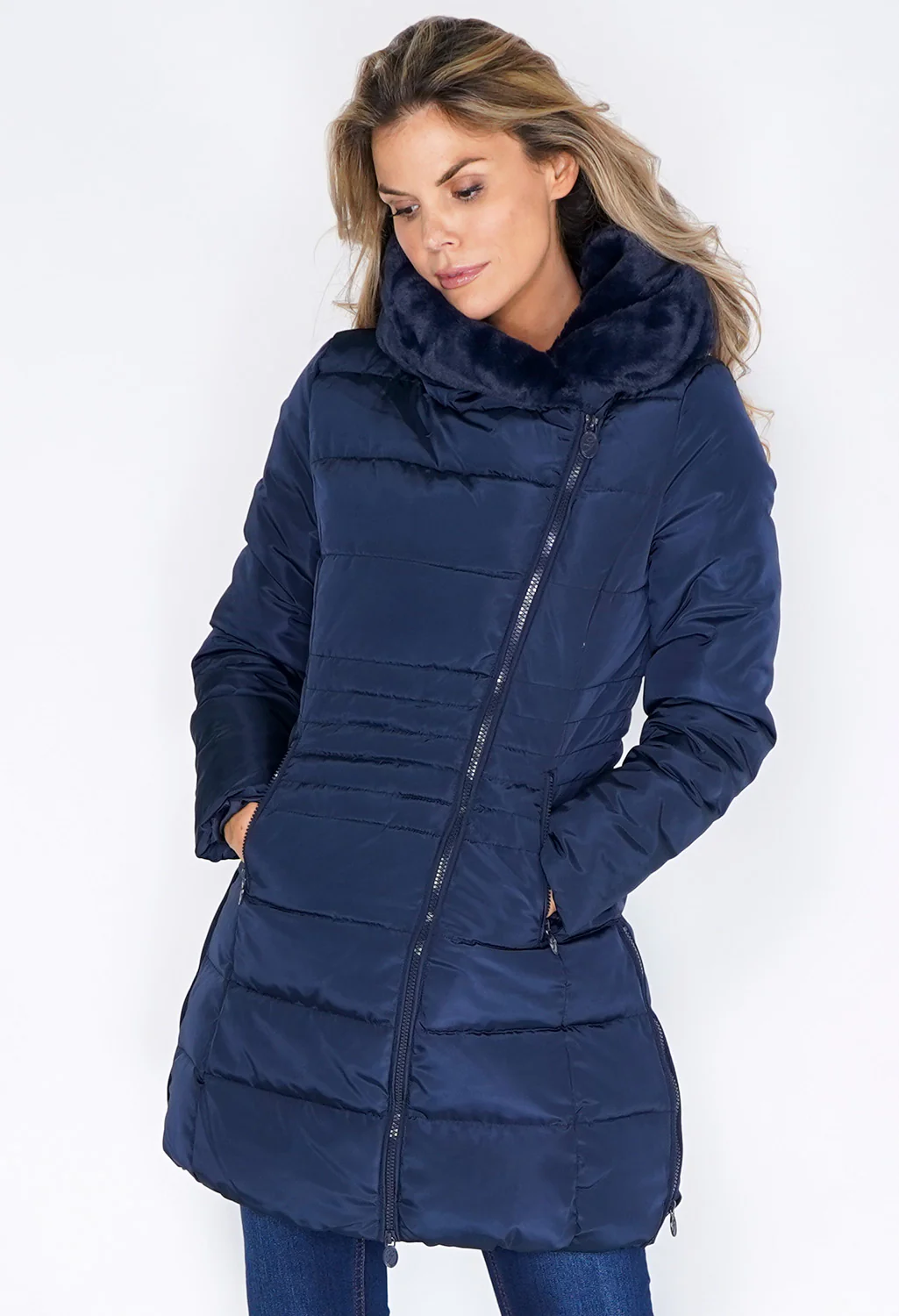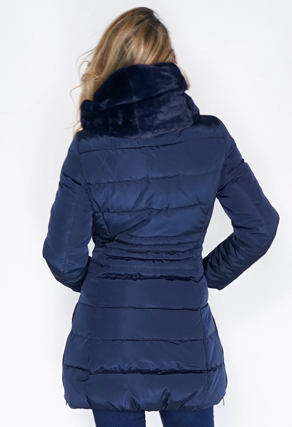 Navy Pattern Stripe V-Neck Dress with Faux Wrap