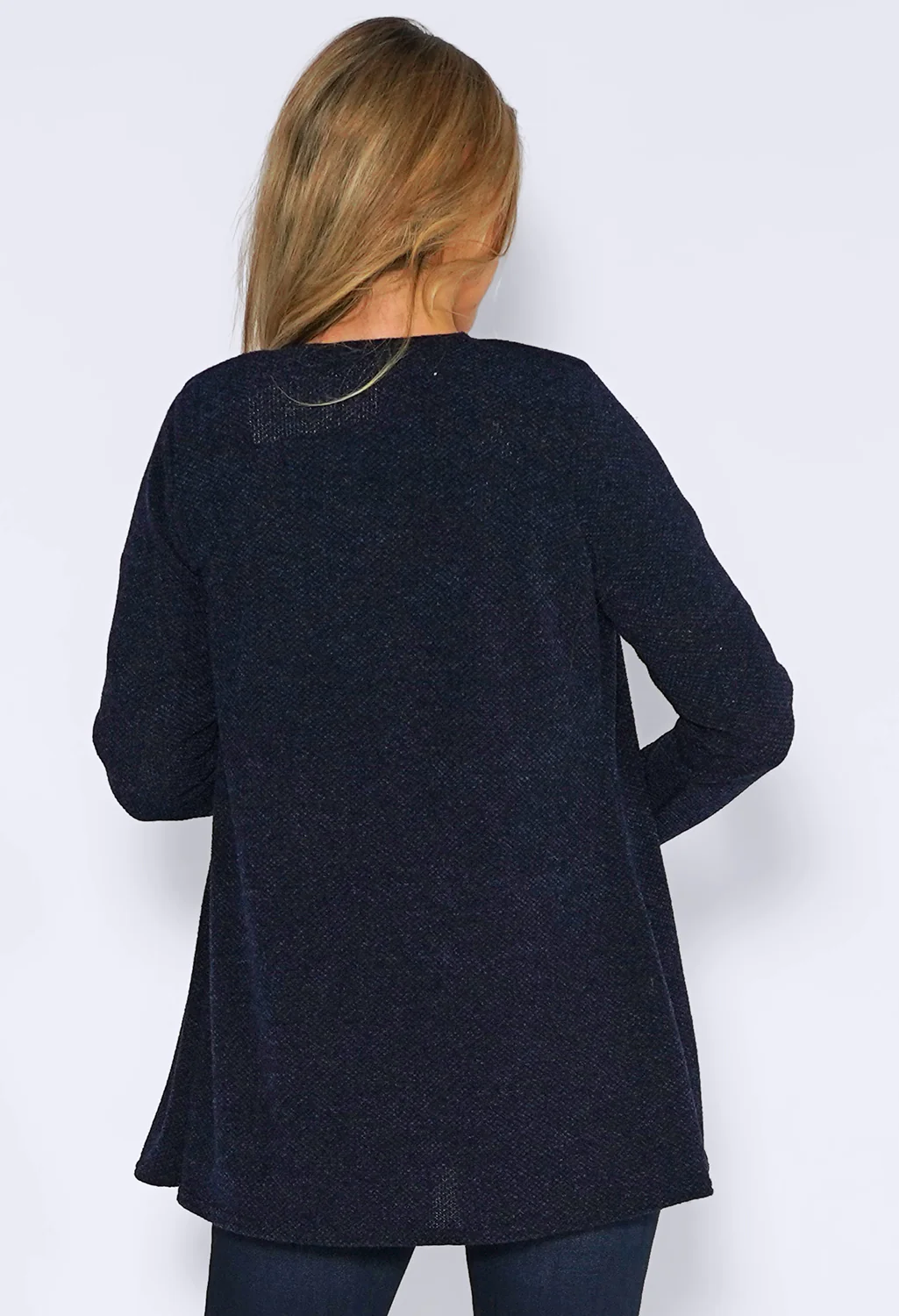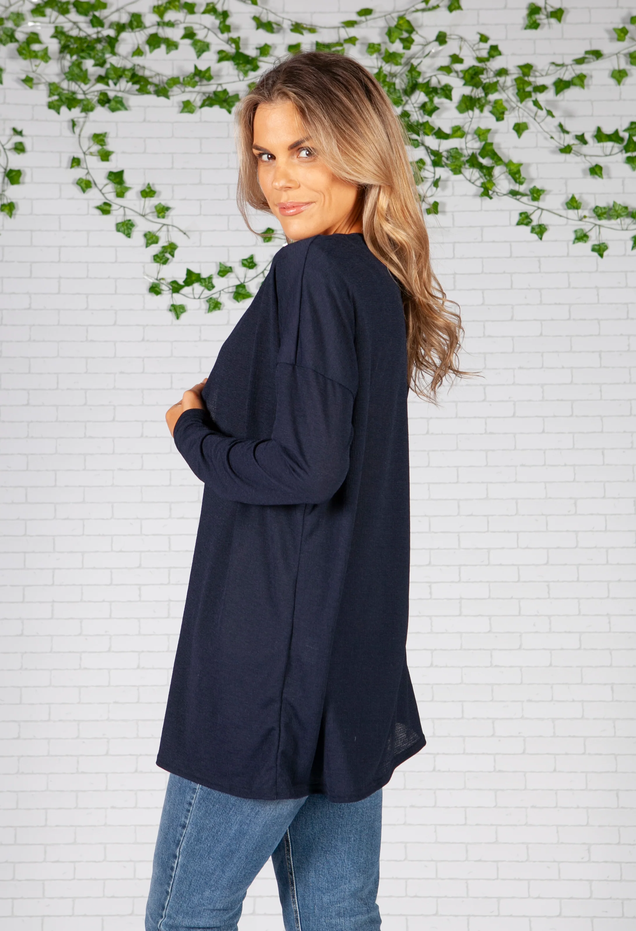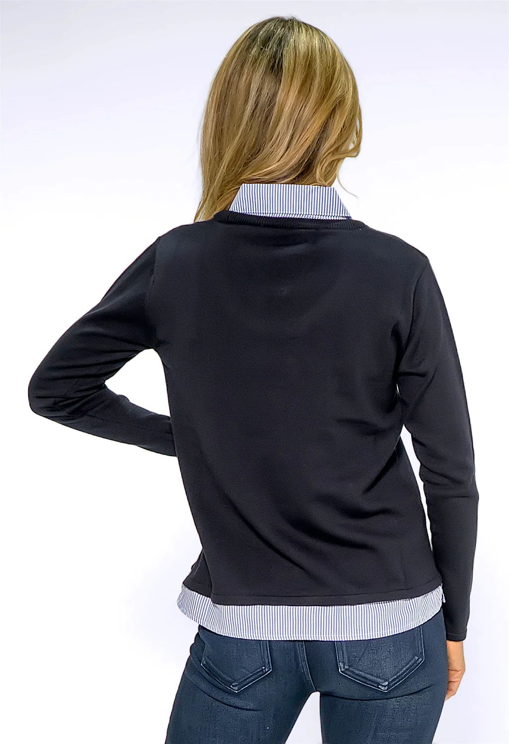 Navy Long Sleeve Top with Attached Under Shirt Detail