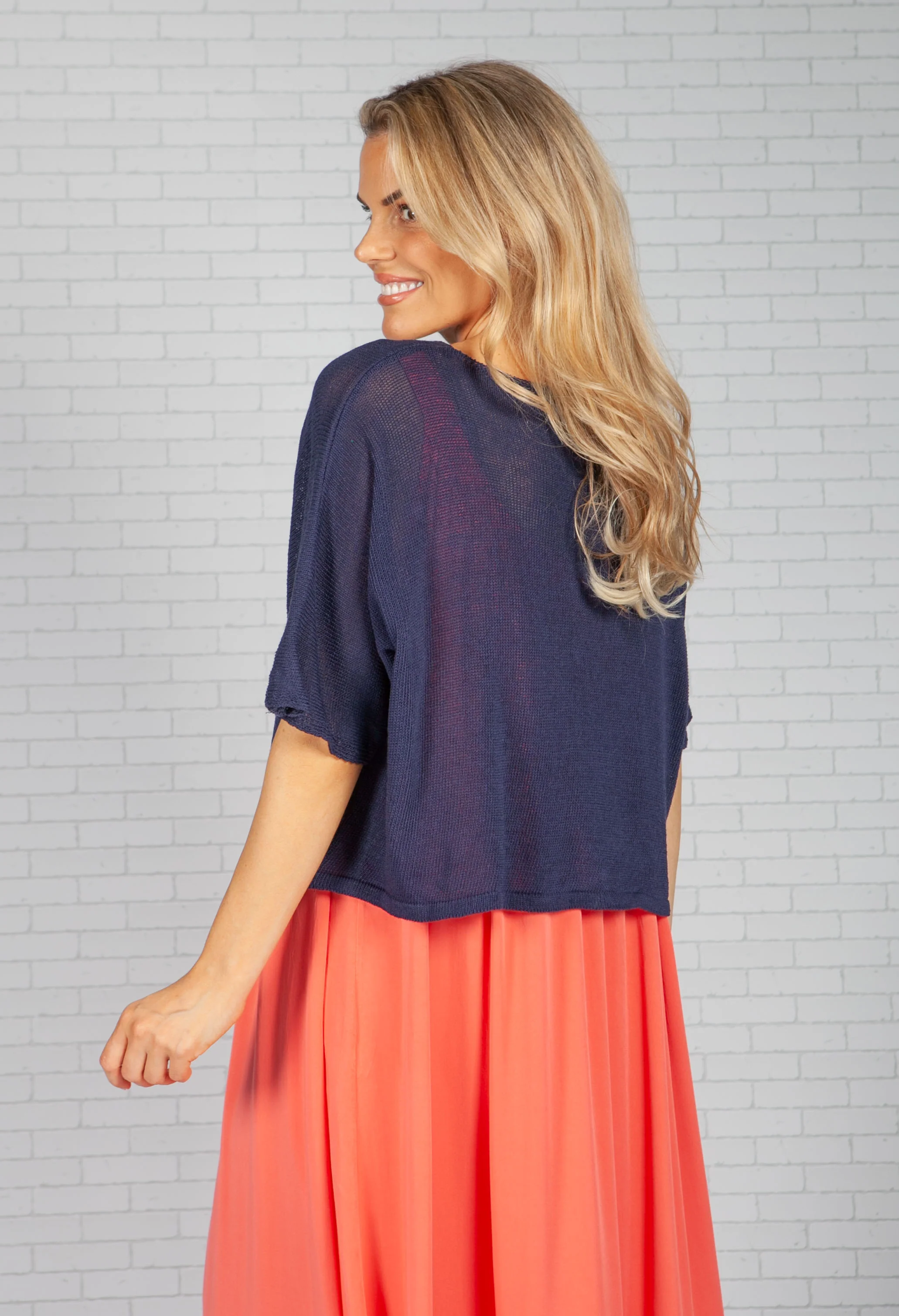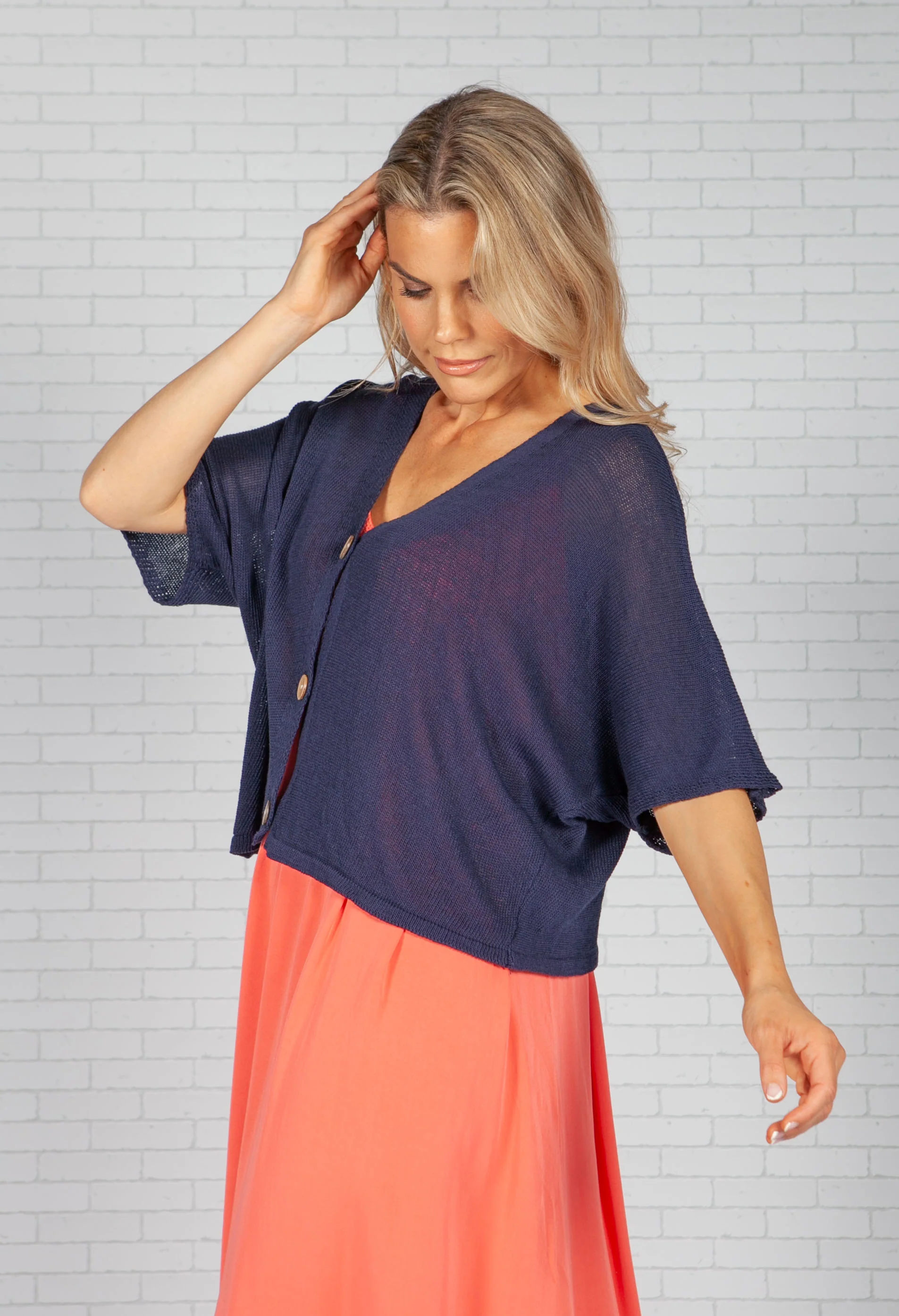 Navy Cropped Knit Cardigan
