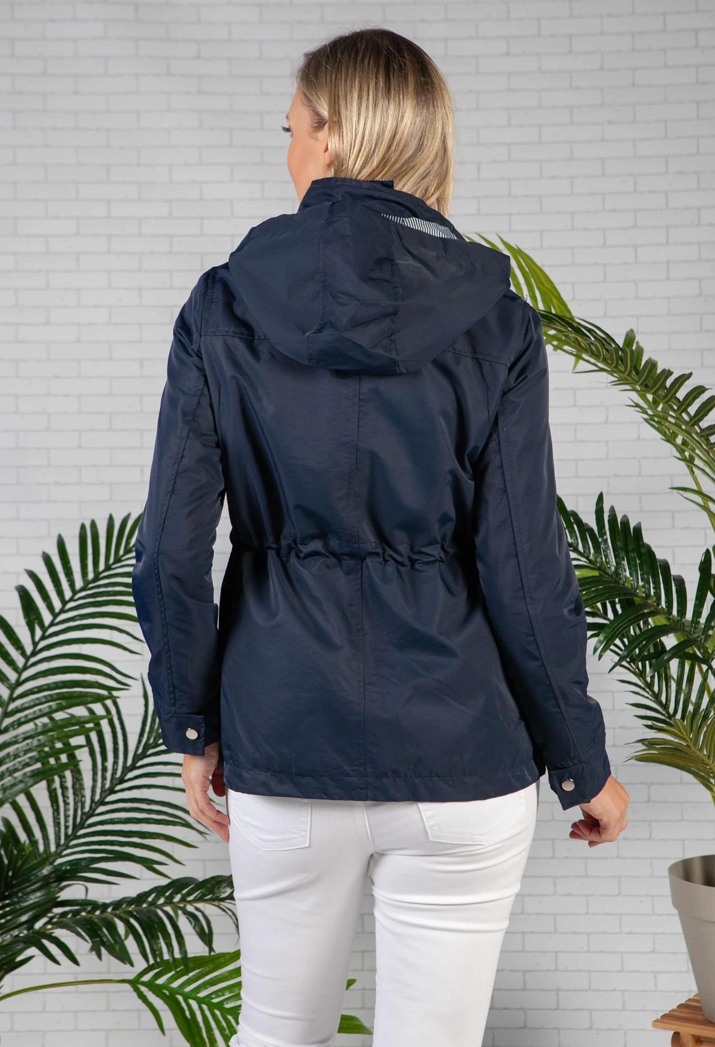 Navy Drawstring Waist Rain Jacket