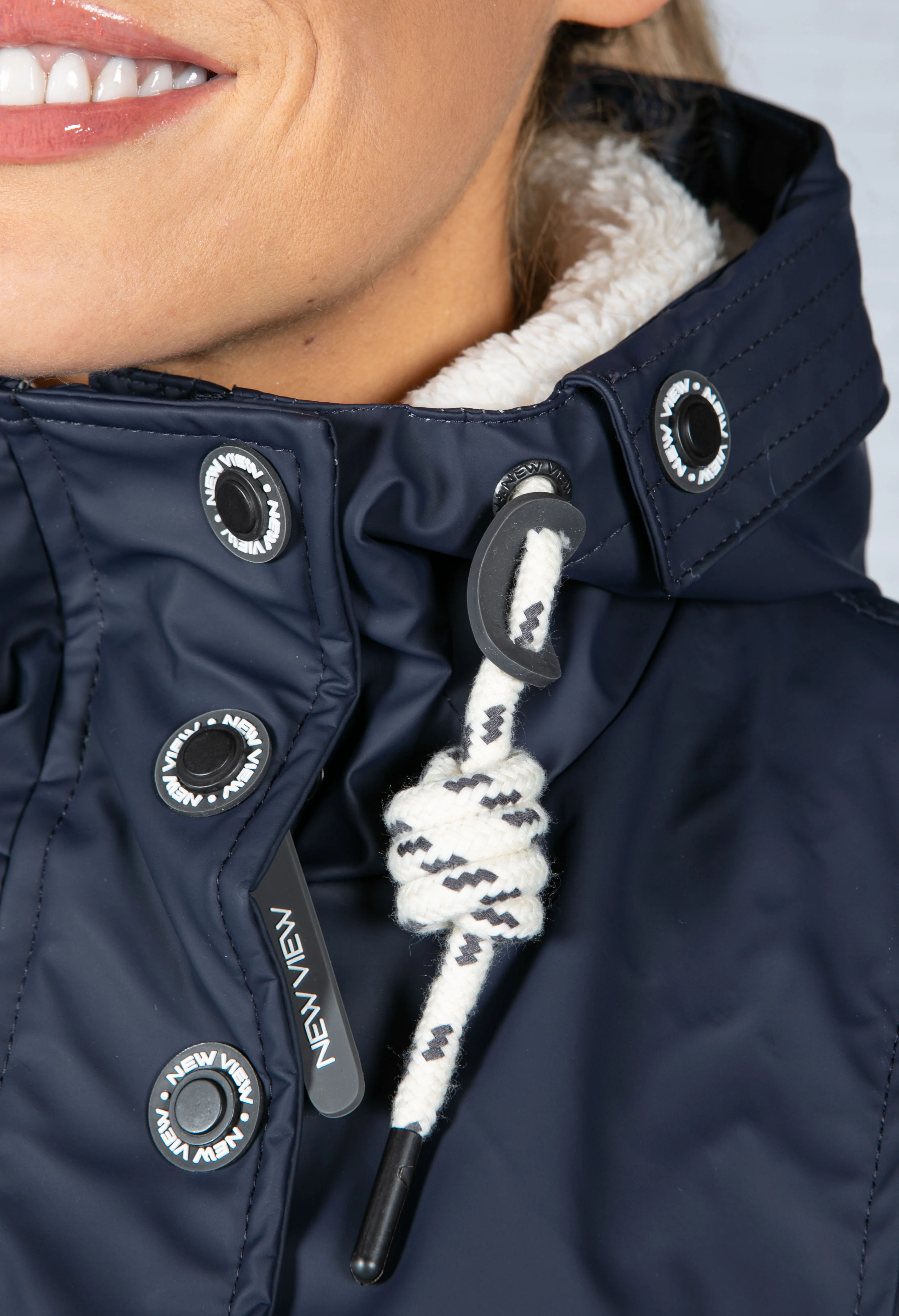 Navy Faux Fur Lined Raincoat