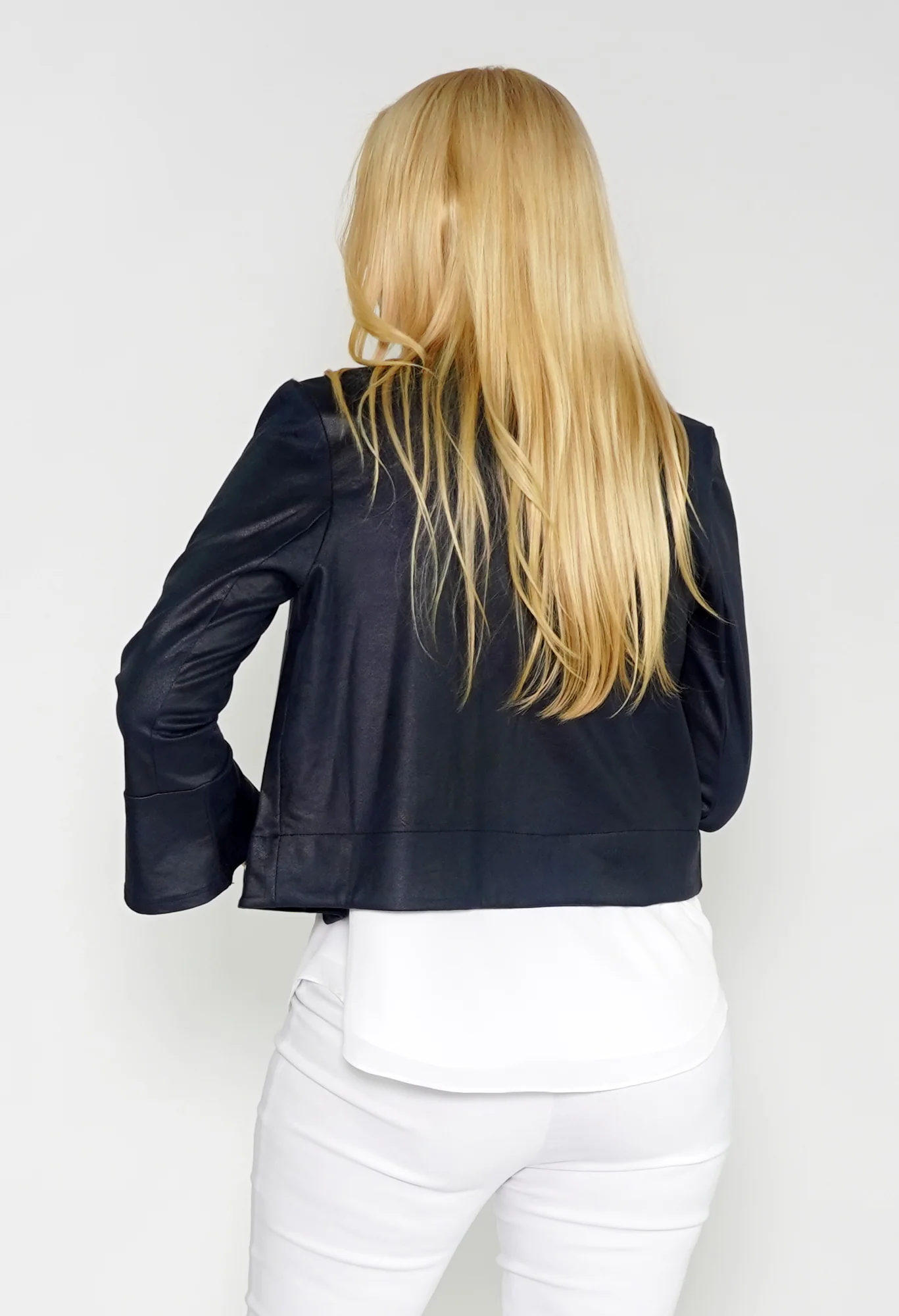 Navy Faux Suede Jacket with Silver Detail
