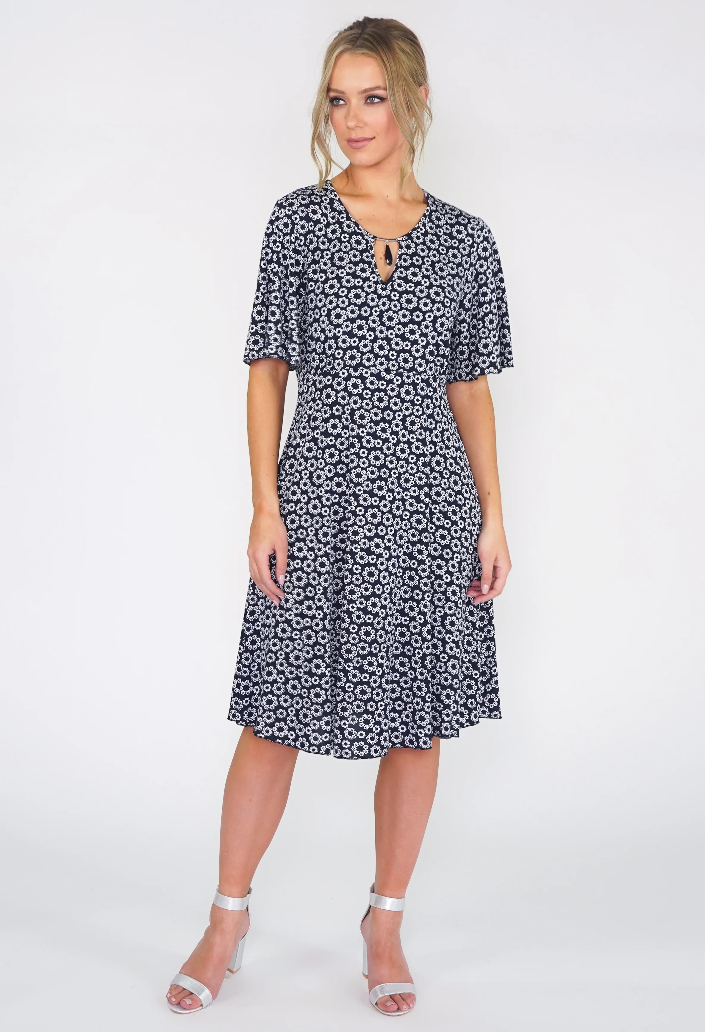 Navy Ditsy Floral Dress