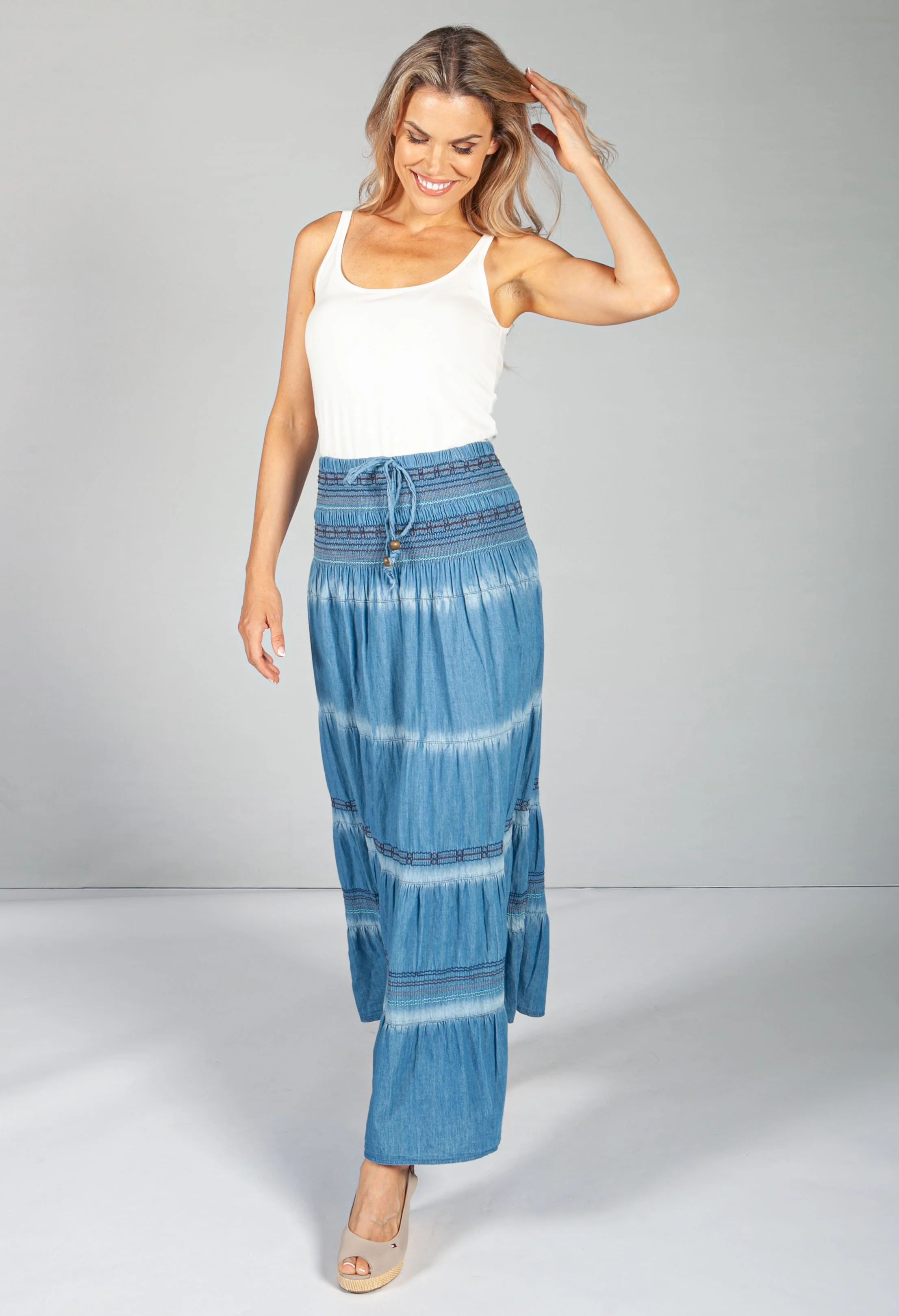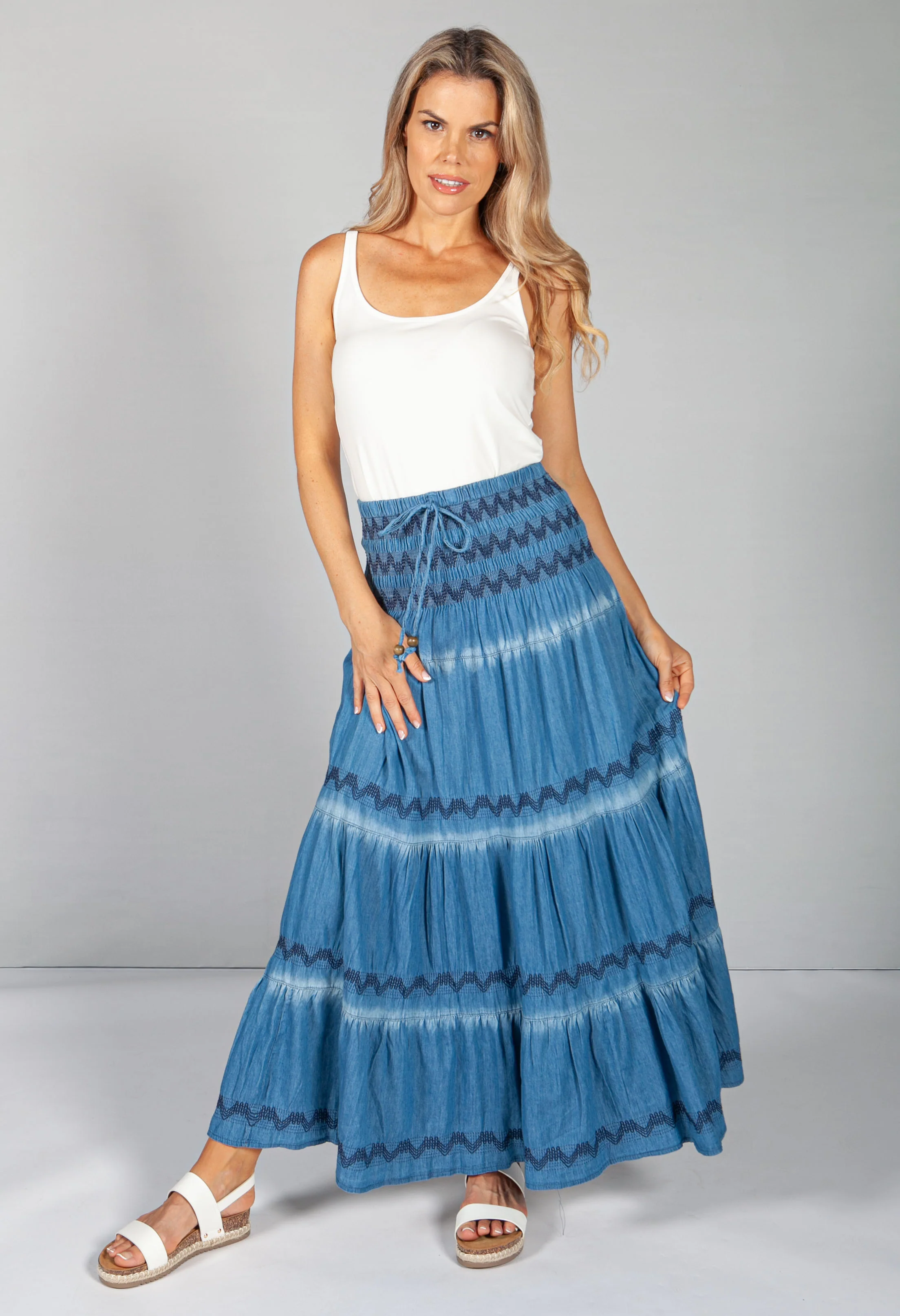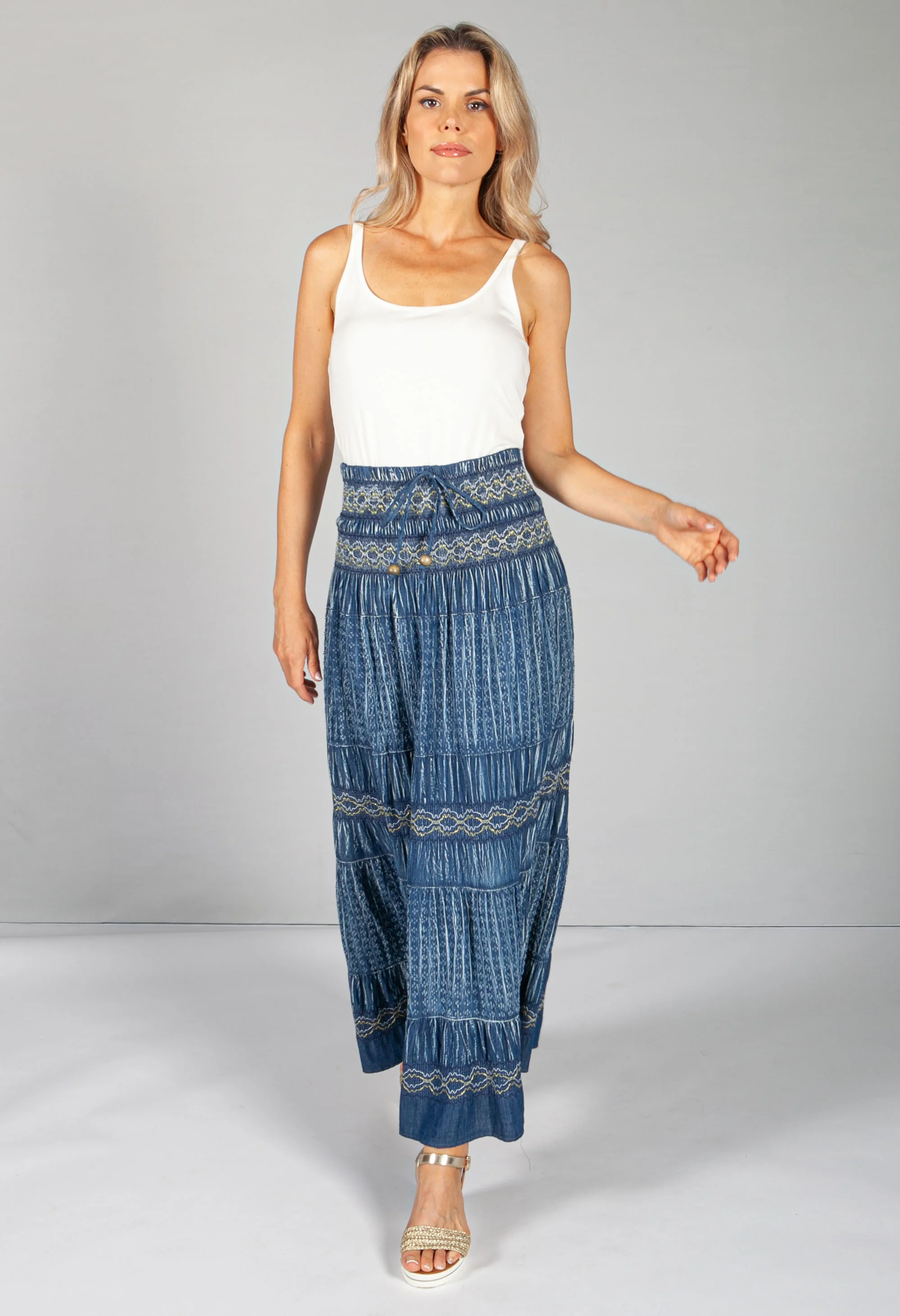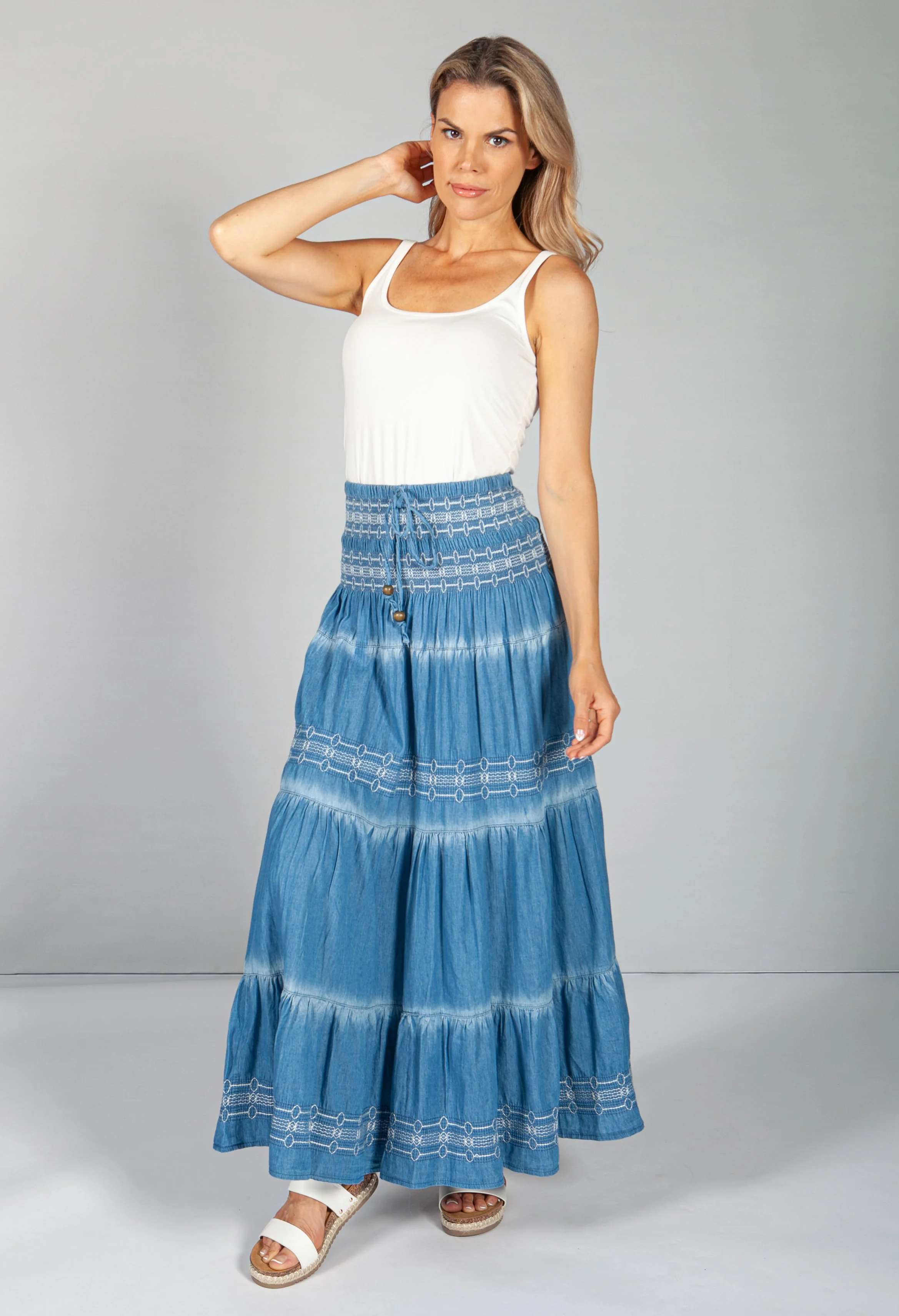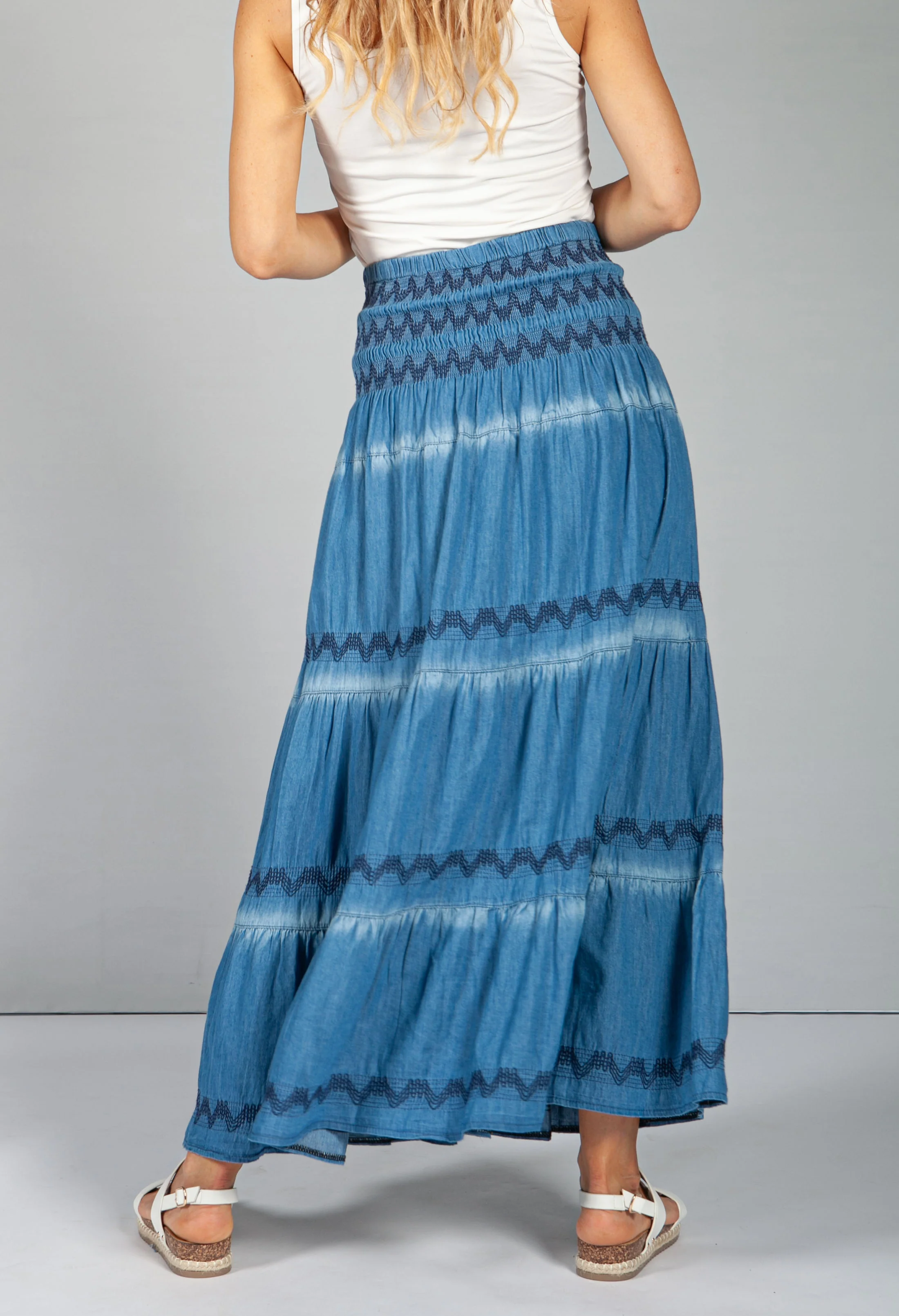 Multi-Wear Boho Denim Skirt with Navy Stitching